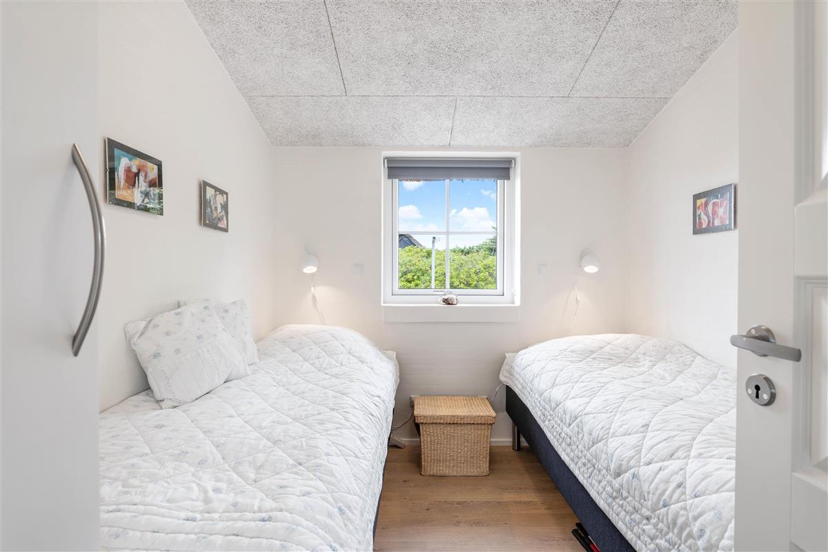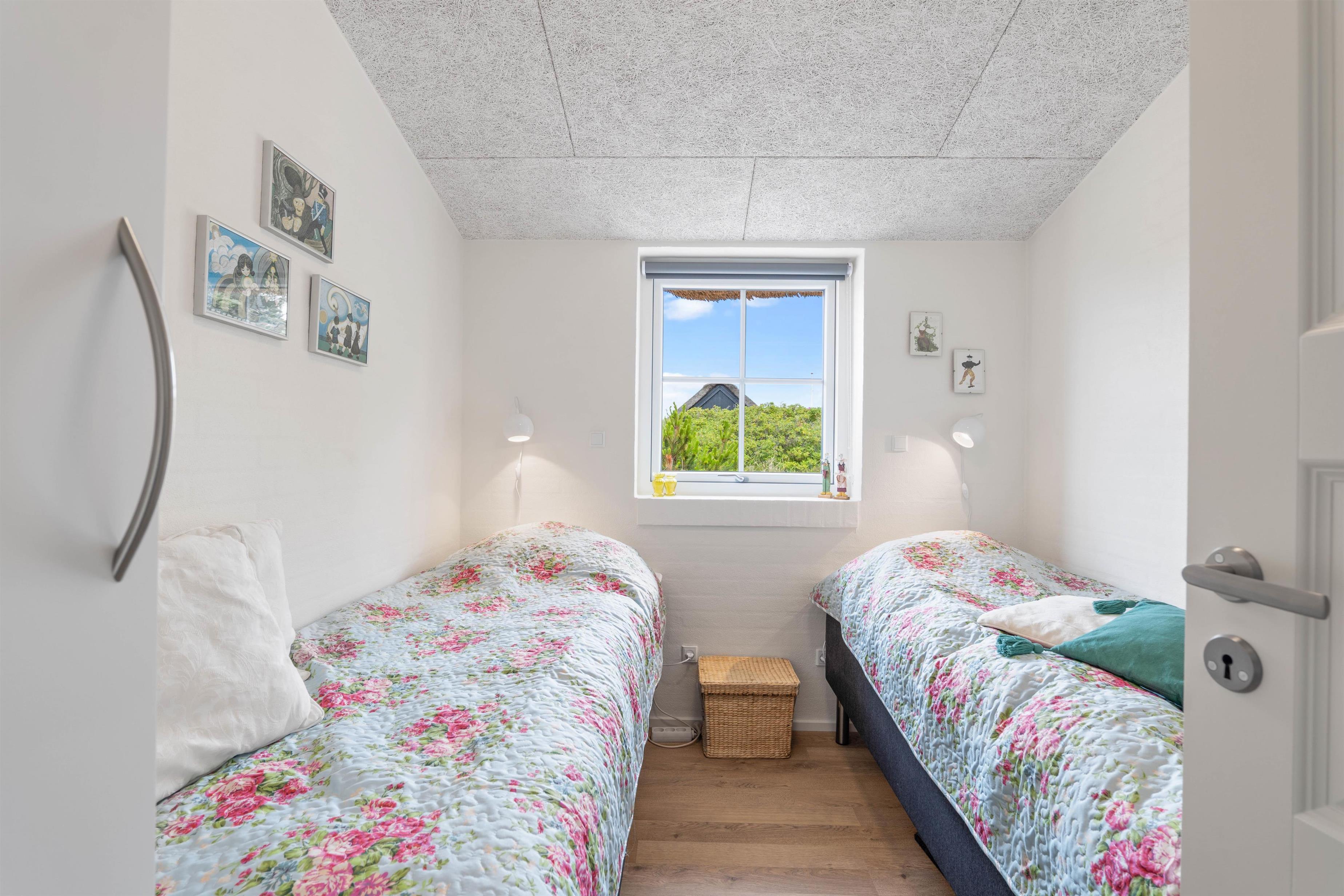 The kitchen, living room and dining area flow together in an open-plan arrangement, creating a generous space where the whole family can gather. The kitchen has been thoughtfully equipped, minimising time spent on practical tasks and maximising family time. After a long day at the beach, relax on the comfortable sofa and watch your favourite films on the flat-screen TV while enjoying the warmth from the crackling wood-burning stove, which creates that quintessential holiday home atmosphere.