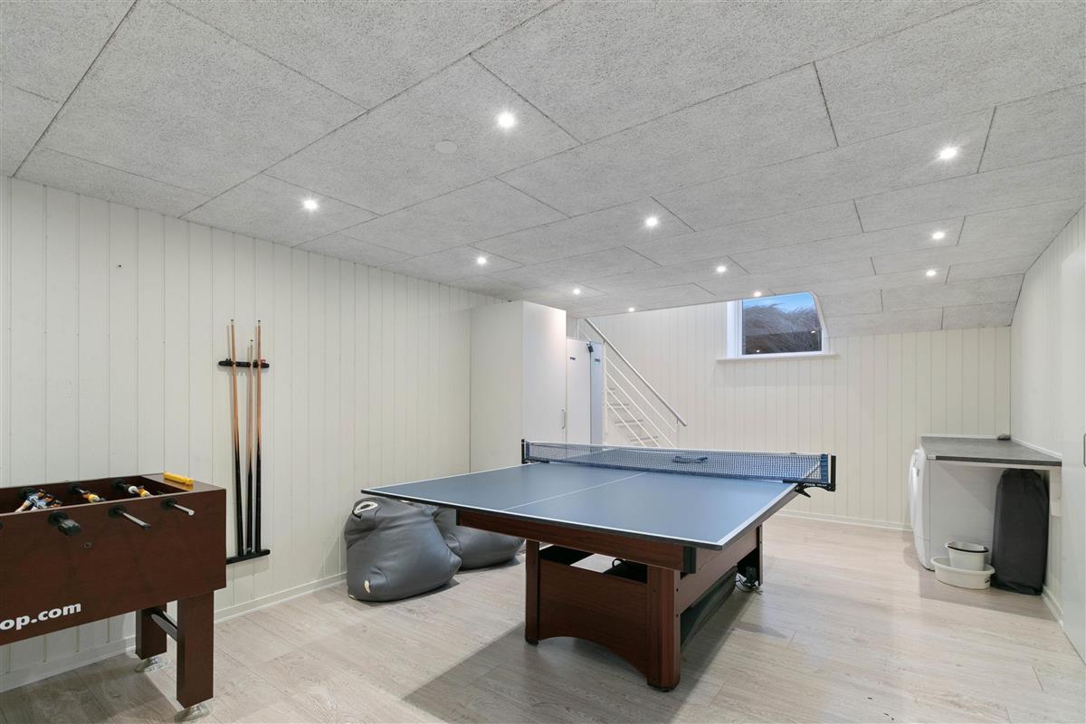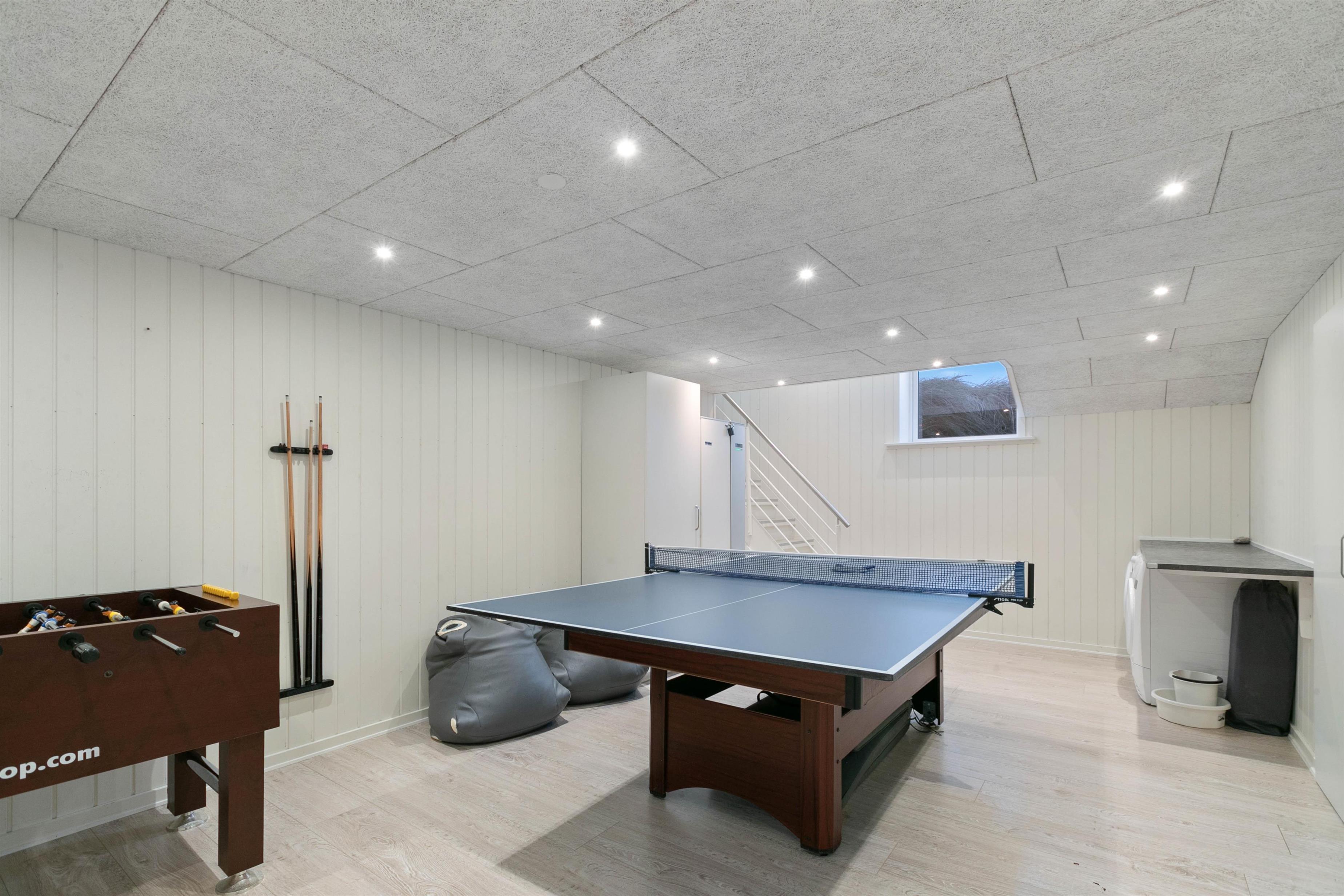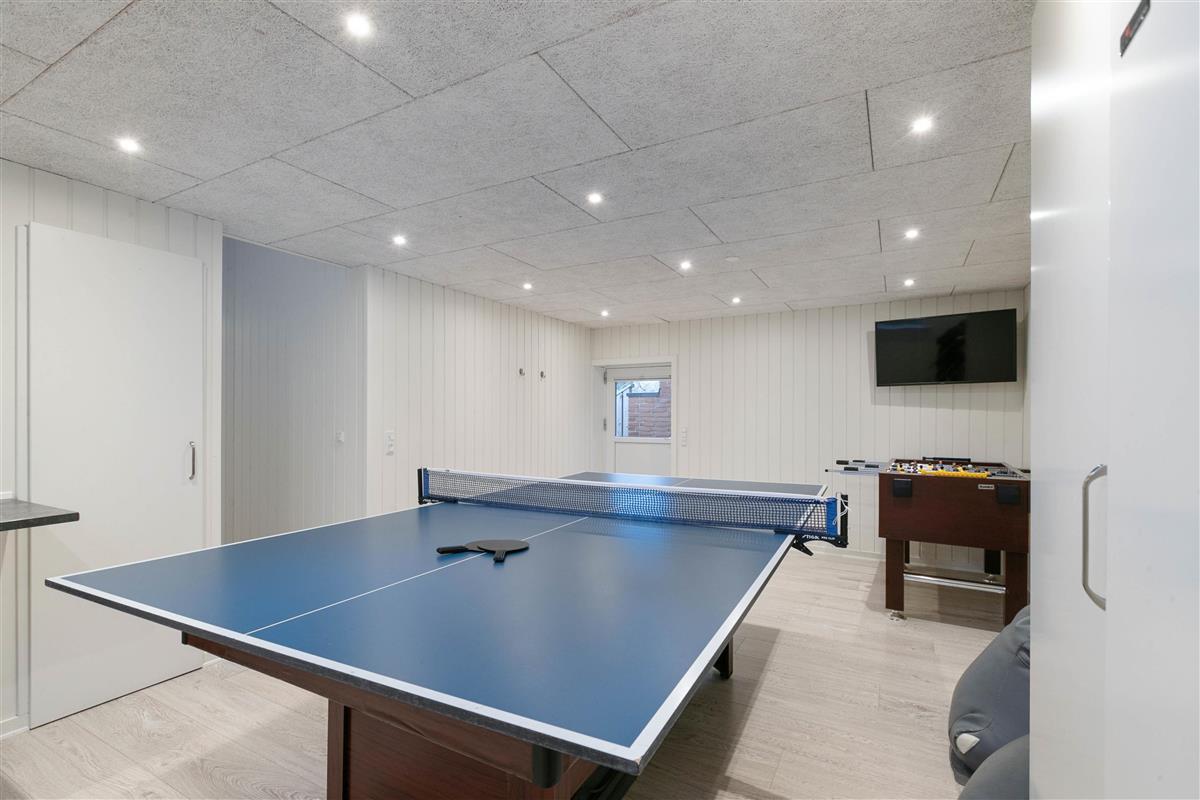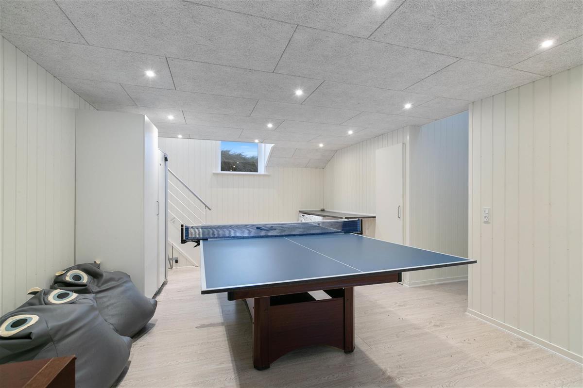 To avoid morning queues, you'll find two bathrooms with underfloor heating, one with access to the house's private sauna. A sauna session is particularly welcome after a long day in the fresh North Sea air. Afterwards, you can relax in front of the crackling wood-burning stove, which provides a cosy warmth. The games room is undoubtedly the highlight for younger guests, where you can enjoy matches of table football and table tennis.