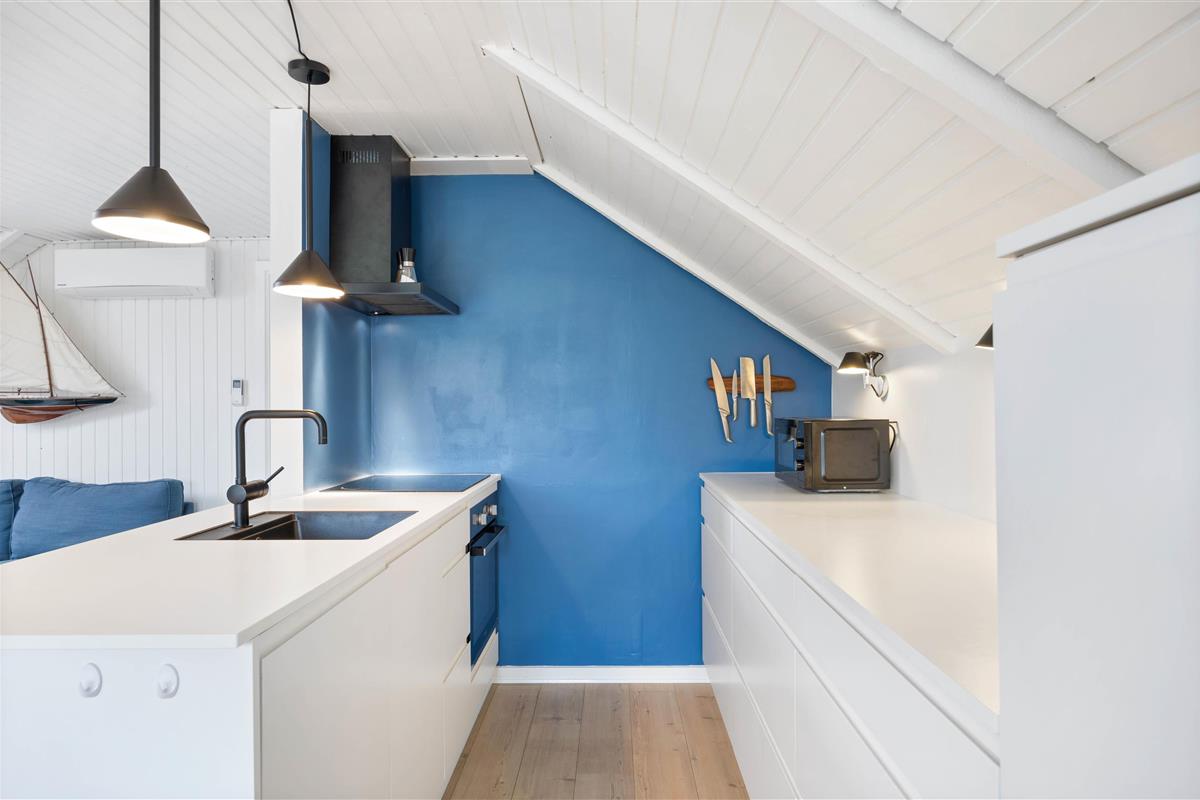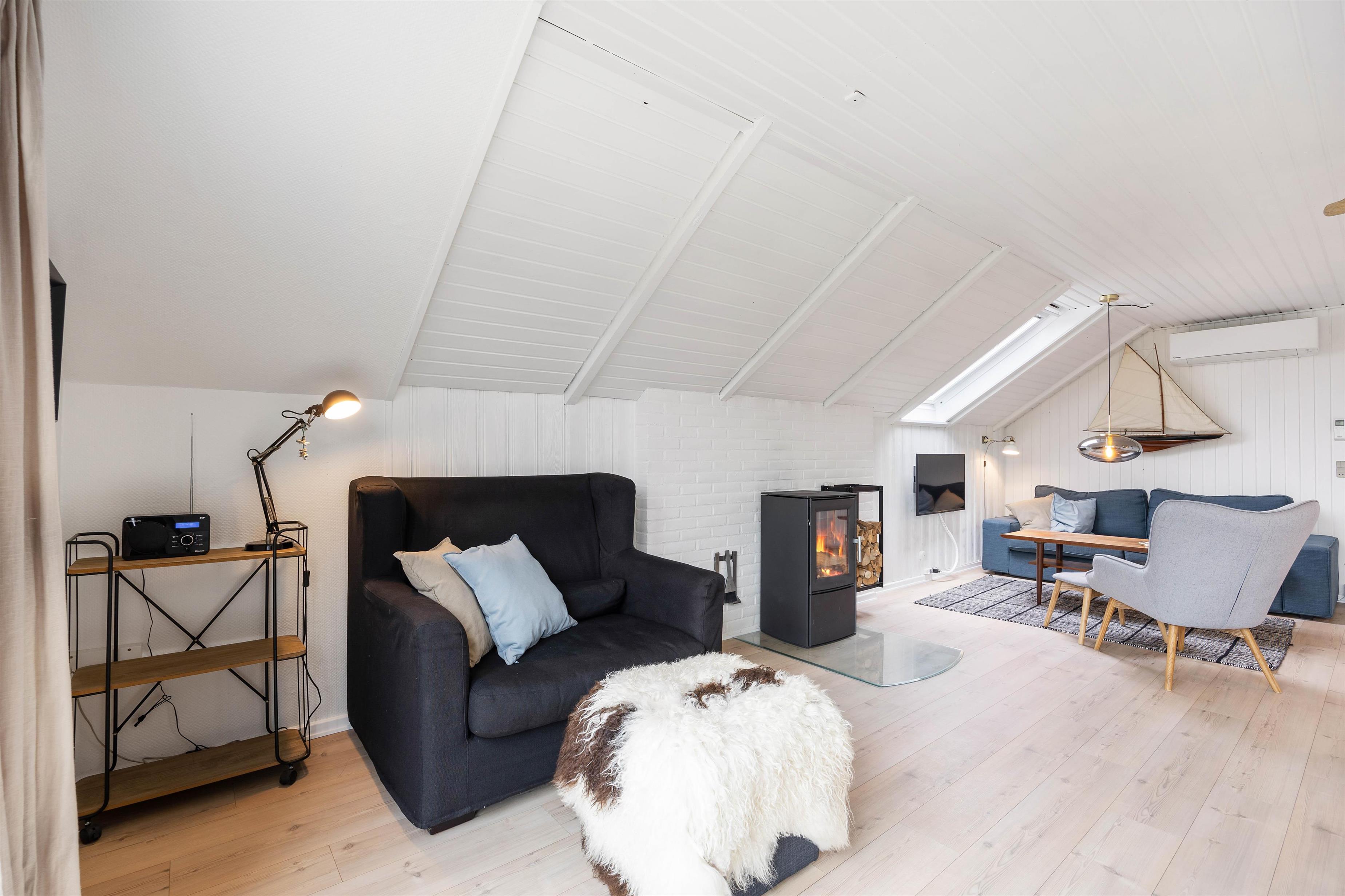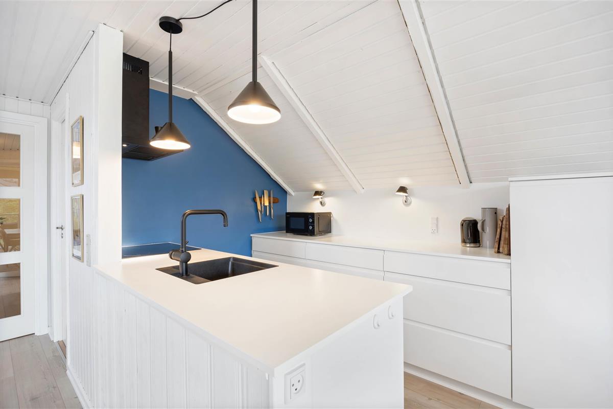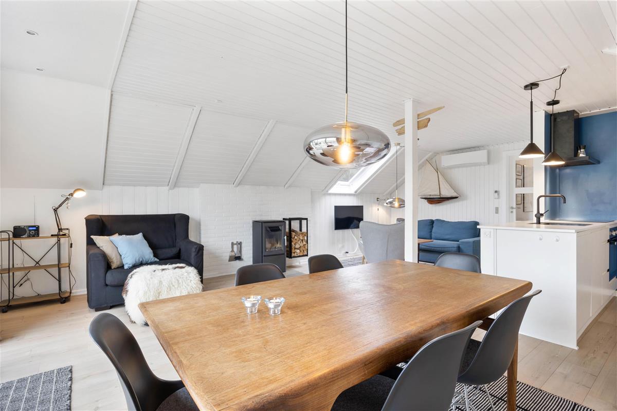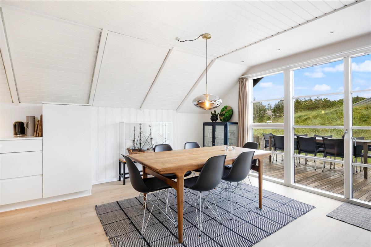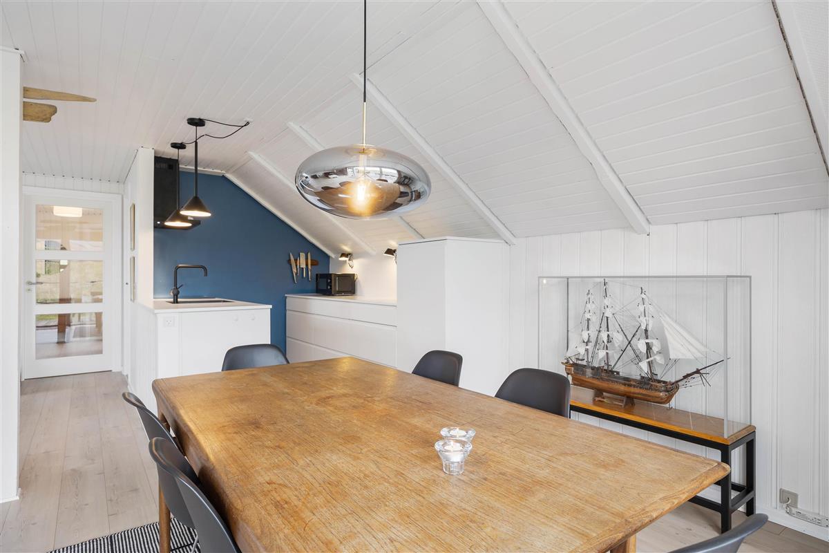 You'll feel instantly at home when entering this cosy holiday home in Houvig. The interior is bright and welcoming. The spacious open-plan area, combining the kitchen, dining area and living room, offers plenty of space to enjoy a good film while basking in the warmth of the wood-burning stove.