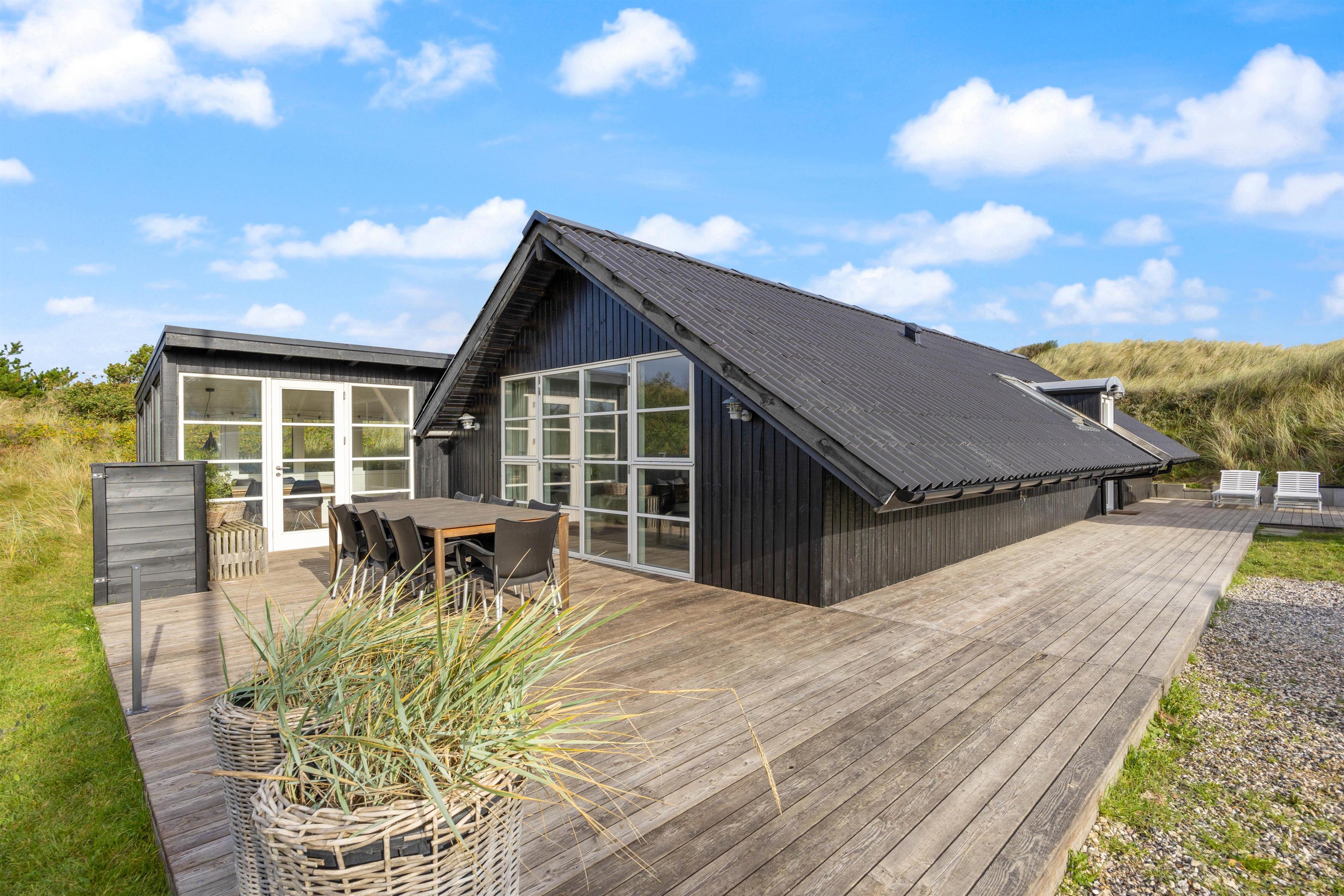 The holiday home enjoys a unique location in a sheltered corner, protected from the elements while offering outdoor privacy.