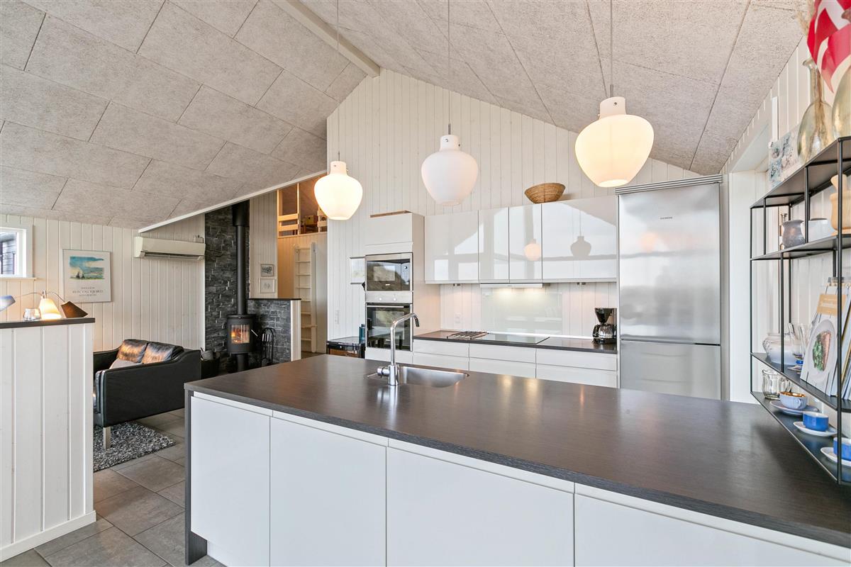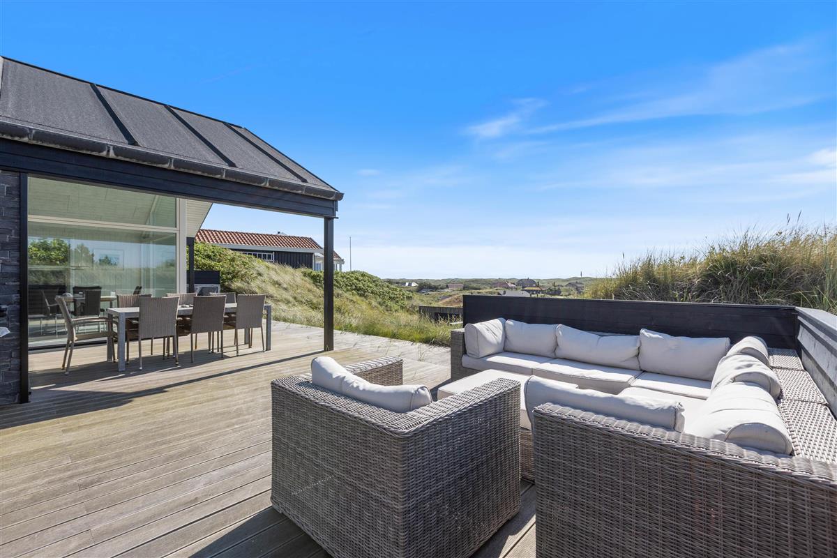 If you're looking for a modern, premium holiday home in Houvig with sea views, this holiday home could be perfect for you. From both the terrace and living area, you'll enjoy magnificent views of the landscape and sea. The west-facing terrace is partially covered, making it ideal for long evenings of outdoor dining.