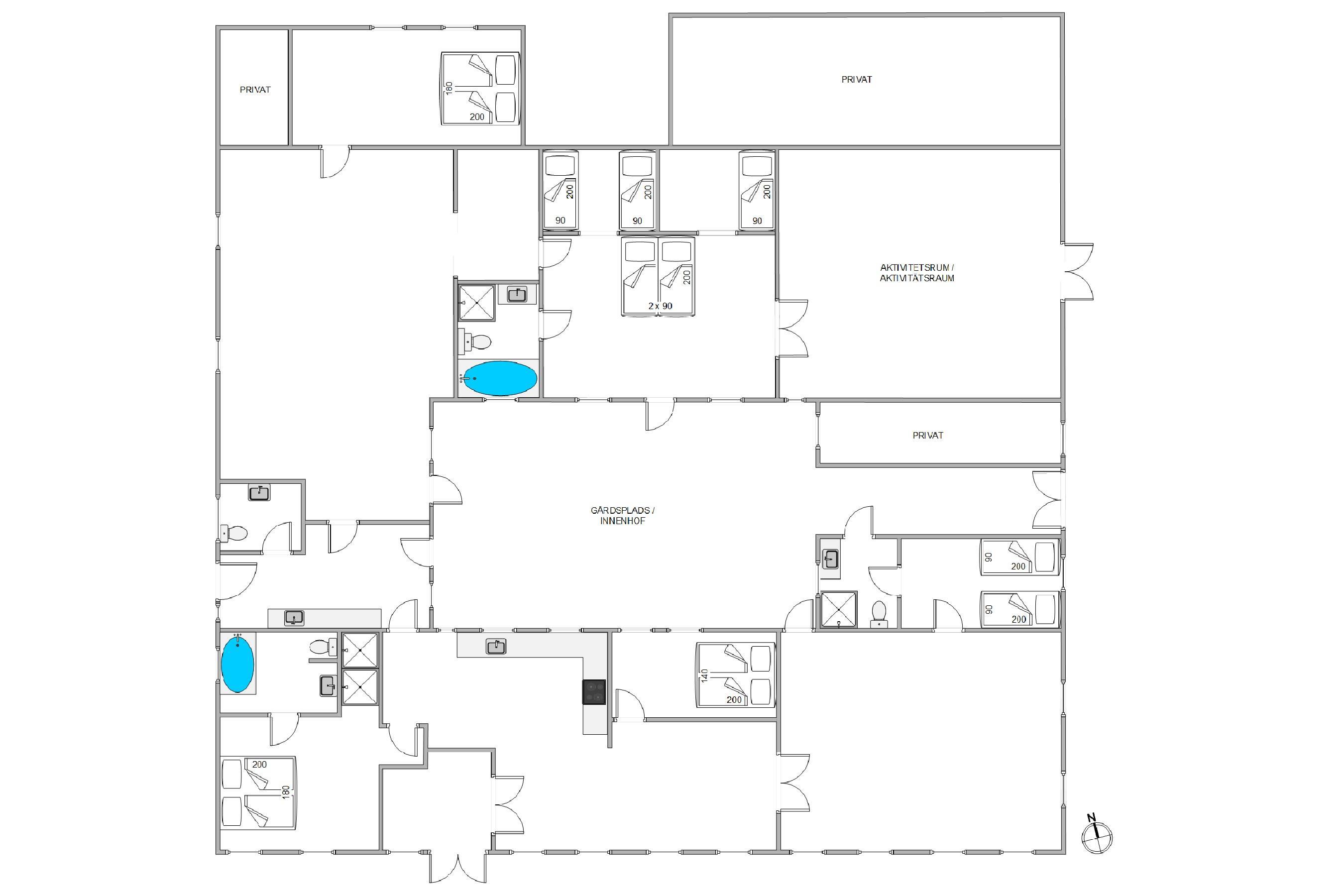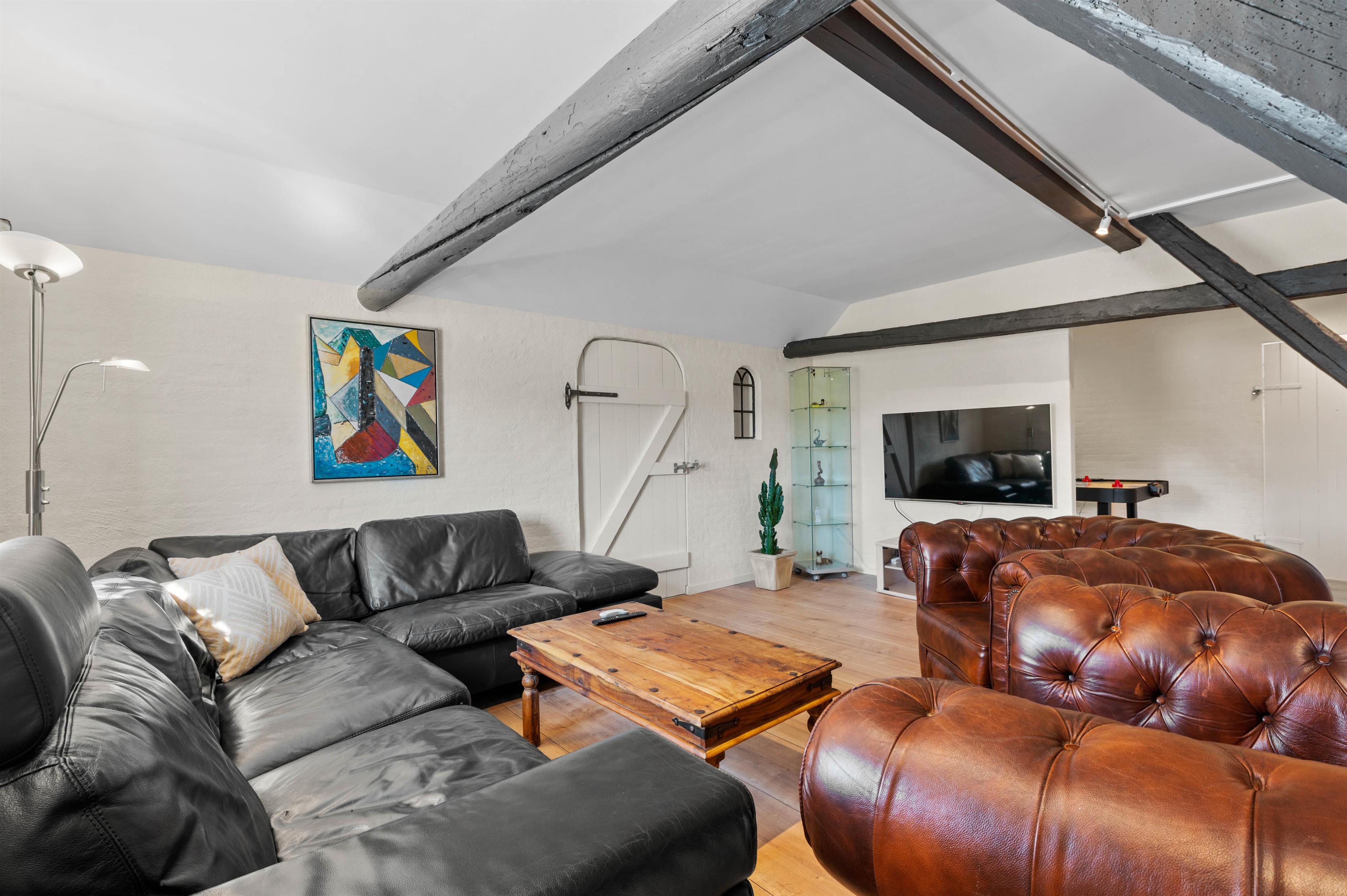 The large living and dining area forms the heart of the house, where you can cook together and play games at the dining table. The courtyard house features two living rooms, allowing some guests to watch their favourite series in peace while others read or play cards.