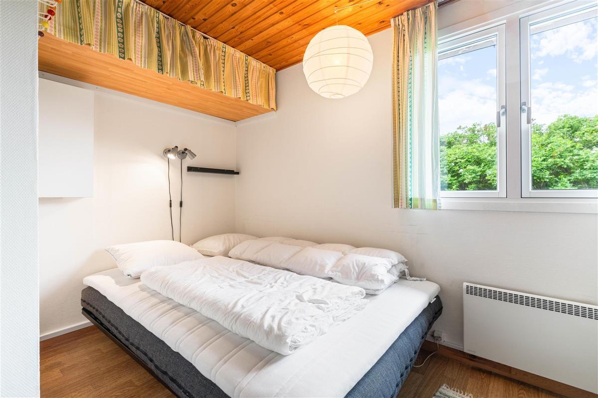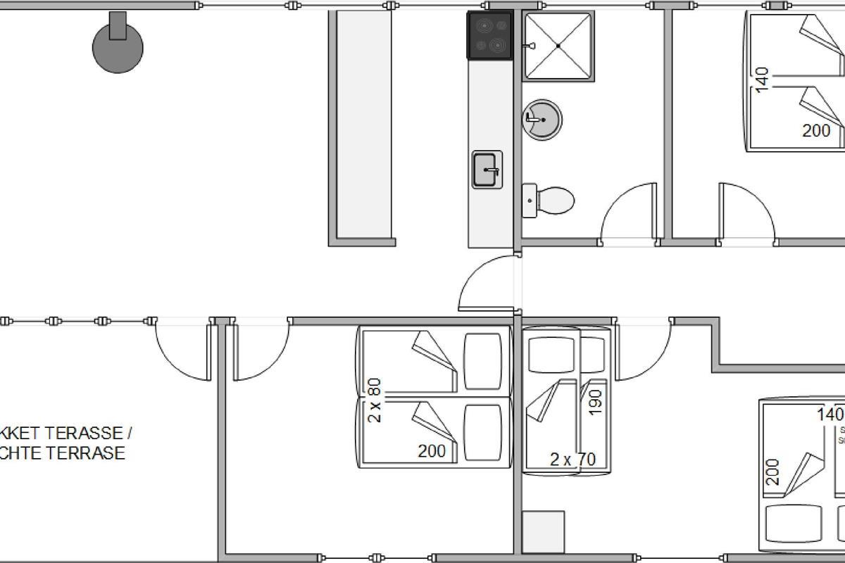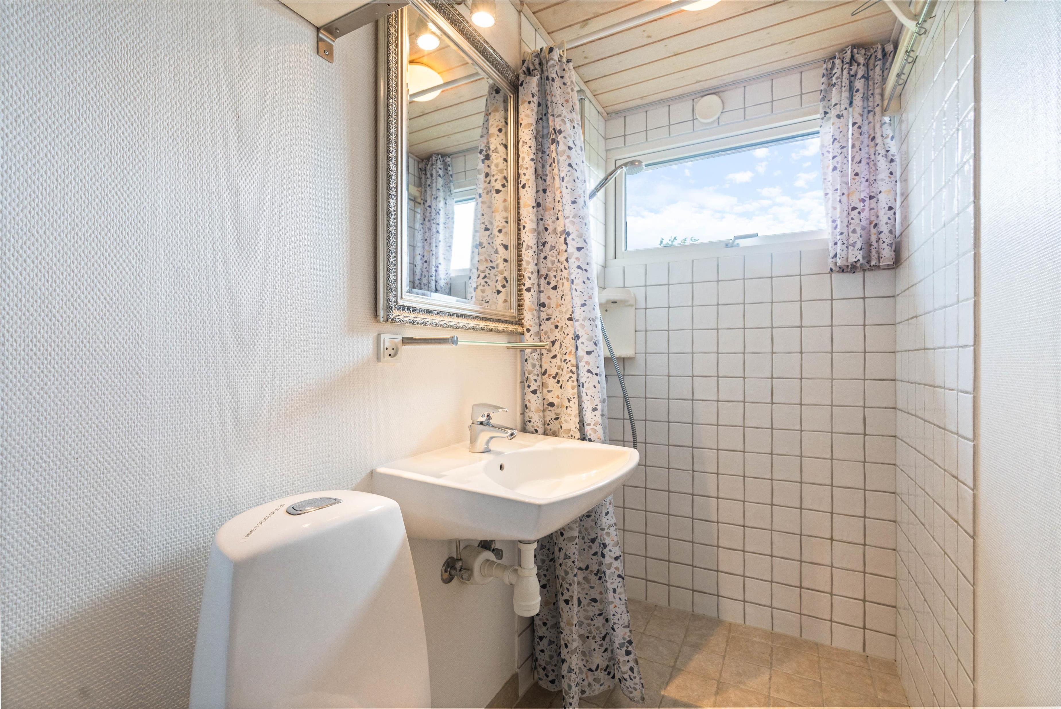 The holiday home has 3 bedrooms. Two are furnished with comfortable double beds, while the third features bunk beds and a futon. There's also a bright bathroom with shower and heated tiled floor.