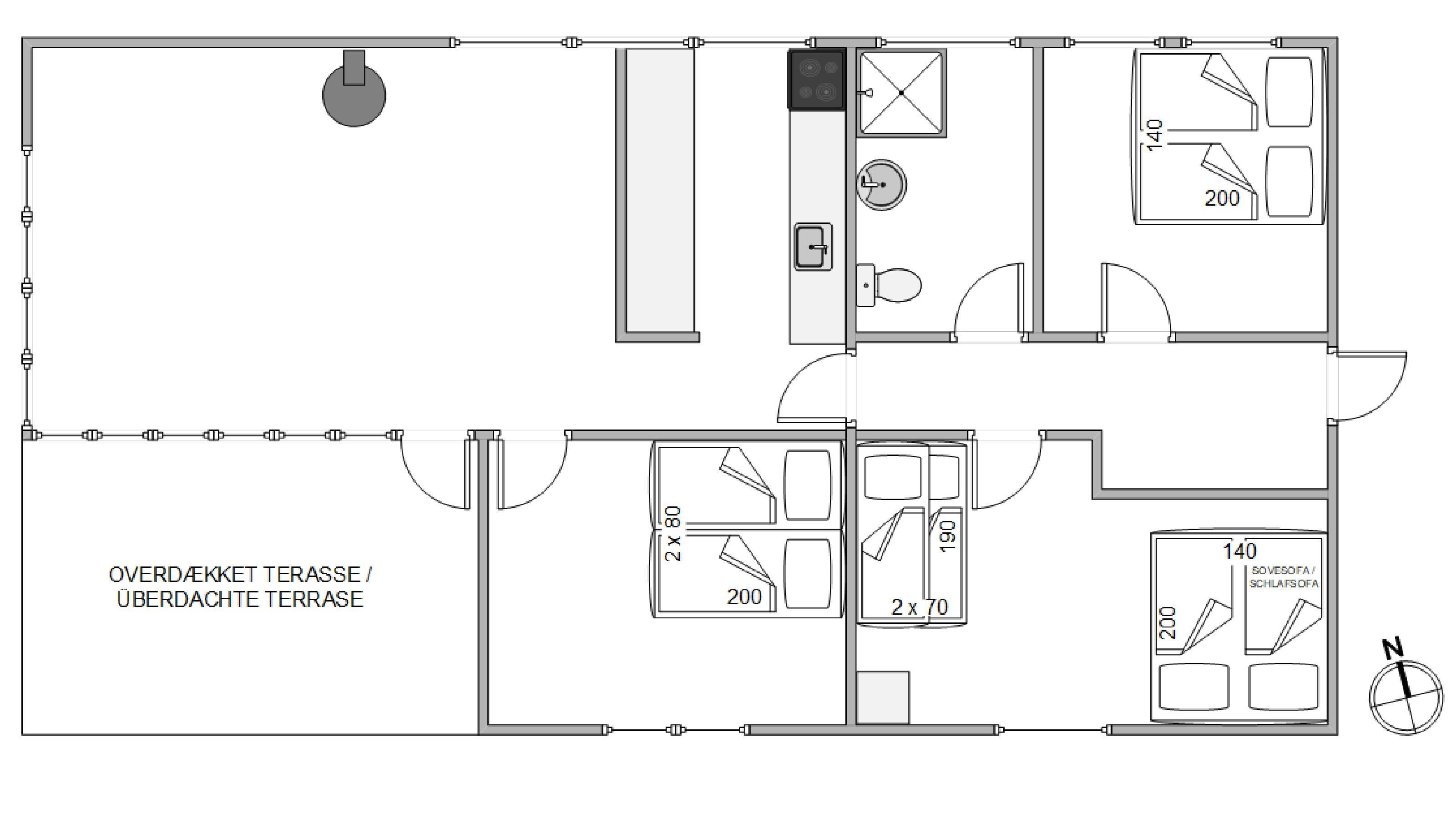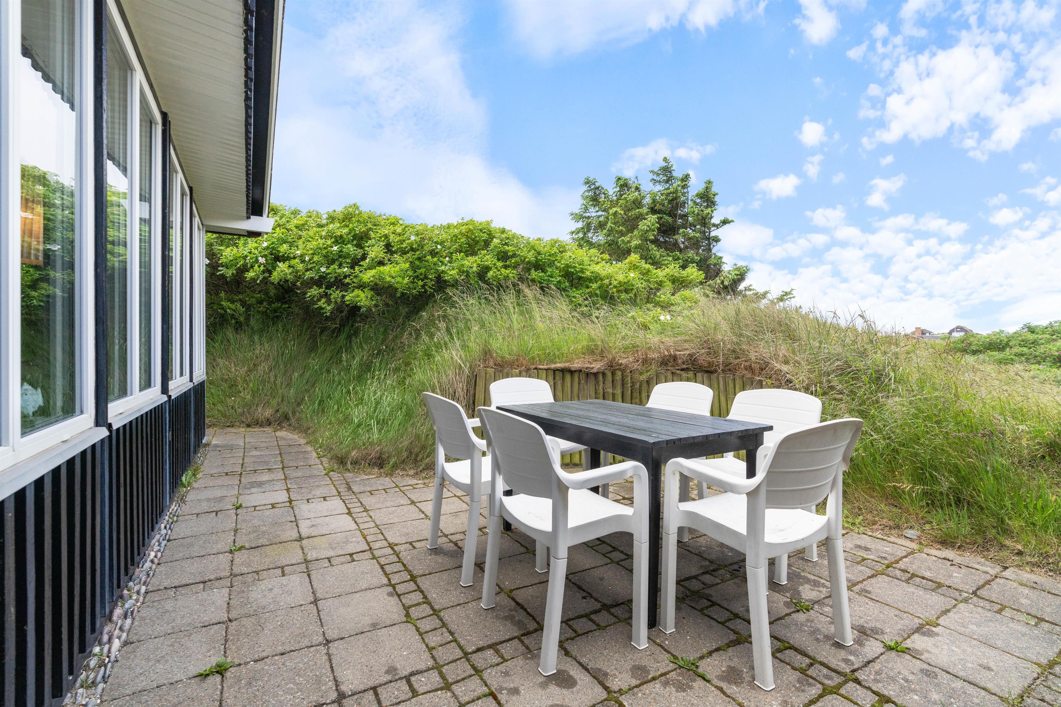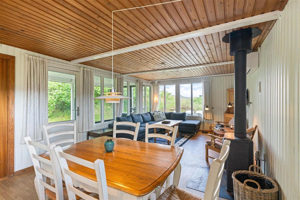 The living room leads directly onto the covered terrace where you can fully enjoy your holiday. The undulating dunes and beautiful rose bushes surrounding most of the plot provide shelter and privacy.