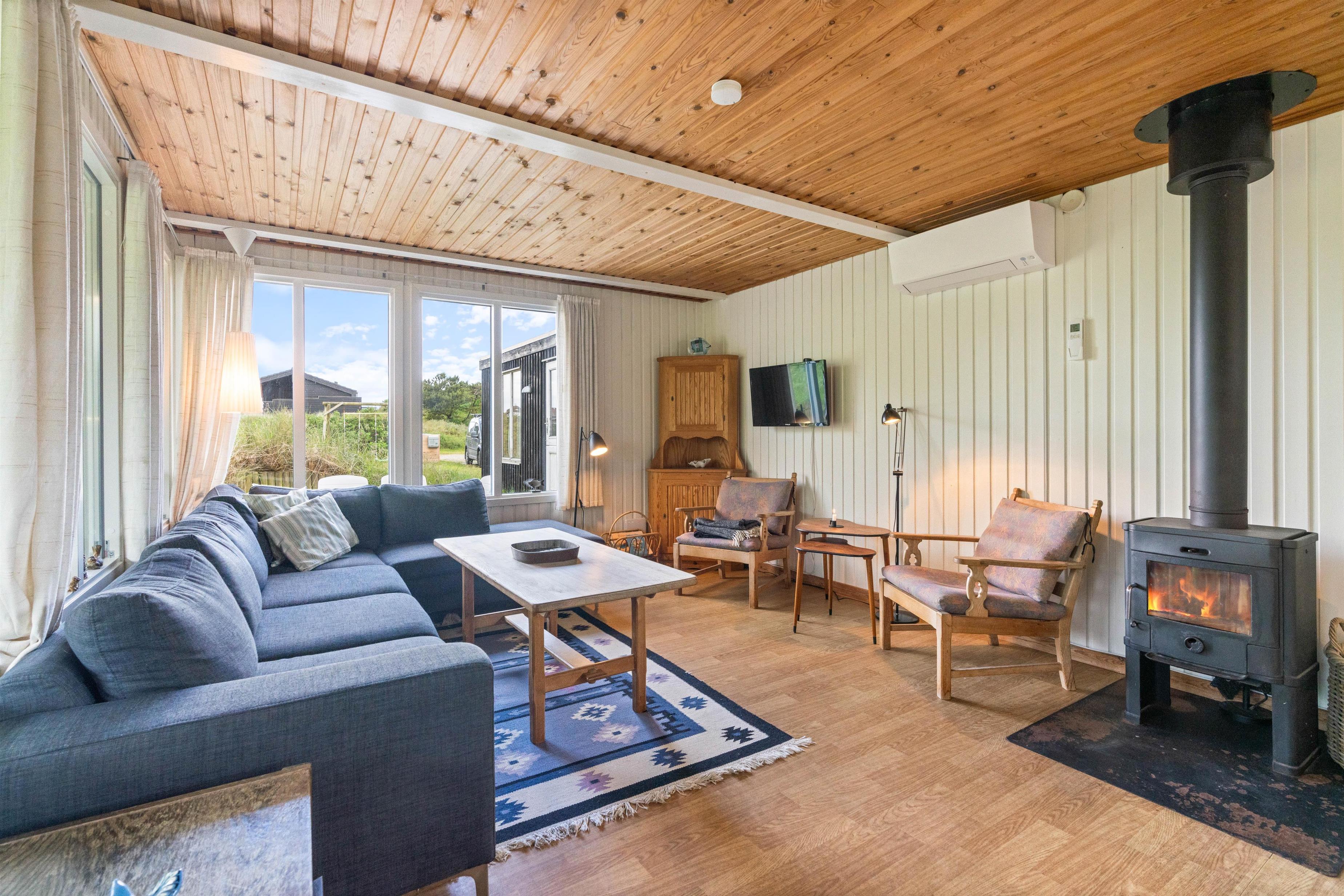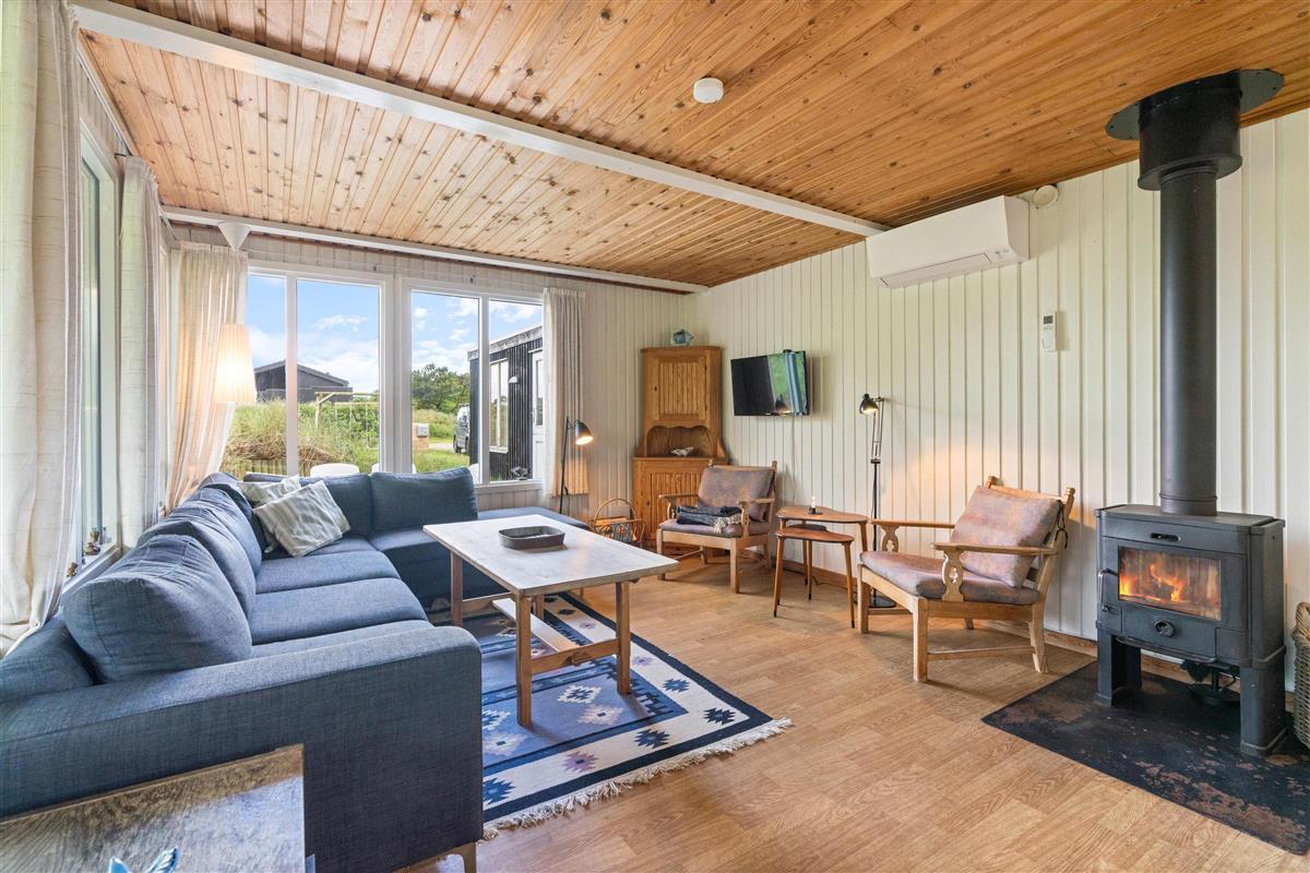 This cosy holiday home at Lærkedalen 28 in Houvig embodies everything you'd expect from a nostalgic country cottage. With its wood-panelled walls, warming wood-burning stove, comfortable furnishings and lovely covered terrace, this holiday home accommodates 4 people and a dog, making it ideal for a family holiday.