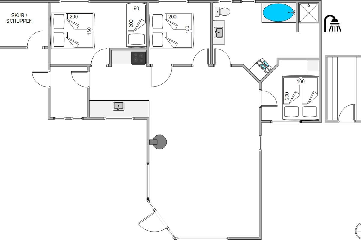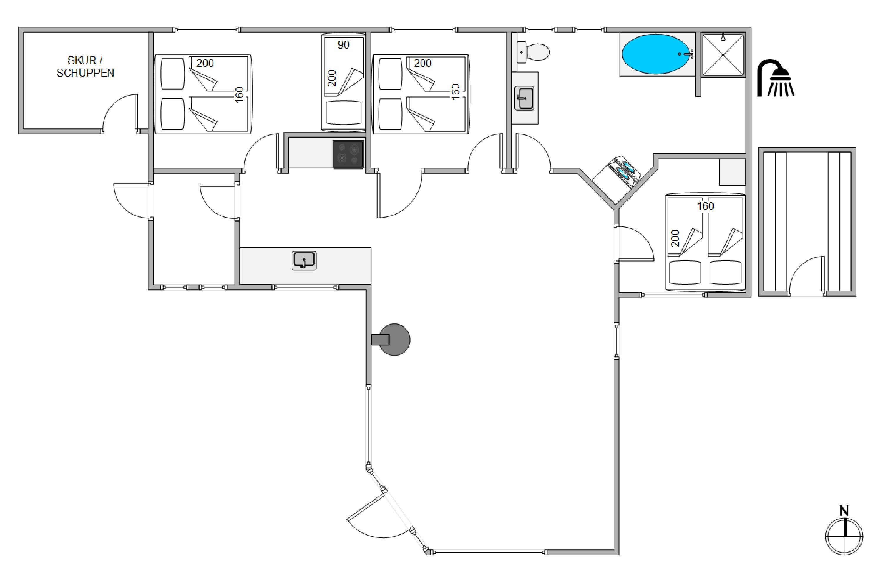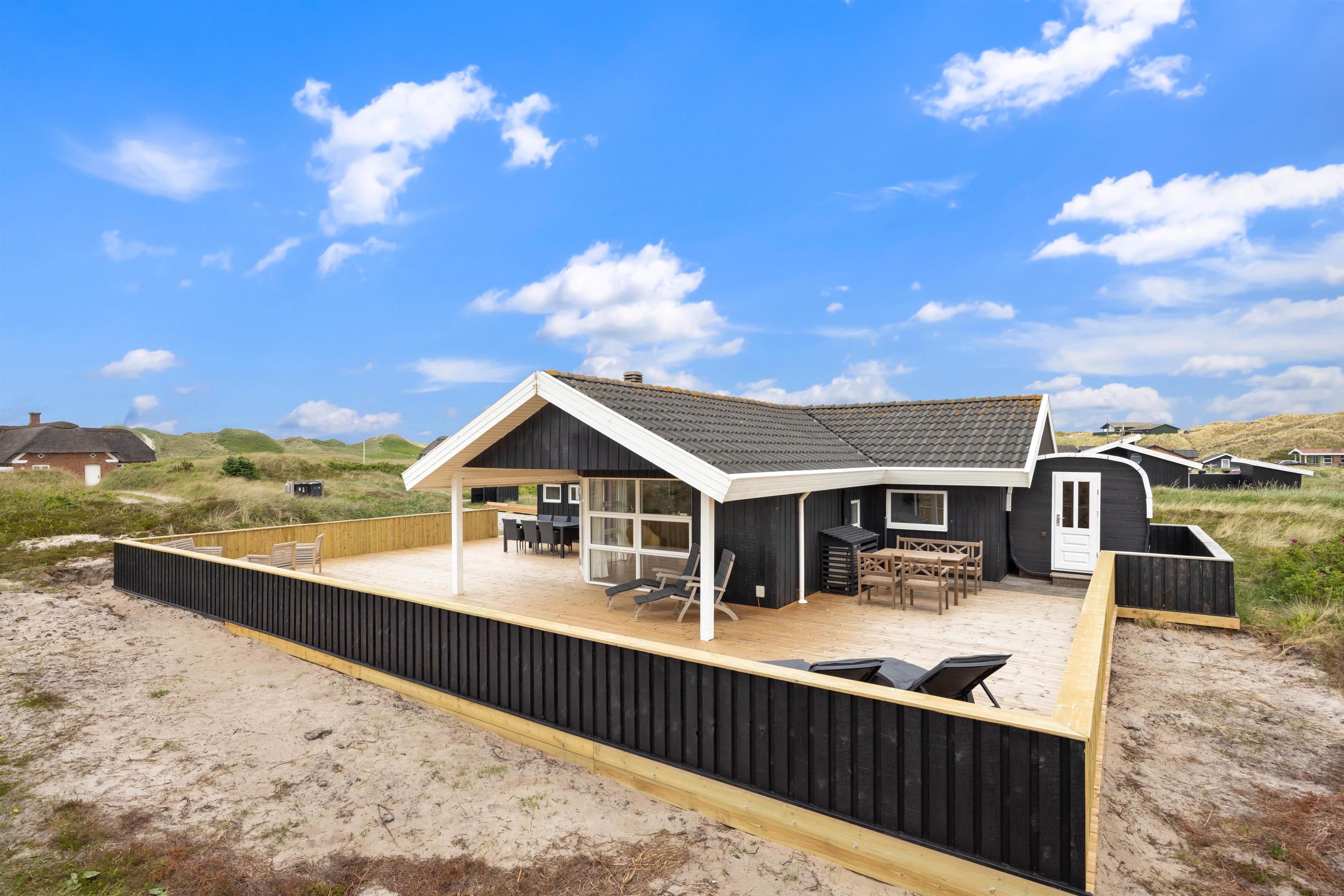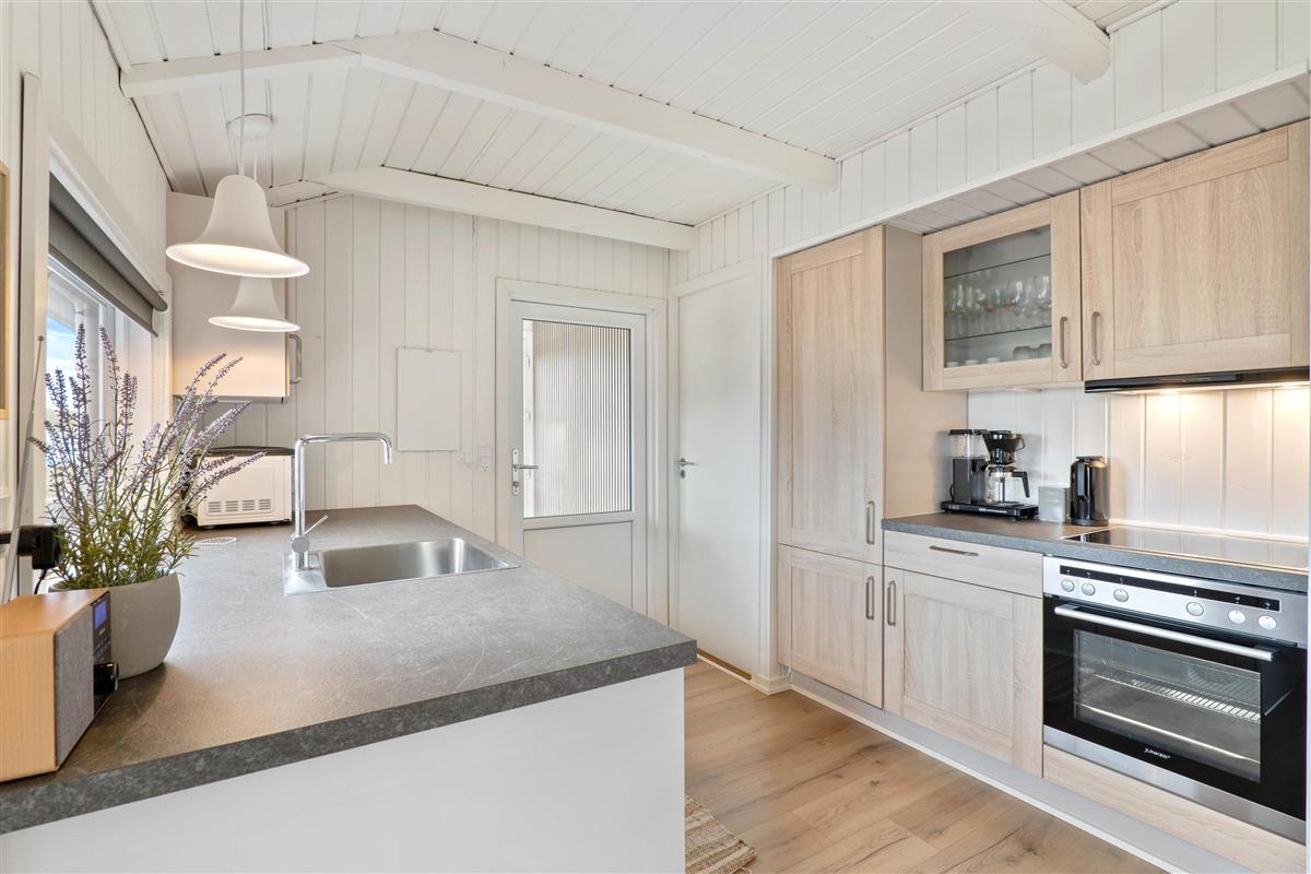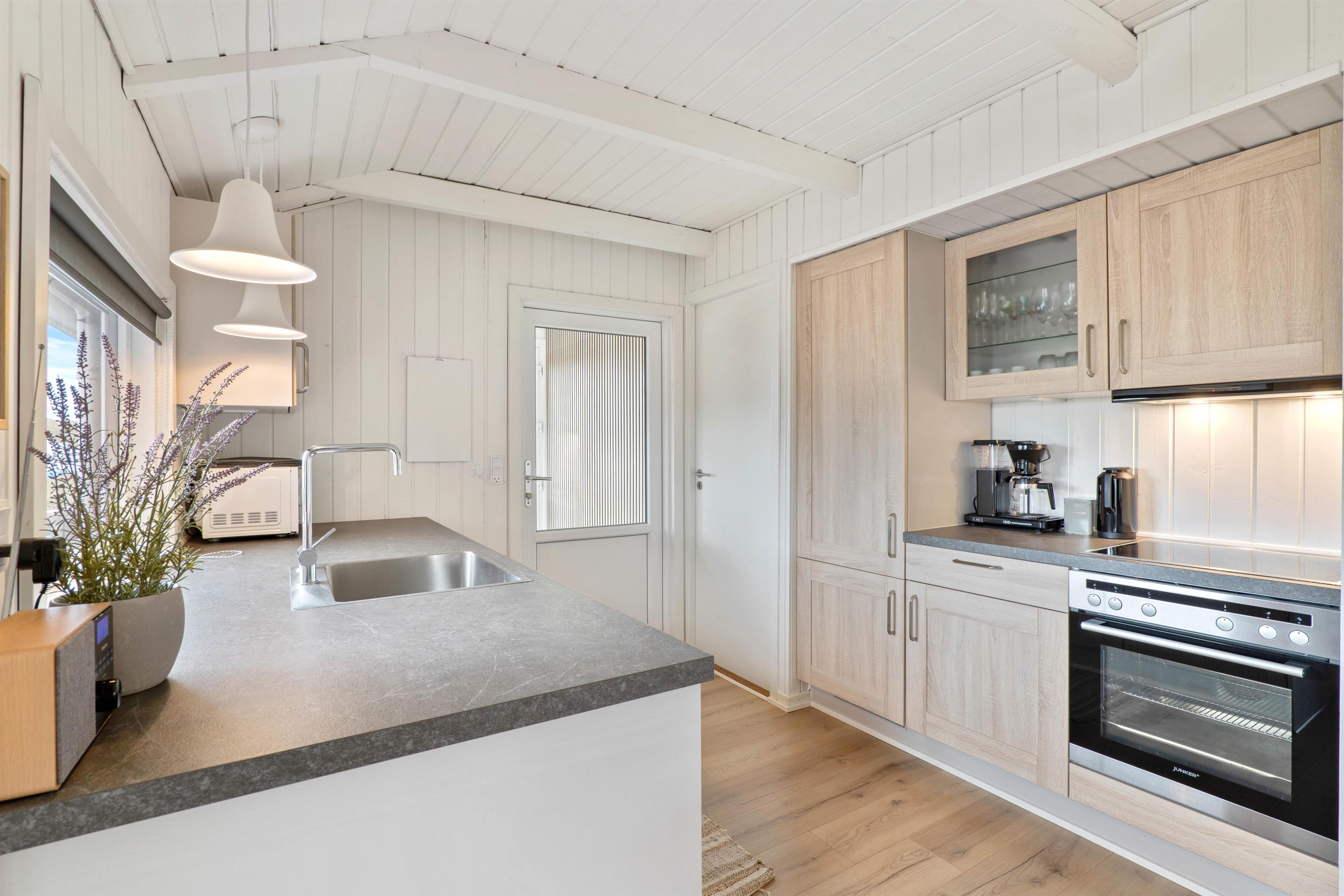 The holiday home measures 82 square metres and features three bedrooms, providing plenty of space for everyone to enjoy a peaceful night's sleep. There's also a bathroom with underfloor heating, ensuring no cold feet in the morning. The holiday home includes a wonderful sauna where you can relax and warm up after a long beach walk.