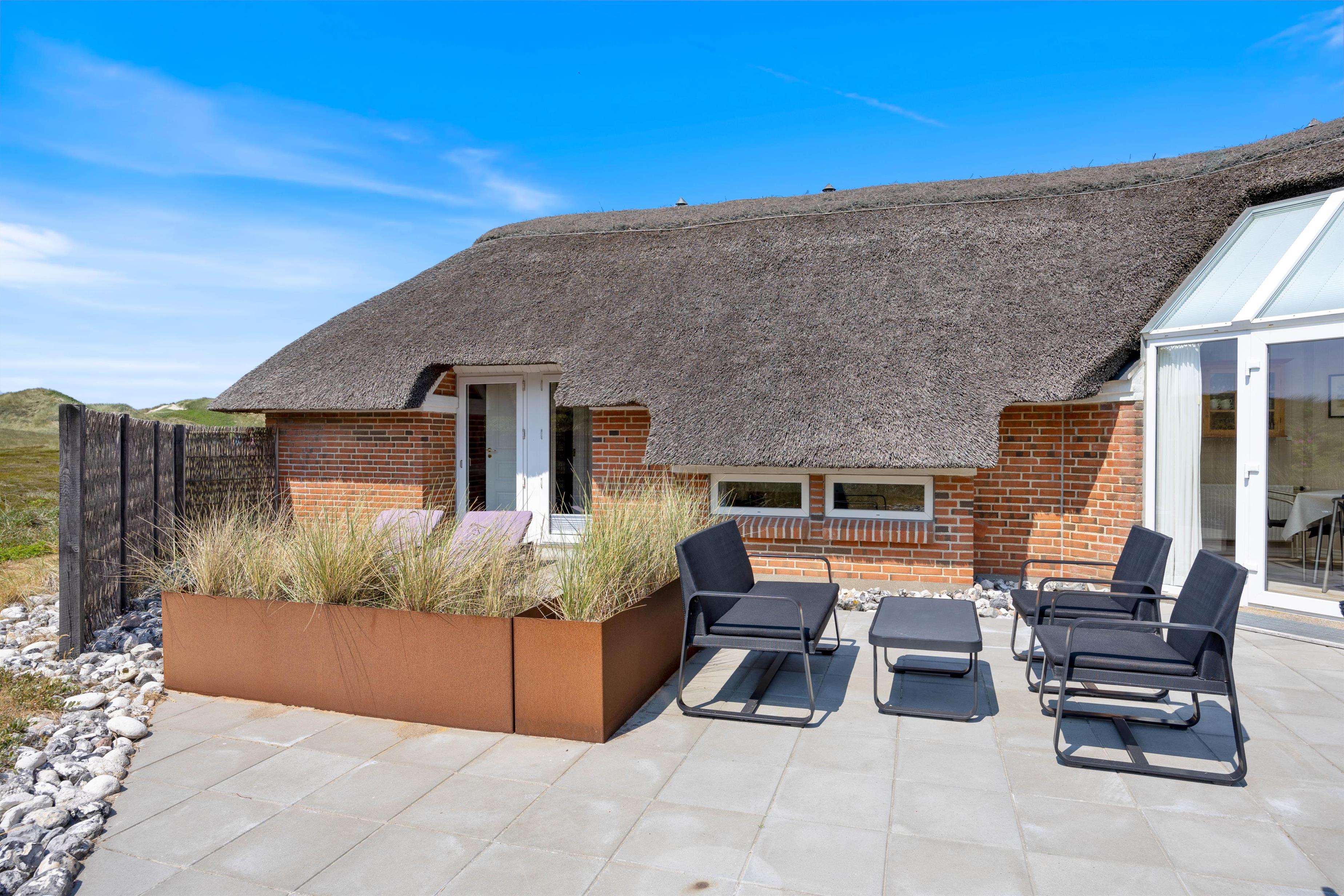 Set against a backdrop of dune grass swaying beautifully in the sunlight, the surroundings shimmer in silver-green and heather hues beneath the clear blue sky. Here, sheltered by the dunes and just 200 metres from the sea, stands a beautiful thatched cottage, renovated in 2019 - perfect for your holiday. The holiday home is truly lovely, combining both comfort and style in its furnishings.