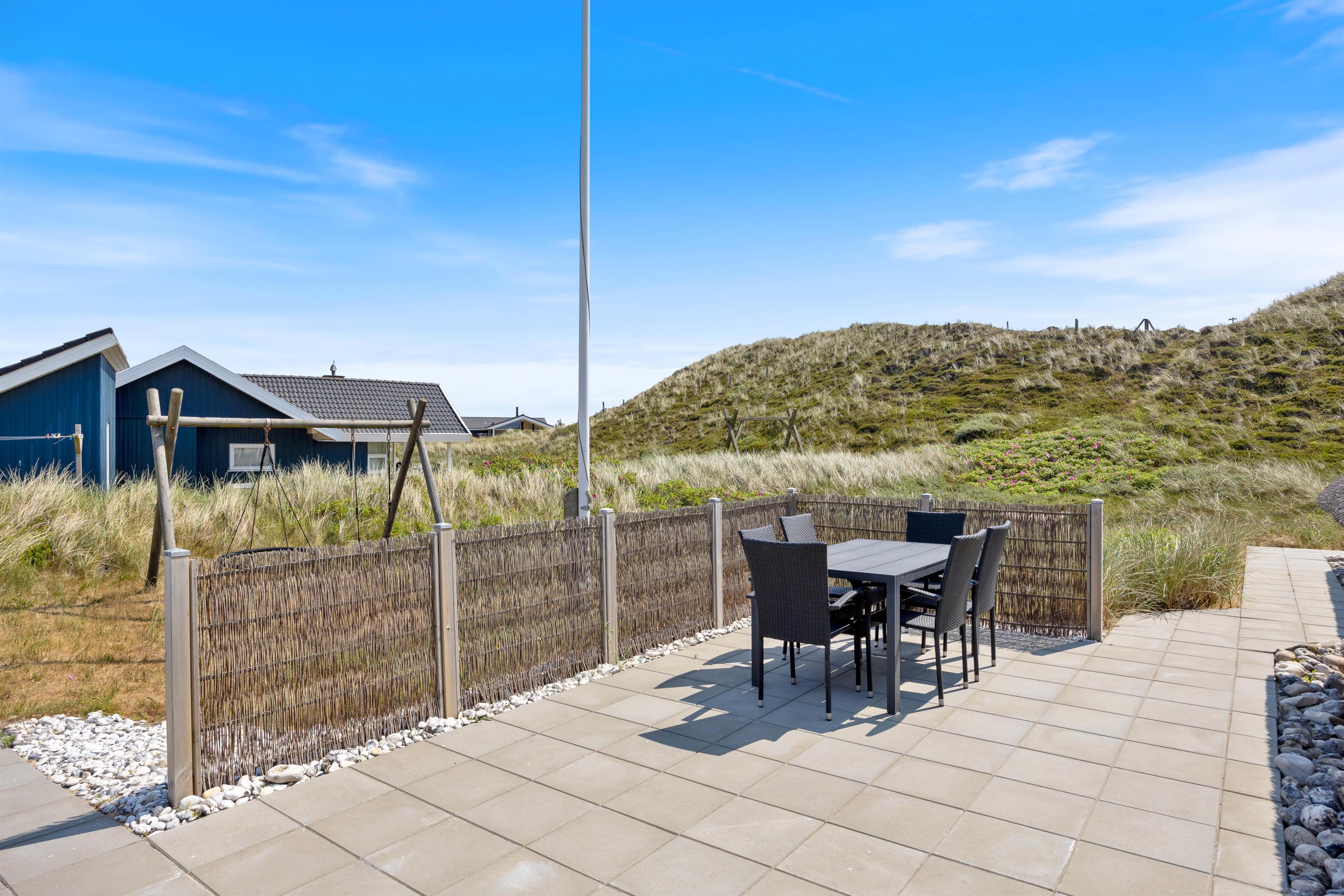 We can't guarantee that the wind won't sweep around a corner of the house bringing a little sand with it. However, we can promise that from the beautiful south-west facing terrace, you'll enjoy the scent of sea and heather and the sound of waves breaking on the shore. When the weather's good, there's a fantastic holiday atmosphere, and you can enjoy your morning coffee on the terrace - on the east side naturally, catching the morning sun, while the children play on the swings or explore around the house.