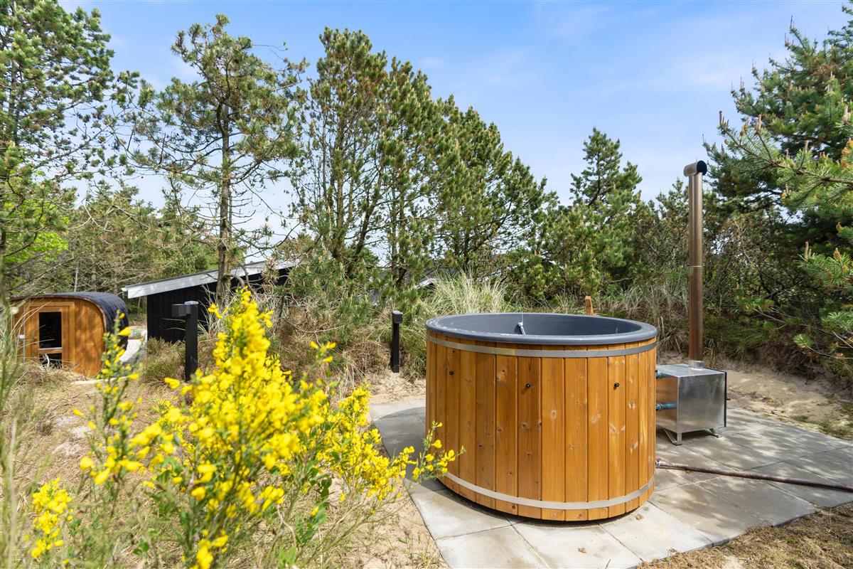 You'll enjoy an absolutely fantastic and peaceful location in the midst of a small woodland. The house has several beautiful terraces, perfect for barbecuing, dining or simply gathering together. You can spend relaxing hours on the garden furniture and sun loungers. Those who enjoy unwinding after a long beach walk will love the outdoor sauna and hot tub.