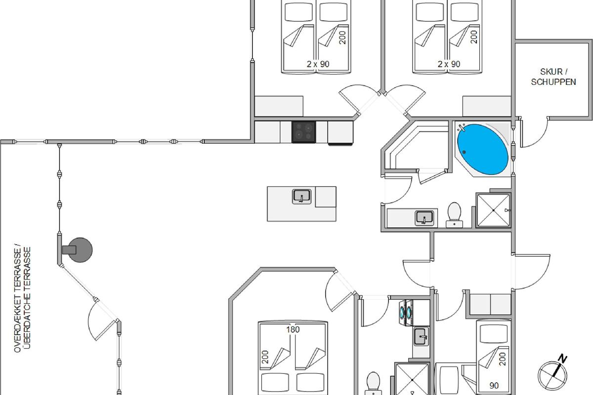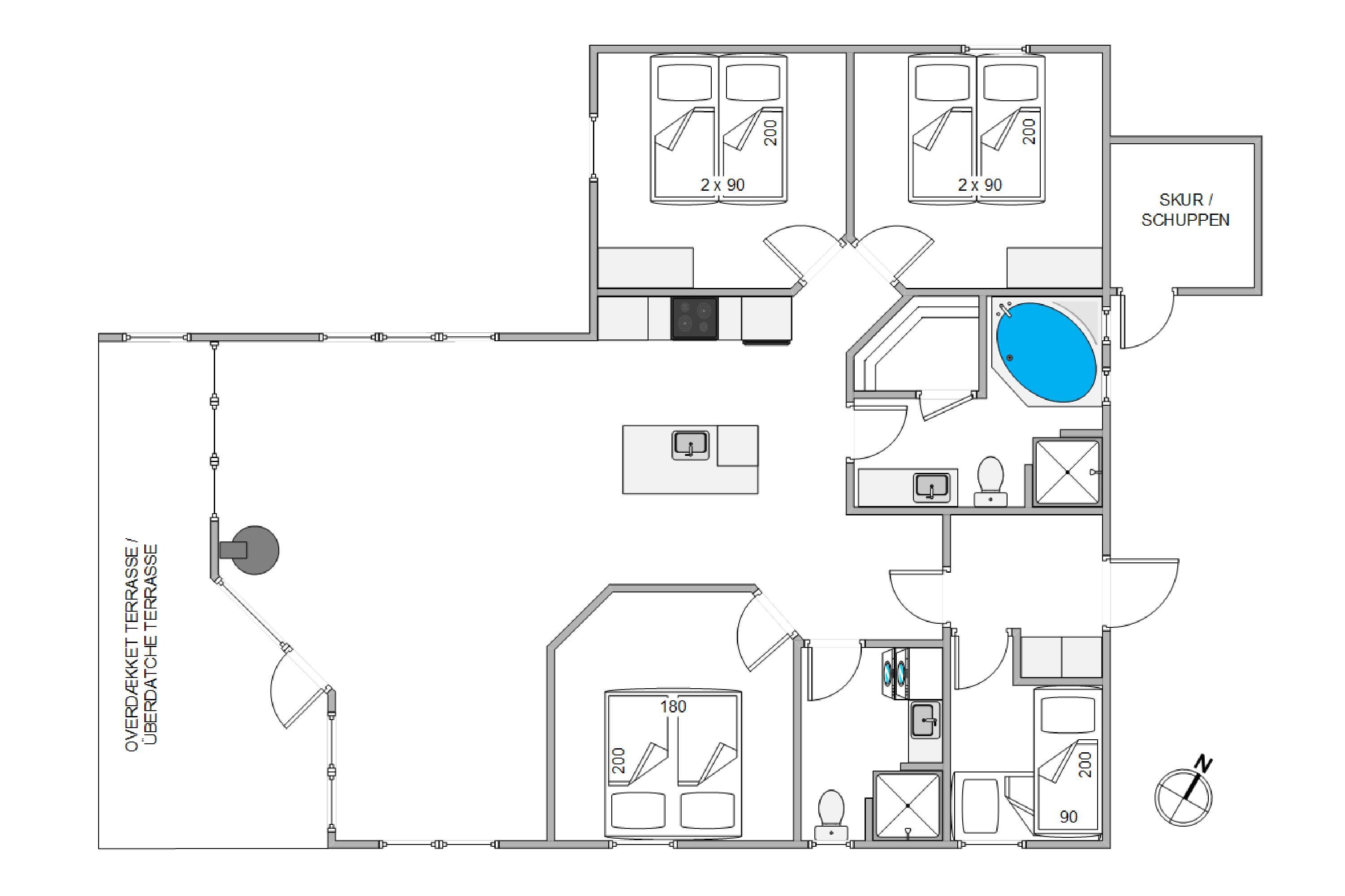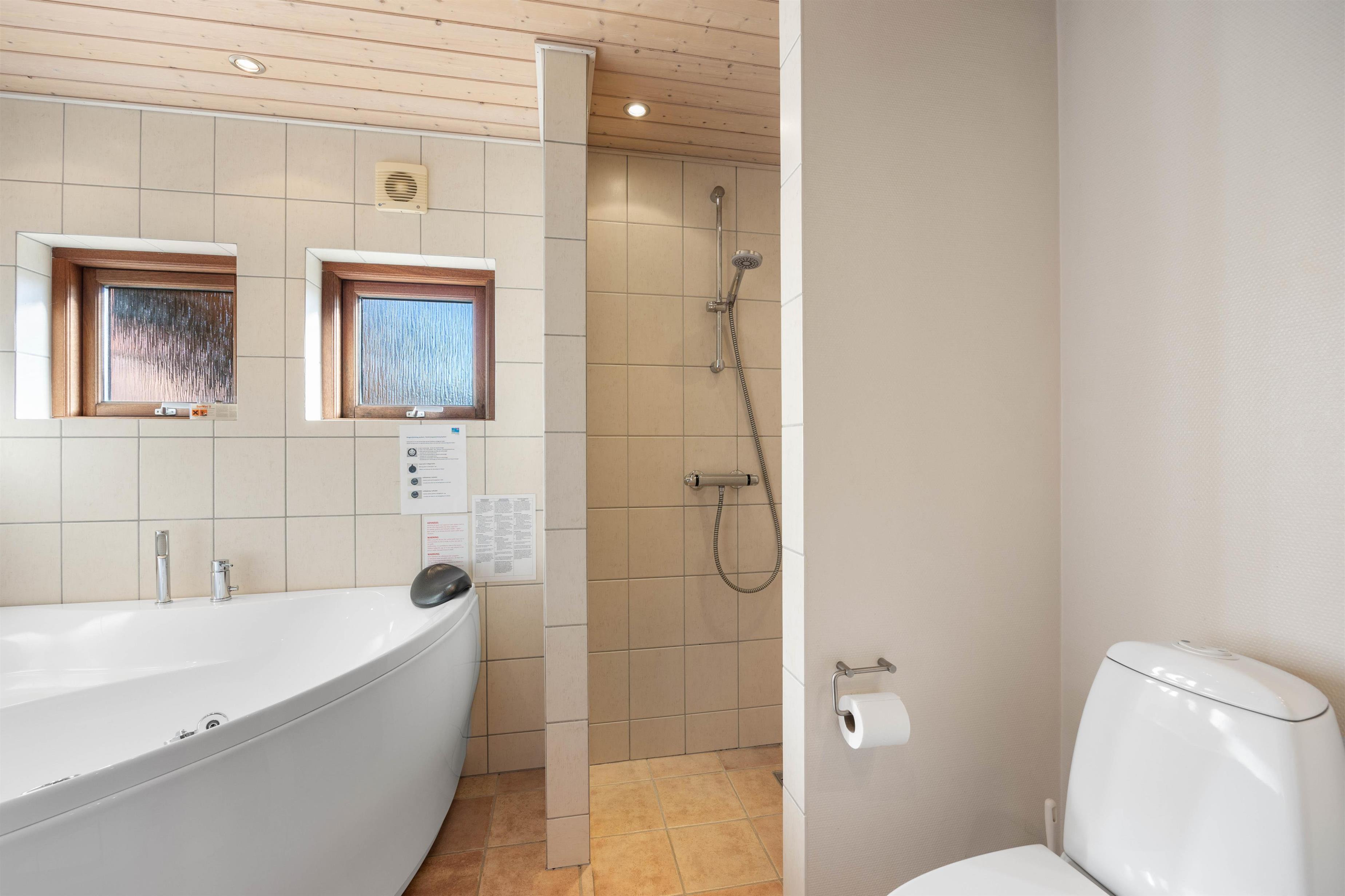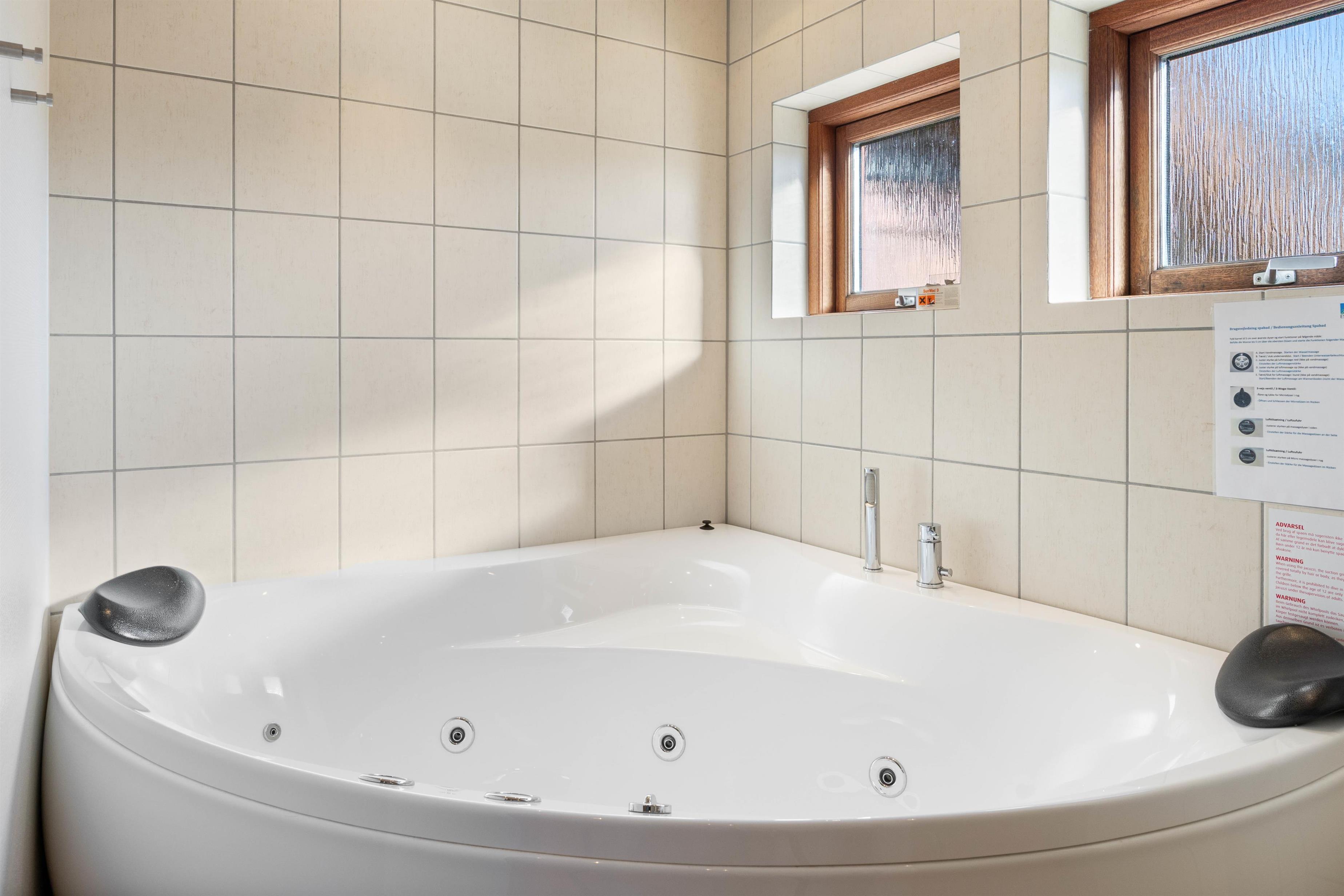 The holiday home can house up 8 people across 4 bedrooms. There are 2 stylish bathrooms with underfloor heating. The larger bathroom also features a sauna and a two-person whirlpool - perfect for relaxing after a long day exploring the outdoors.