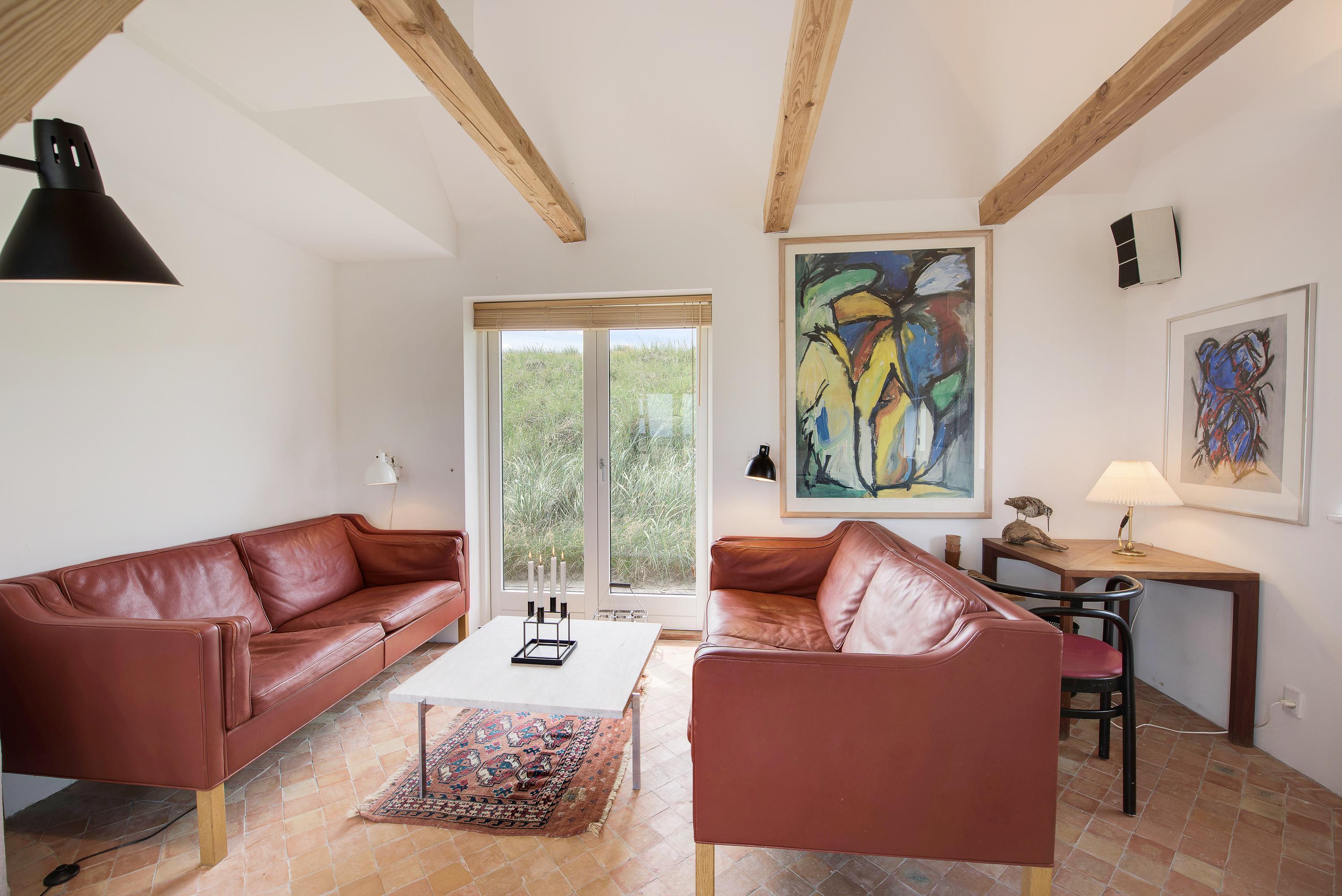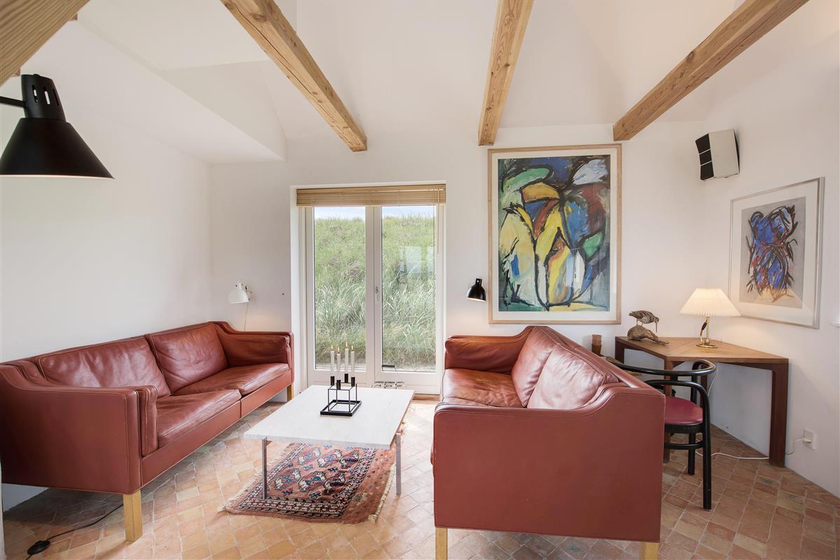 From the comfort of the sofa, you can enjoy unique views across the dunes and surrounding landscape - the perfect holiday atmosphere. The bedroom is equally distinctive, offering views of both sunrise and sunset.