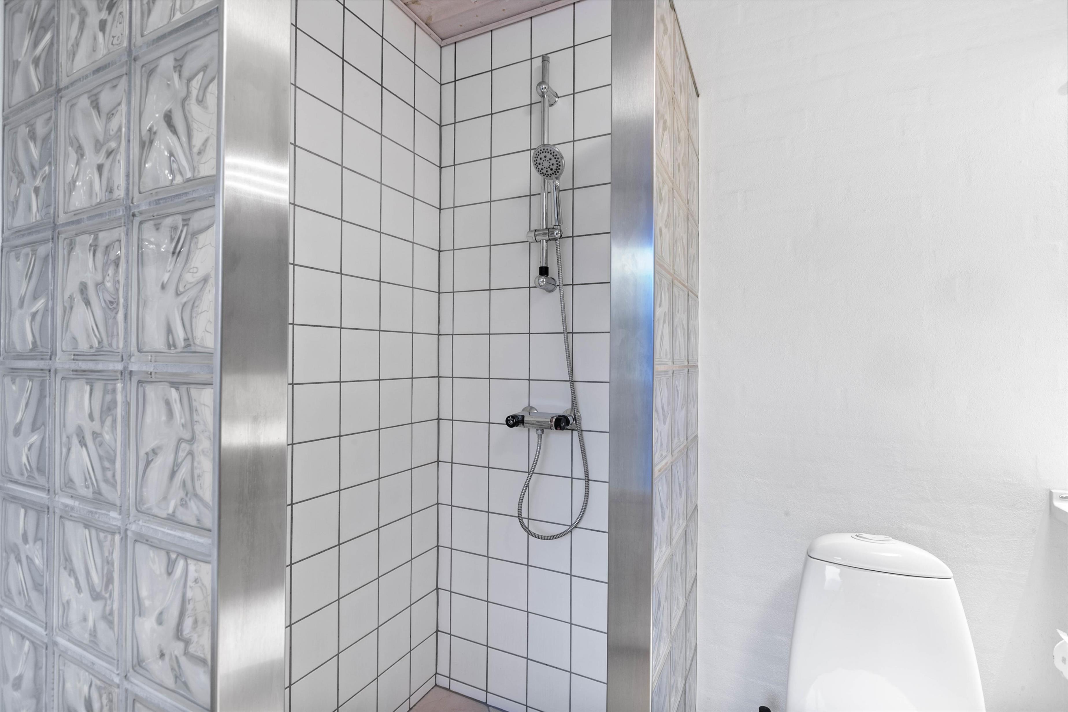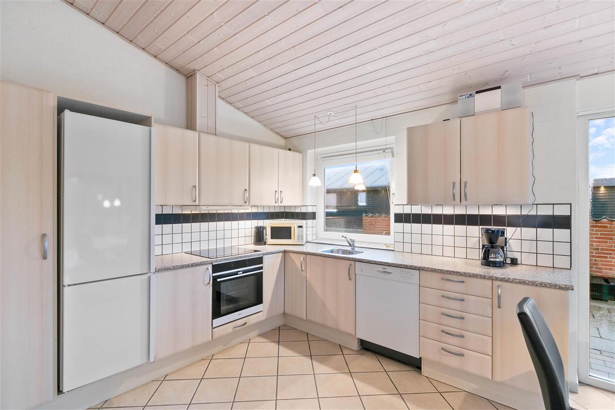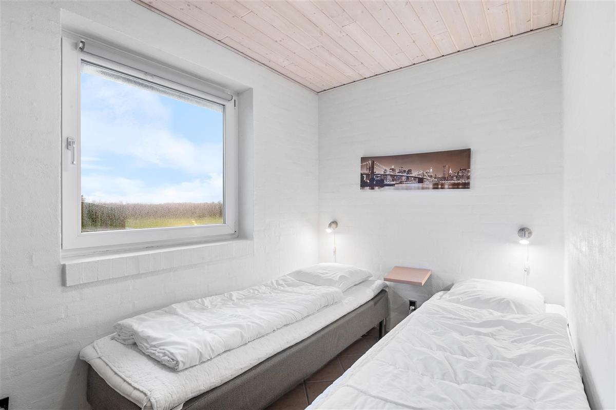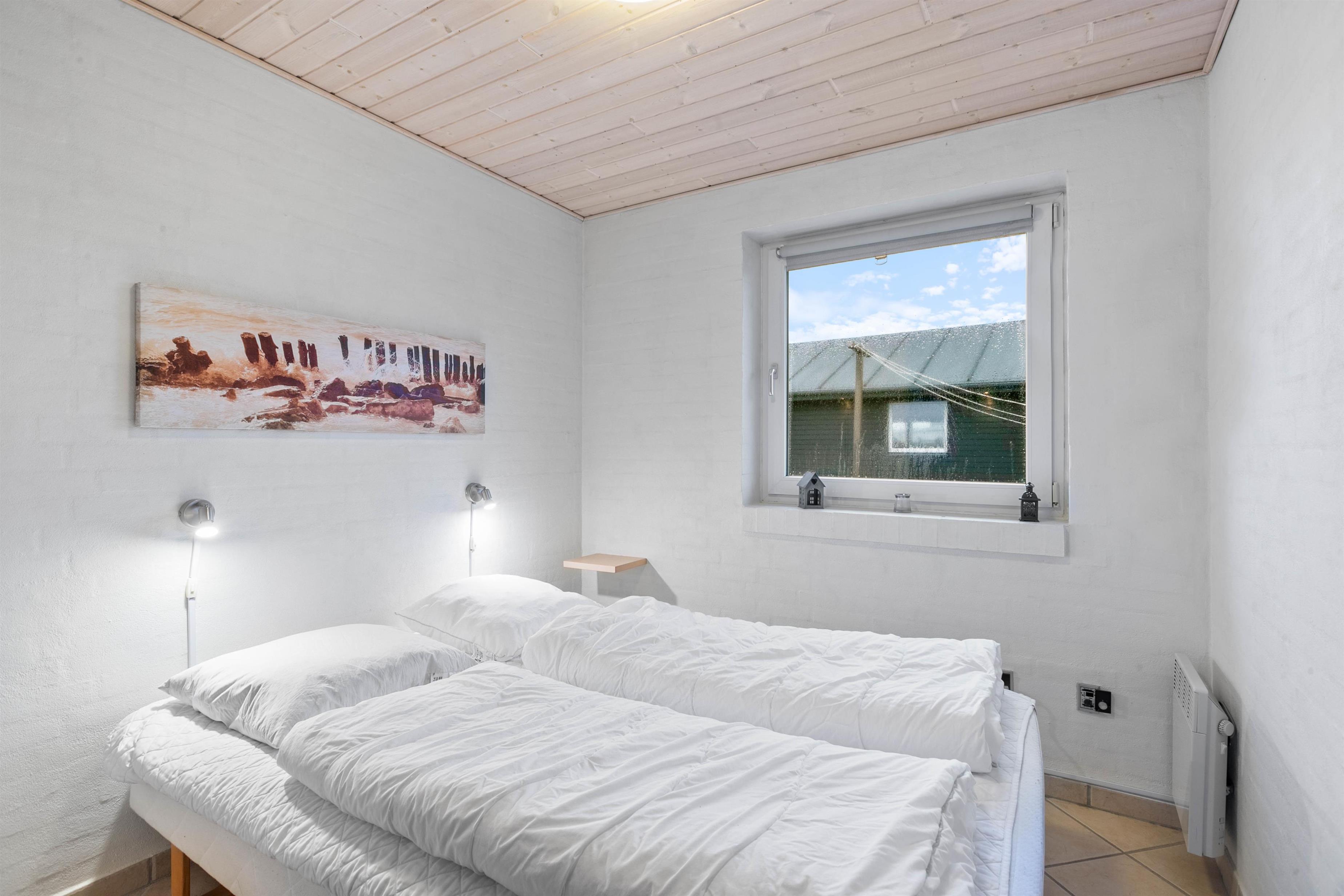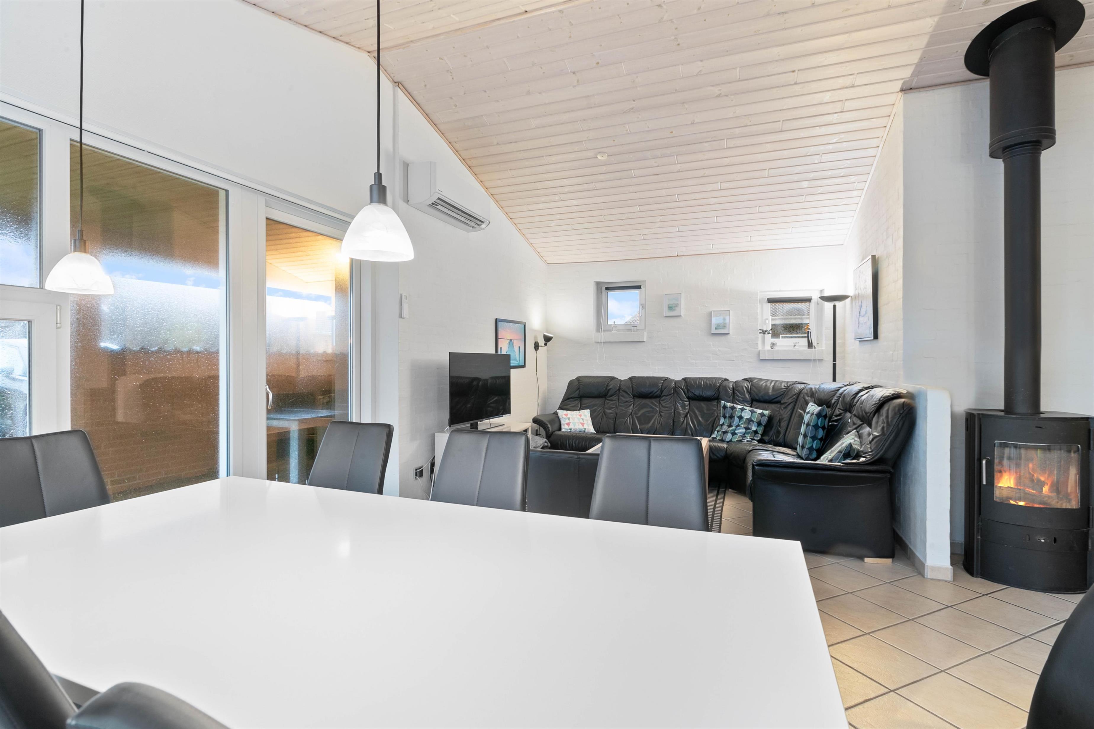 The holiday home has 4 bedrooms - one with a double bed and 2 with single beds. There are also 2 bathrooms, both featuring underfloor heating. If you're two families sharing the holiday home, each family can have their own bathroom. The holiday home is equipped with a heat pump, ensuring comfortable temperatures at low cost.