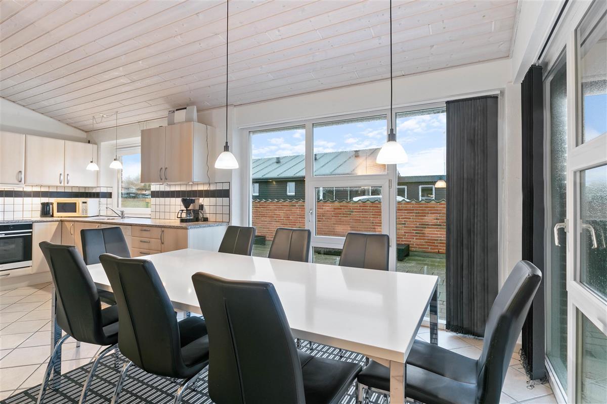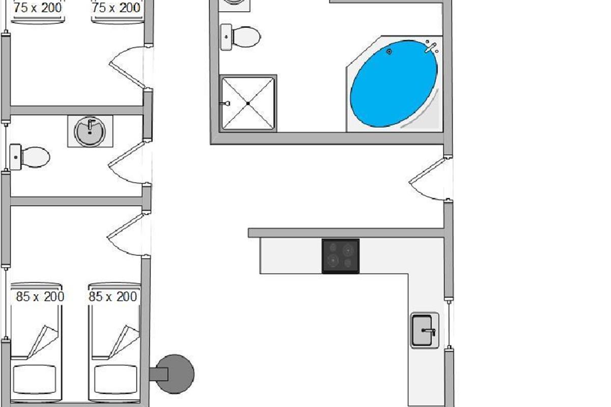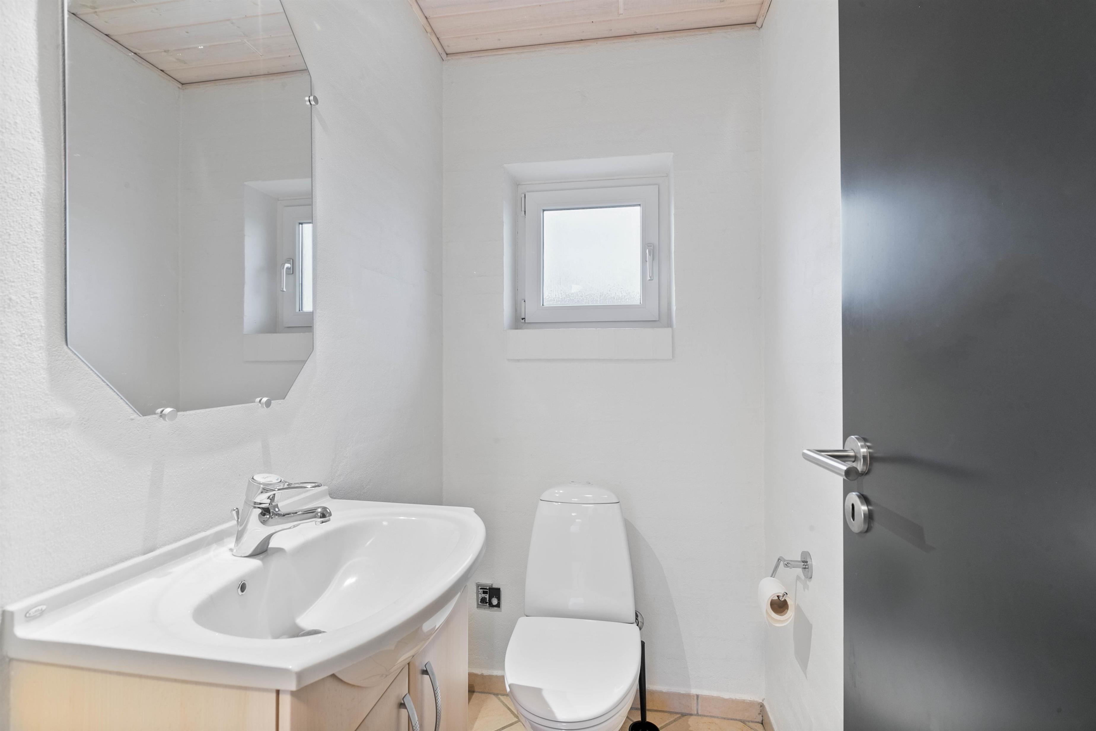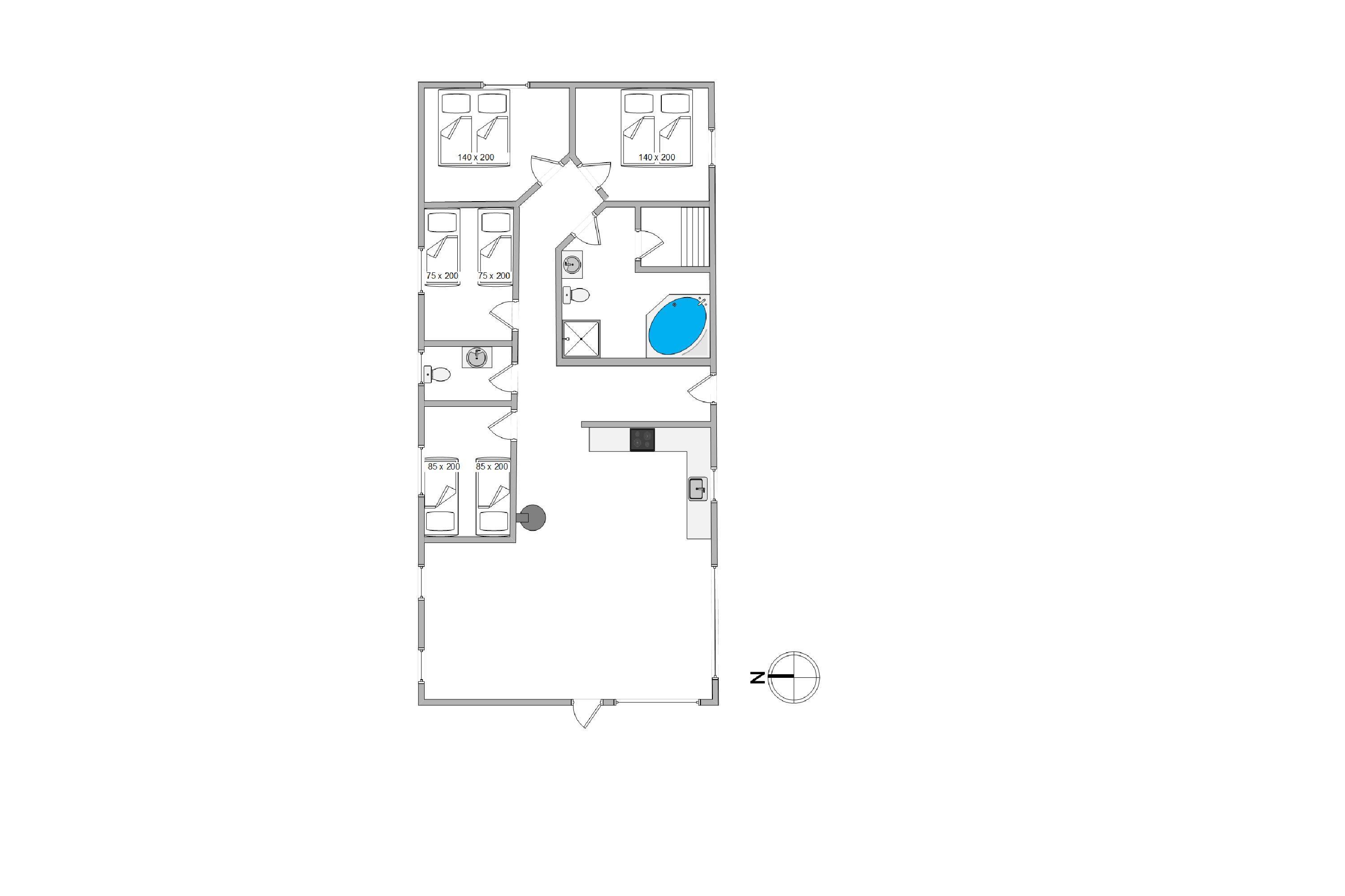The holiday home has 4 bedrooms - one with a double bed and 2 with single beds. There are also 2 bathrooms, both featuring underfloor heating. If you're two families sharing the holiday home, each family can have their own bathroom. The holiday home is equipped with a heat pump, ensuring comfortable temperatures at low cost.