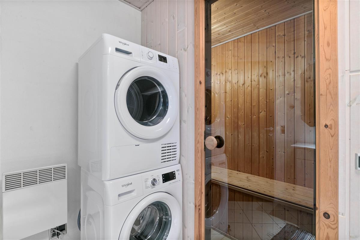 This holiday home at Lærkedalen 4B is the ideal location for a relaxing North Sea holiday. It's bright and functionally furnished, allowing you to focus on what matters most - cosy gatherings and self-indulgence with the hot tub and sauna - or enjoying a well-deserved glass of red wine by the wood-burning stove. That's what we call a holiday.