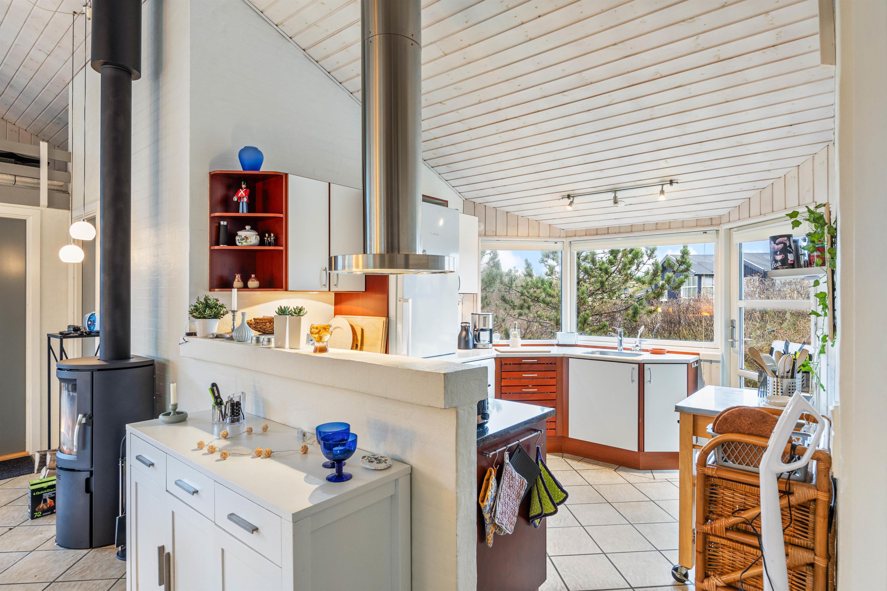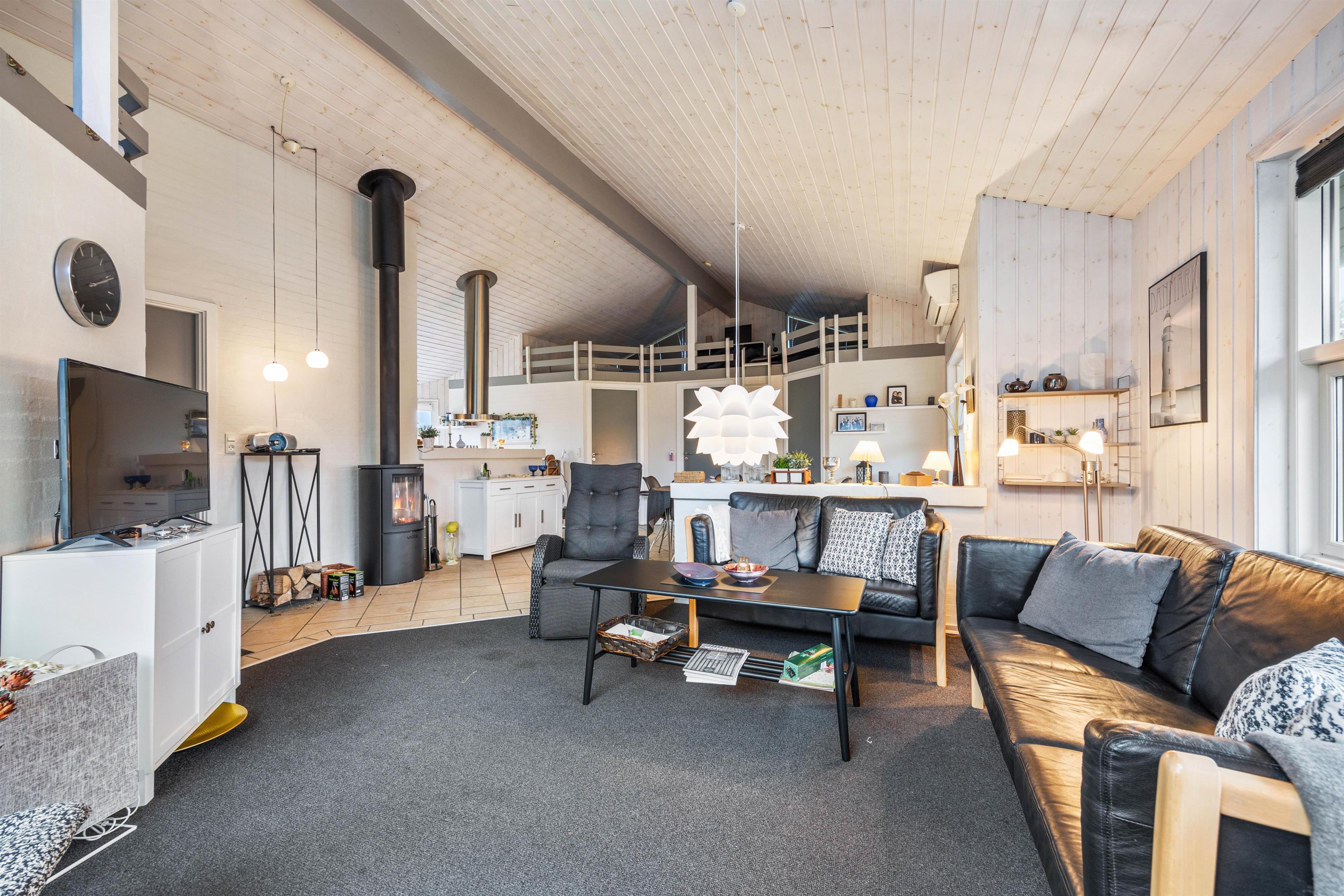 In the evening, gather in the living room to spend quality time with the family while the dishwasher takes care of the cleaning up. On cooler days, lighting the wood-burning stove creates the perfect, cosy holiday atmosphere.