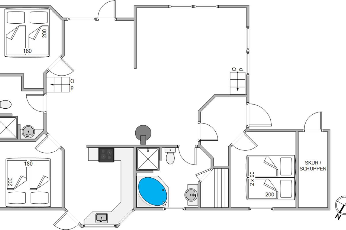 The holiday home has two bathrooms, both with underfloor heating, so you needn't worry about cold feet. One bathroom features a whirlpool for added holiday luxury. When it's time to retire and recharge for another great holiday day, you can spread out in the three comfortable and spacious bedrooms. Each bedroom is furnished with a double bed. Should any spills occur, the washing machine and tumble dryer are ready for use.