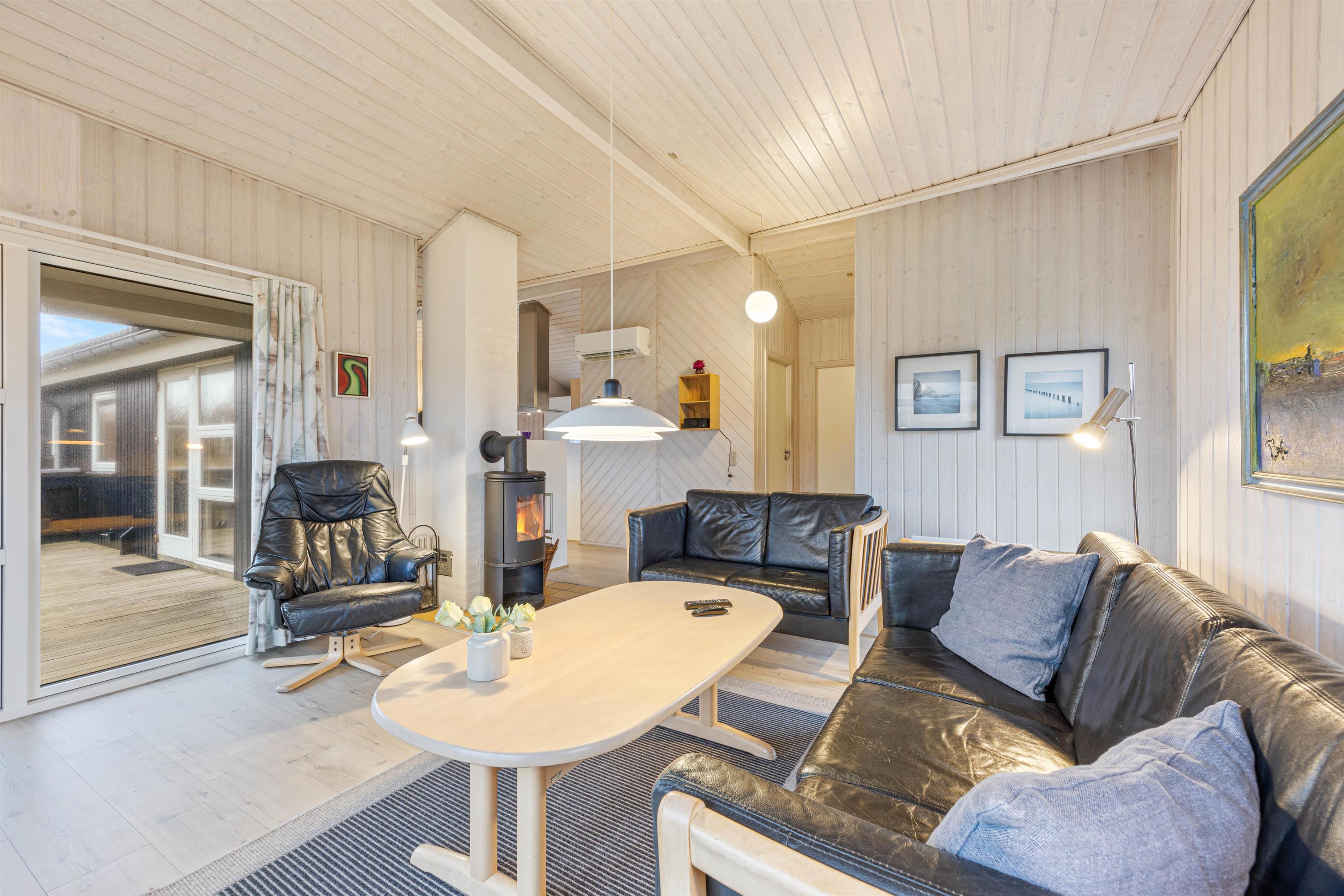 This well-maintained holiday home in Houvig offers true comfort and cosiness. This is thanks to the crackling wood-burning stove, soft sofas and wood-panelled walls - all classic country house elements that create a welcoming atmosphere.
