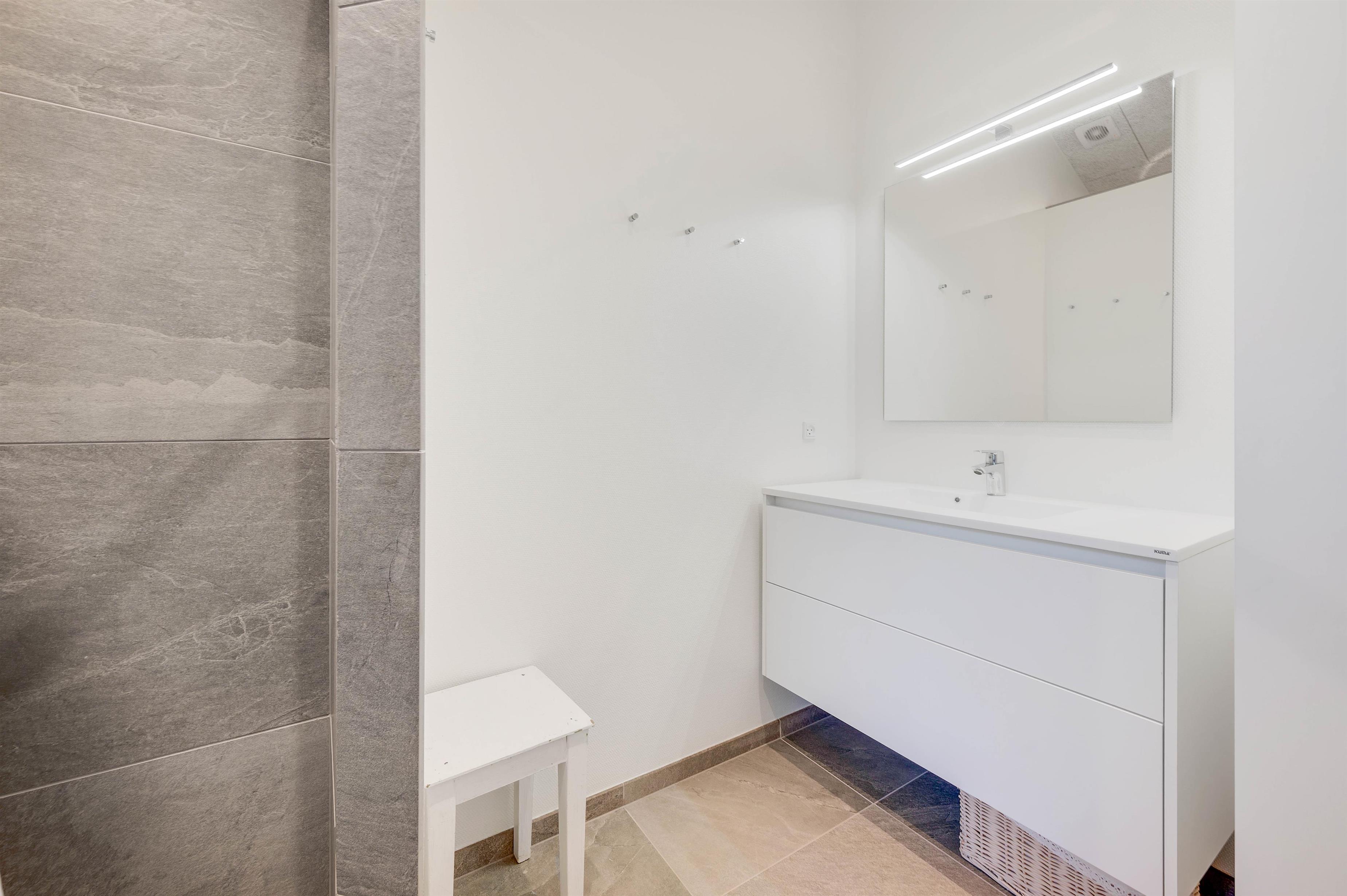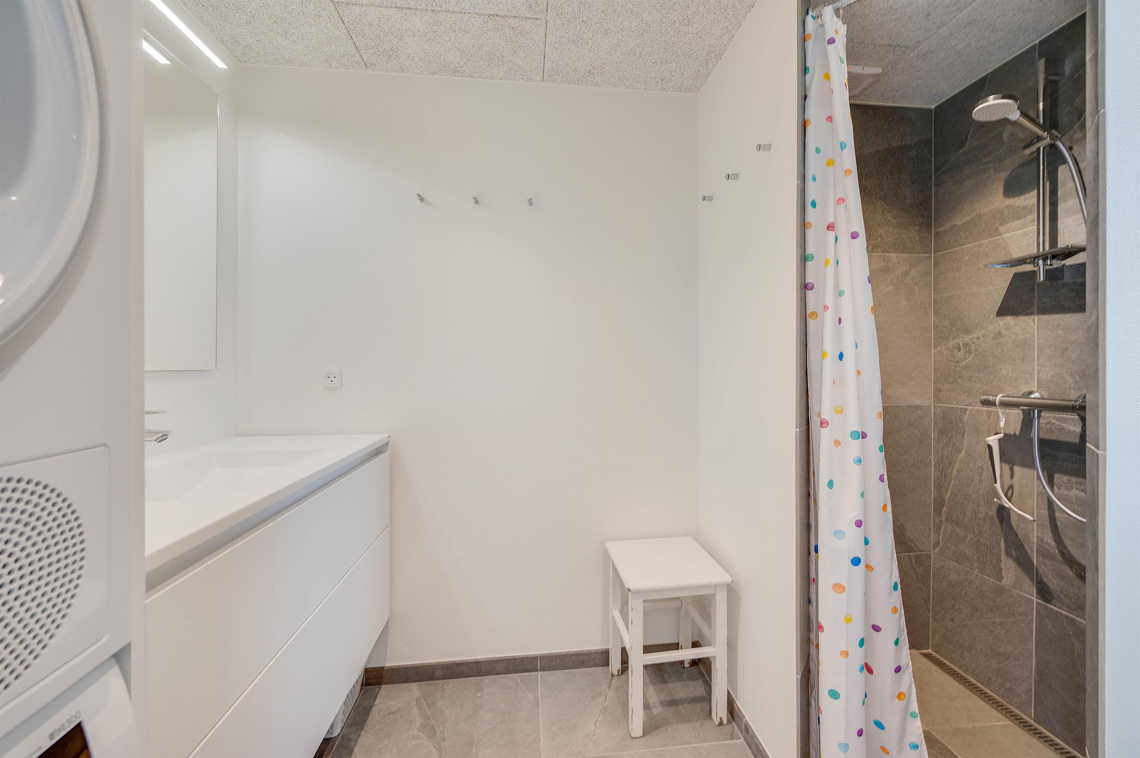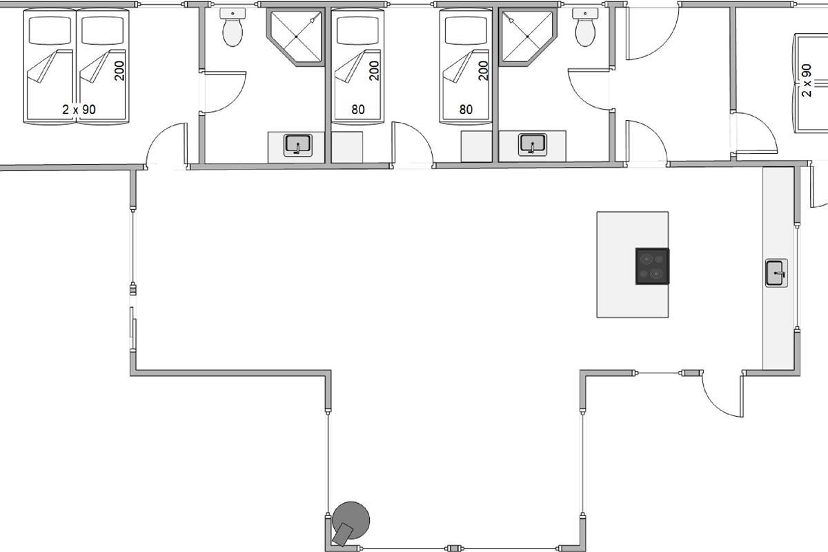 Krogen 73 impresses with both classic and modern furnishings. The kitchen with its island has been thoughtfully integrated into the living area, adding a modern touch, while the dining area and sofa corner bring a classic feel, ensuring comfort and well-being. High ceilings and light-coloured walls make the living space appear bright and airy.