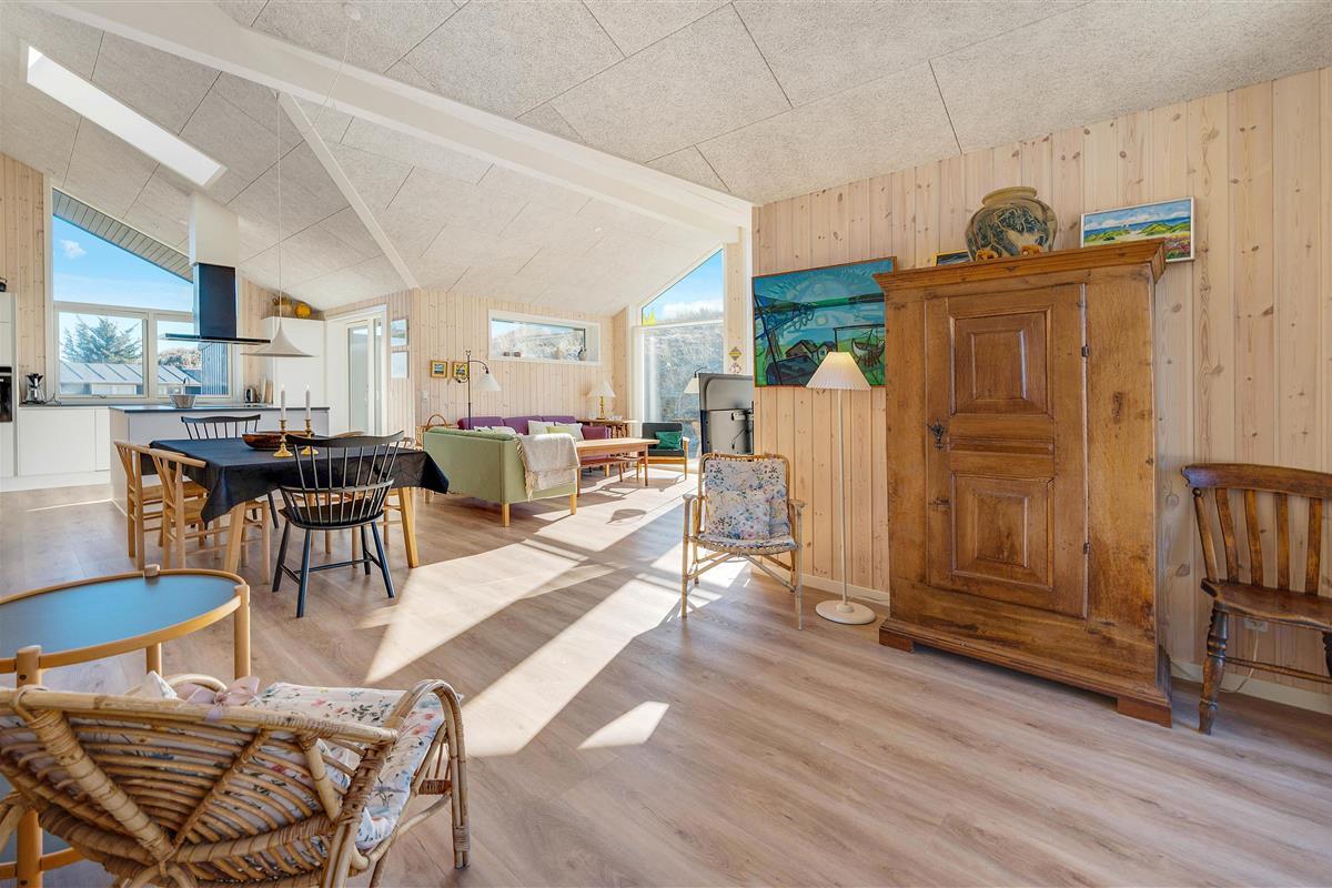 If you dream of a holiday home where you can hear the sound of the sea as you drift off to sleep, then Krogen 73 in Houvig is certainly an excellent choice. Built in 2021, this holiday home sits on a 3,000-square-metre natural plot just minutes' walk from the North Sea and offers 109 square metres of living space, accommodating up to 6 people and one dog.