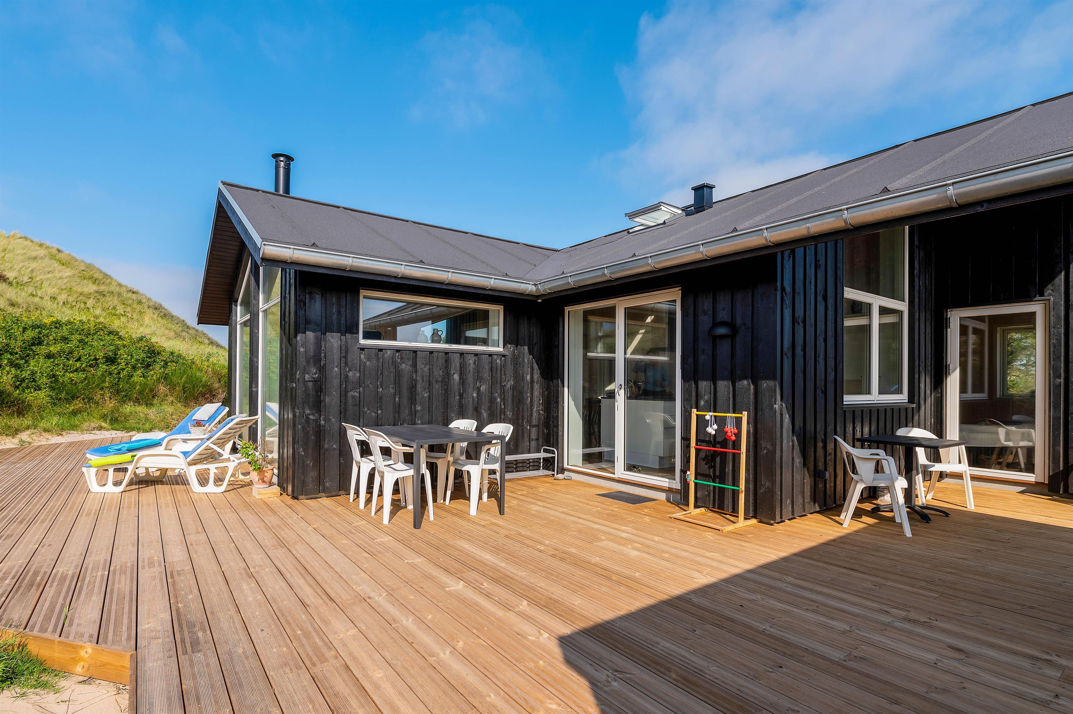 Around the house, you'll find various seating areas, and sunbathing on one of the loungers offers pure relaxation. If you wish, you can end your day on the terrace with a delicious barbecue dinner from the holiday home's own grill, enjoying a cool drink while watching the sun set behind the dunes.