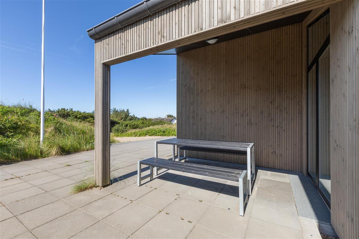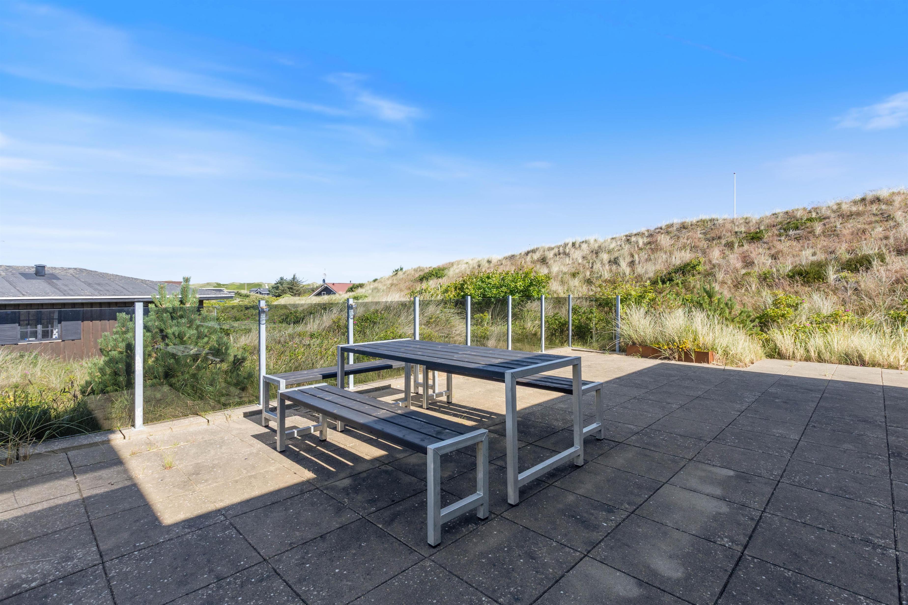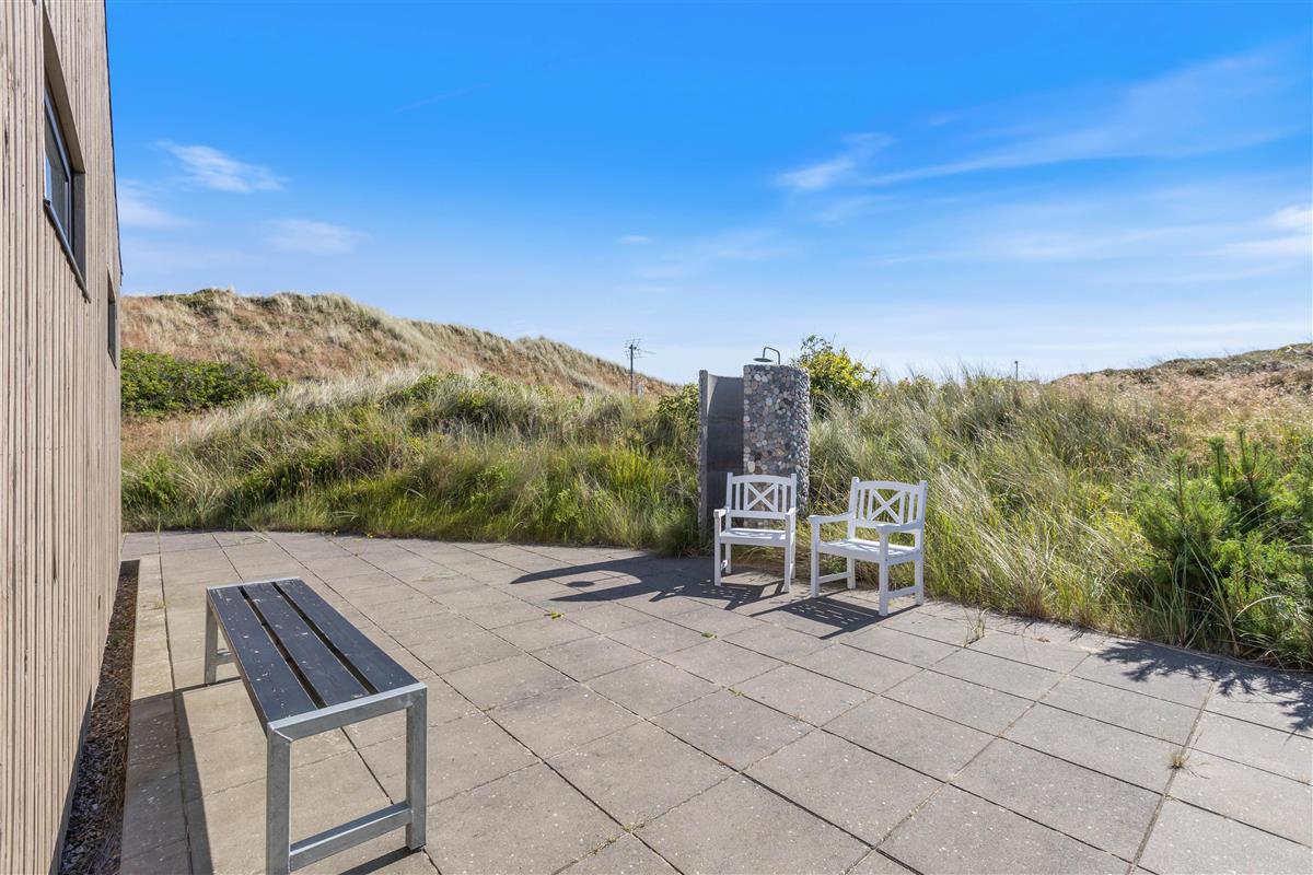 The holiday home sits on beautiful natural grounds in Houvig, and from the terrace, you'll enjoy wonderful views across the dune landscape with heather as far as the eye can see. Relax on the sun loungers and end your day with a barbecue on the terrace in the warm evening sun.