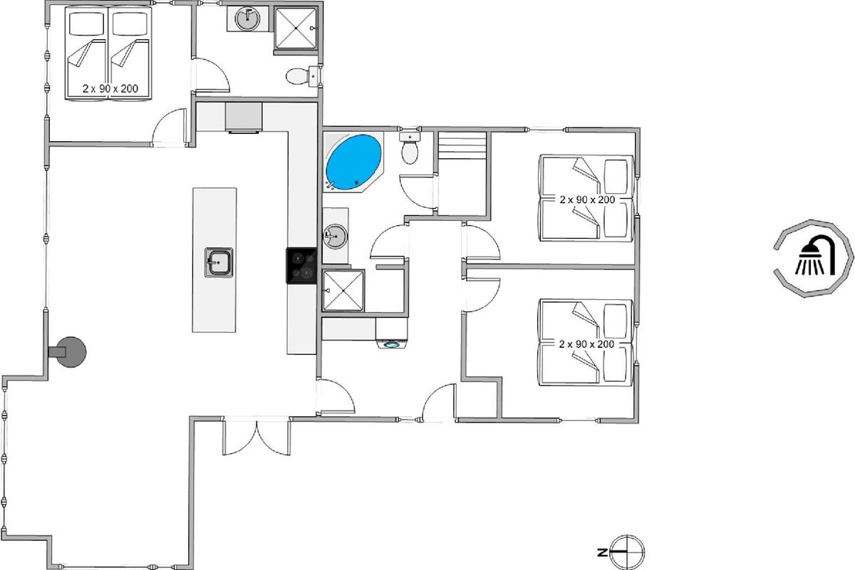 Looking for the perfect holiday home with excellent comfort for your next break? Then Sneppedalen 28 is exactly right for you! This beautiful holiday home, built in 2019, has everything holiday dreams are made of: a hot tub, sauna, outdoor shower (April-November), and fantastic views over the dune landscape with heather - all just 500 metres from the beach.