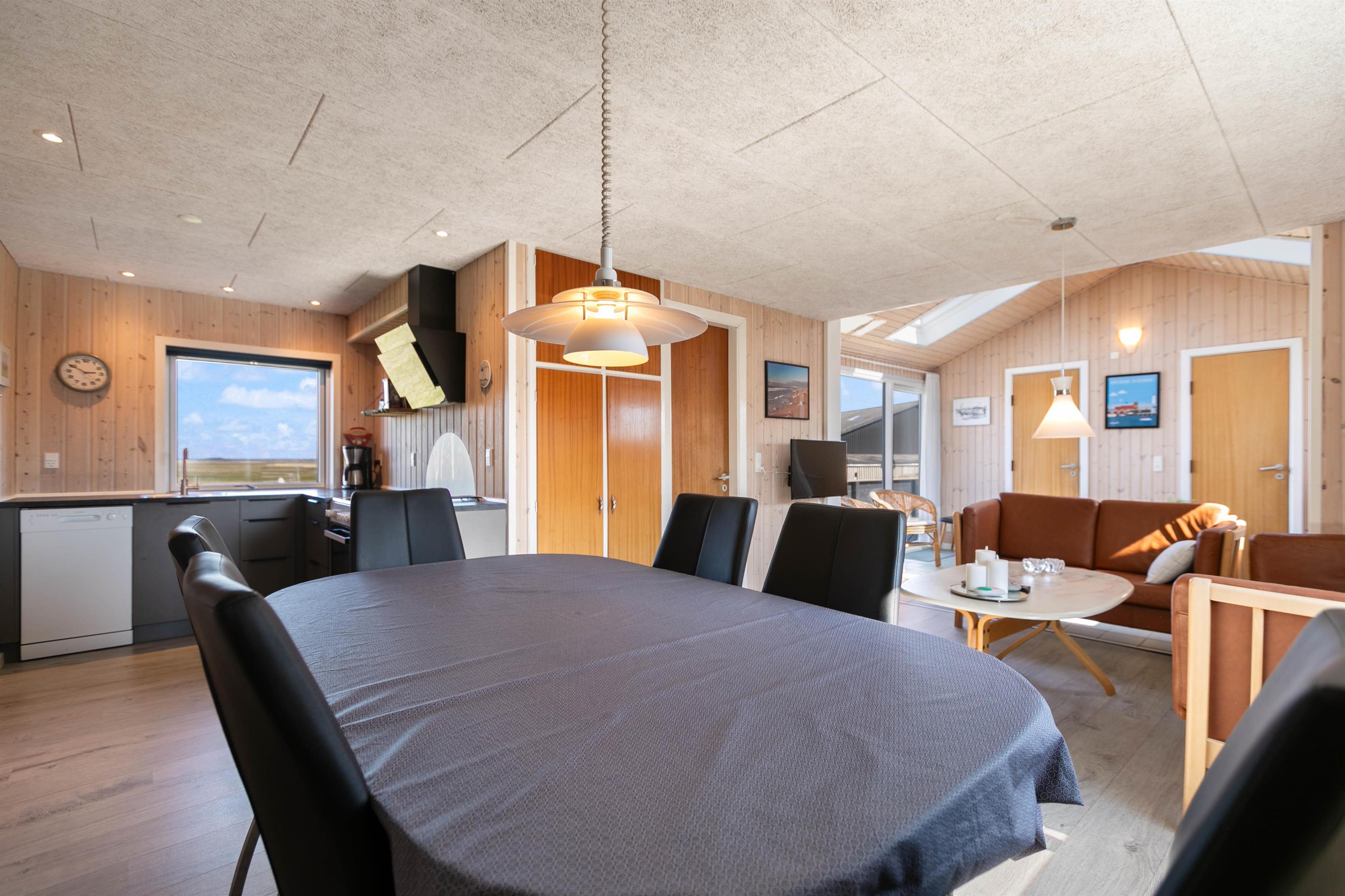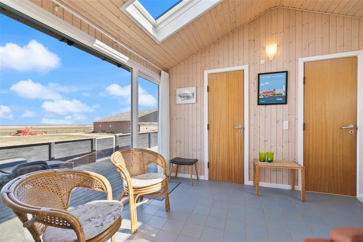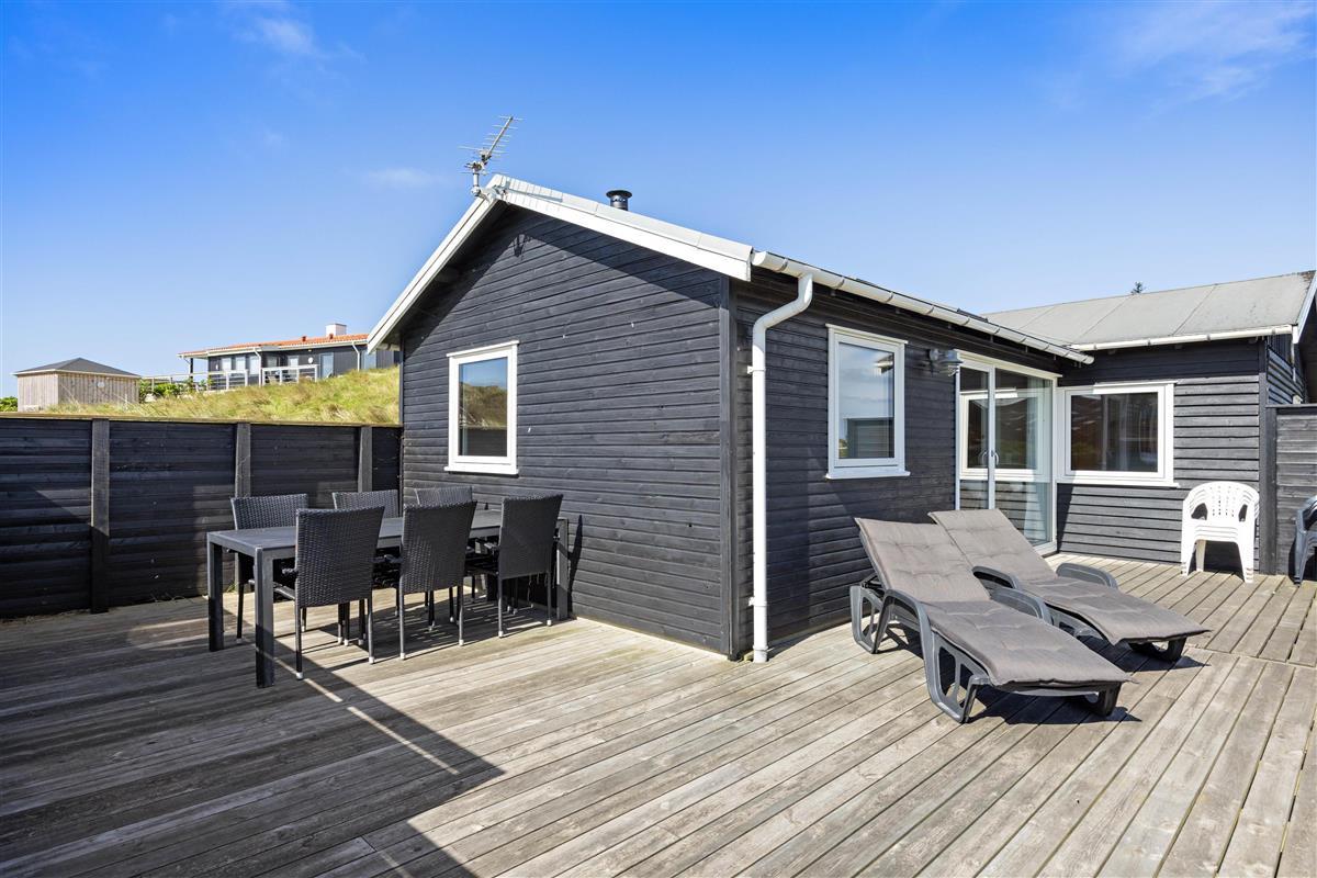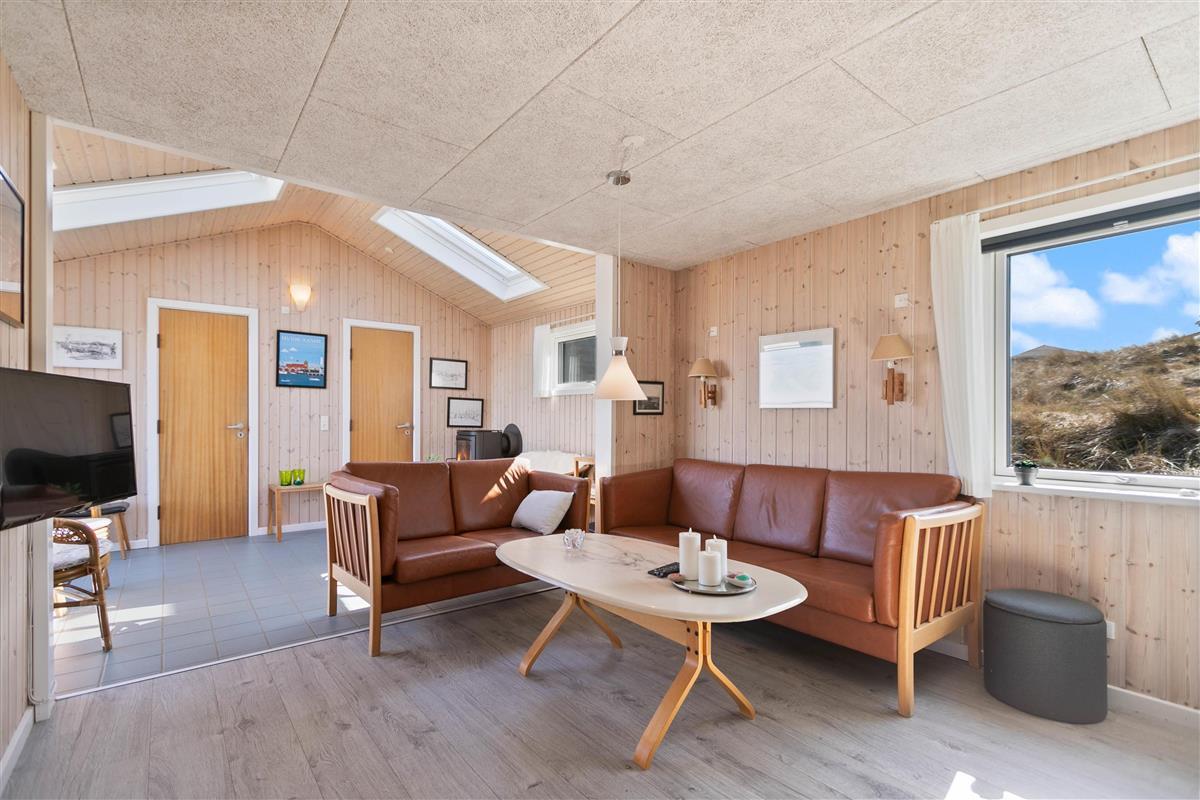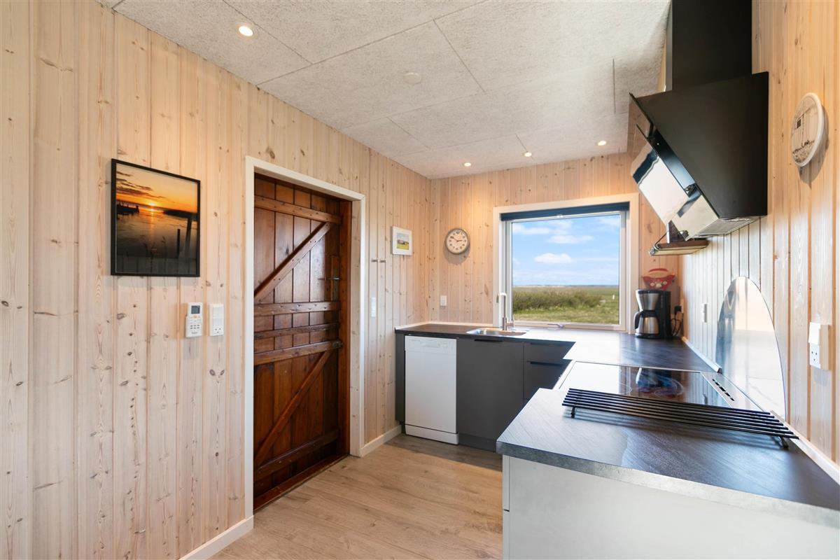 If you're looking for a peaceful spot for a simple and relaxing Danish holiday, this holiday home is perfect for you. Renovated in 2018, this wooden holiday home in Krogen 1, Houvig, offers everything needed for a carefree holiday on the West Coast. The large windows and sheltered terrace overlooking seemingly endless natural landscapes are particularly impressive.