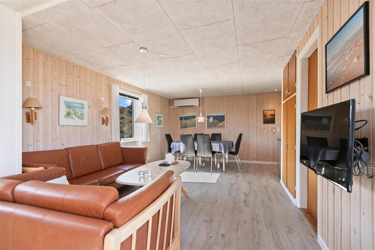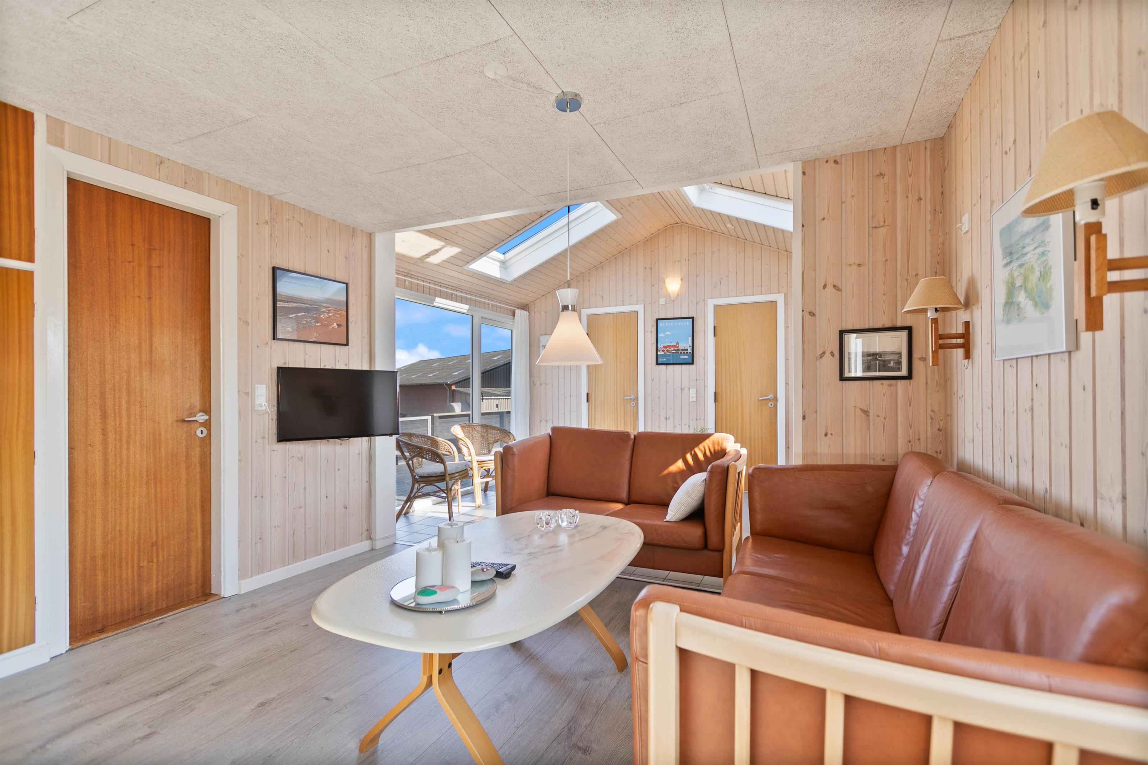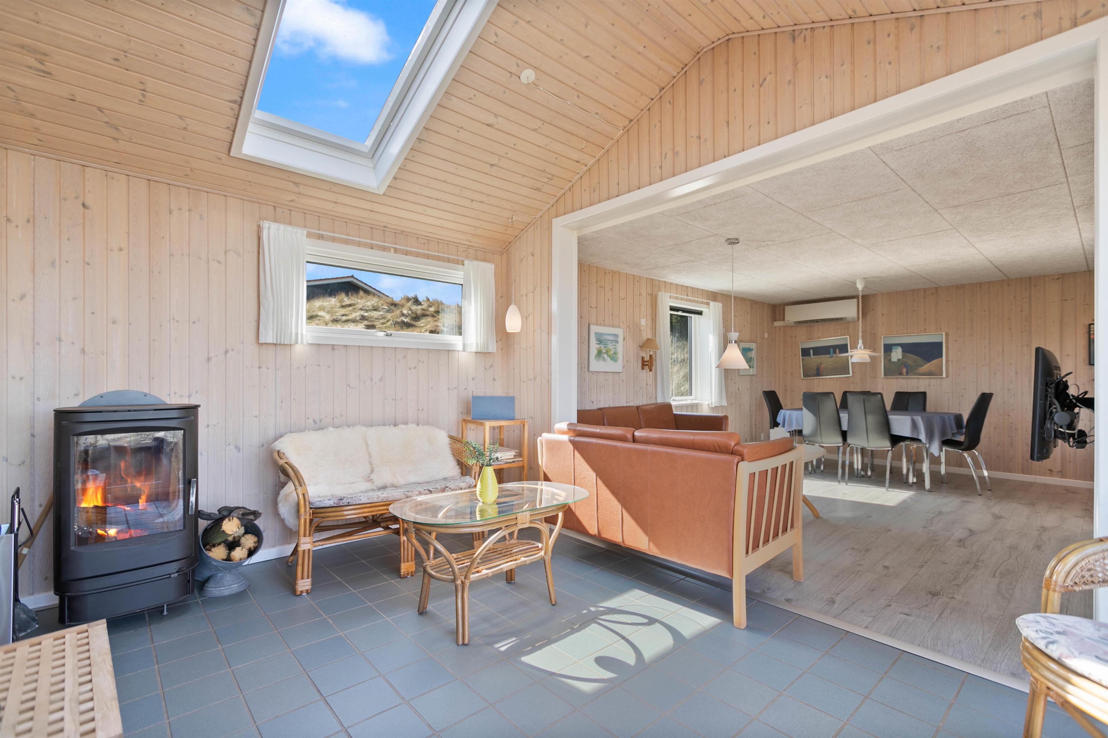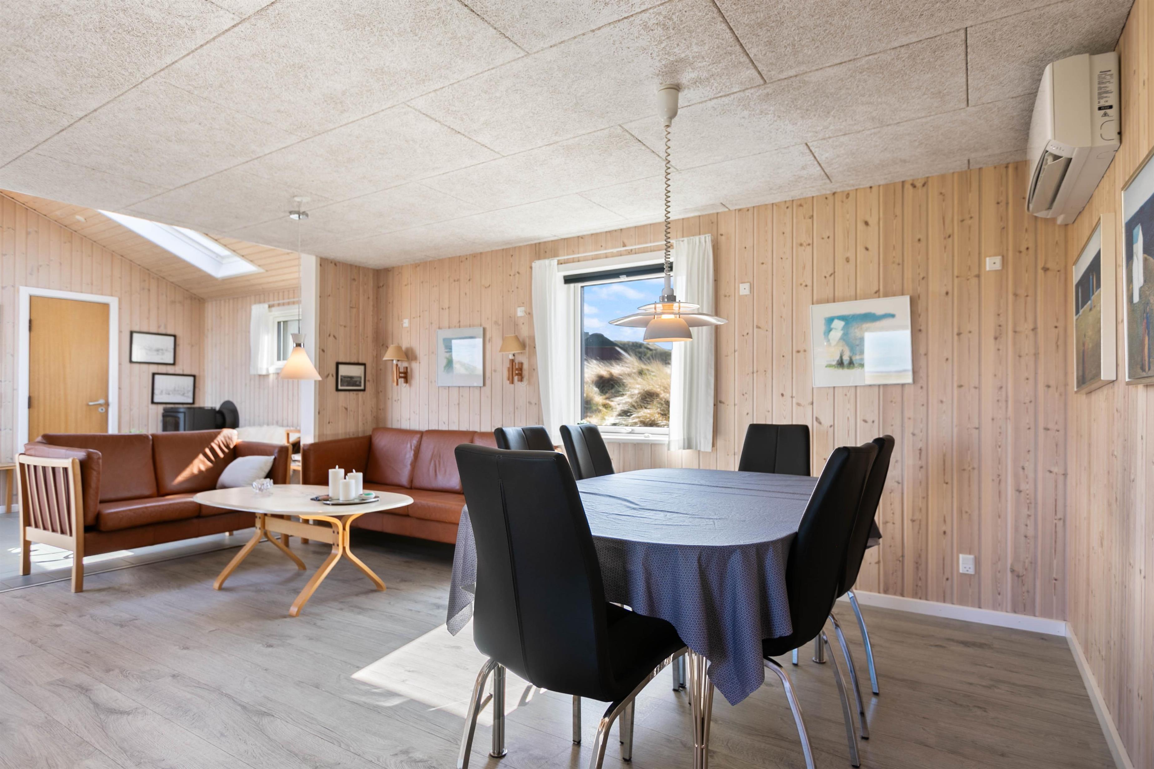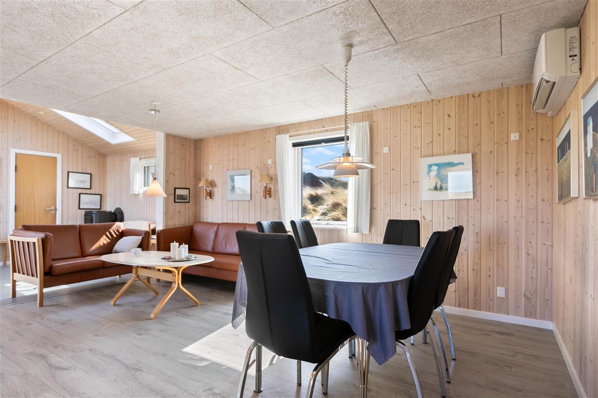 If you're looking for a peaceful spot for a simple and relaxing Danish holiday, this holiday home is perfect for you. Renovated in 2018, this wooden holiday home in Krogen 1, Houvig, offers everything needed for a carefree holiday on the West Coast. The large windows and sheltered terrace overlooking seemingly endless natural landscapes are particularly impressive.