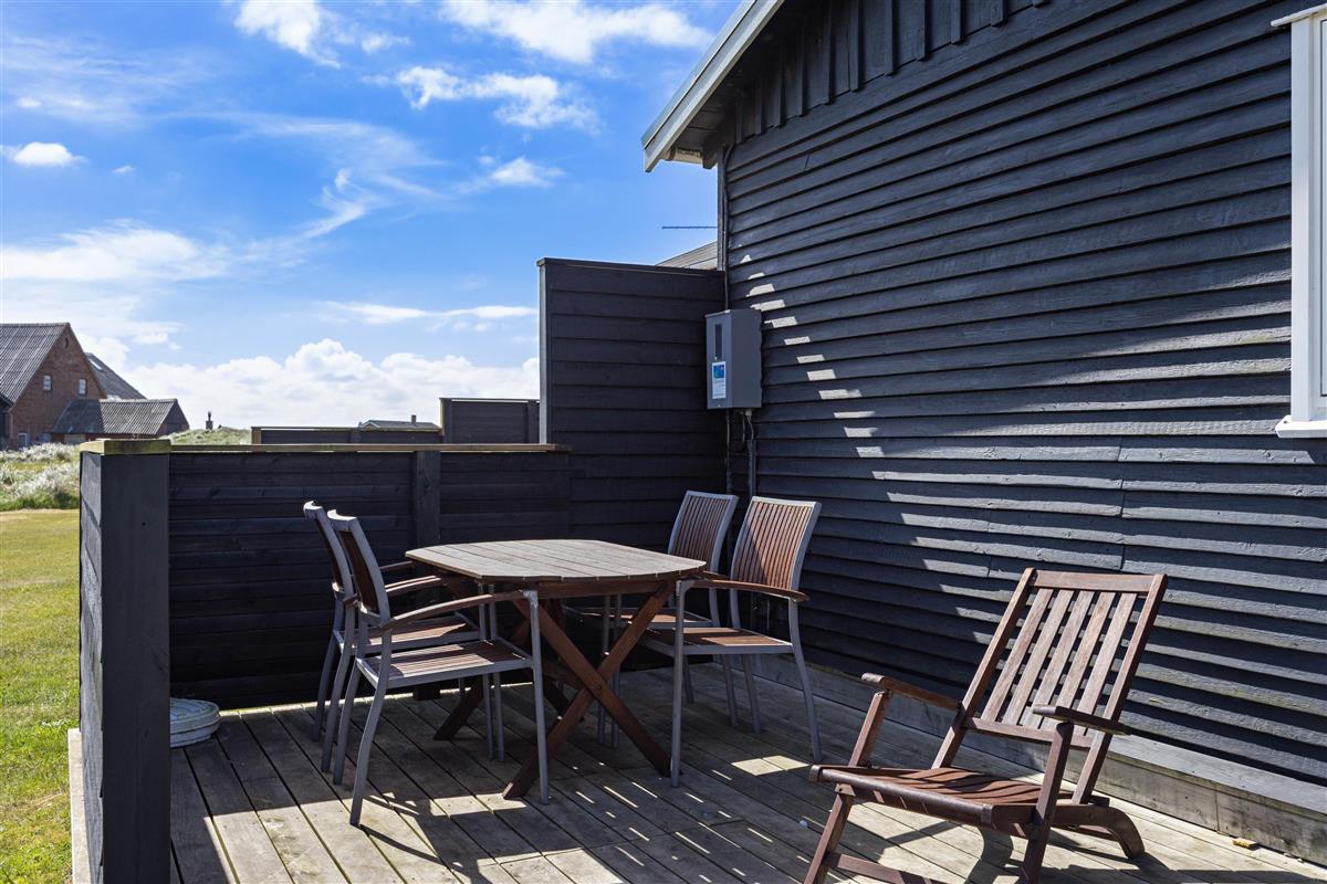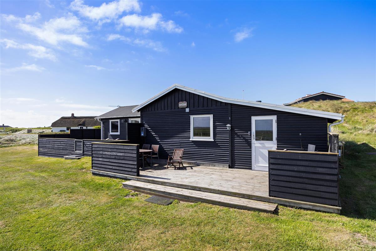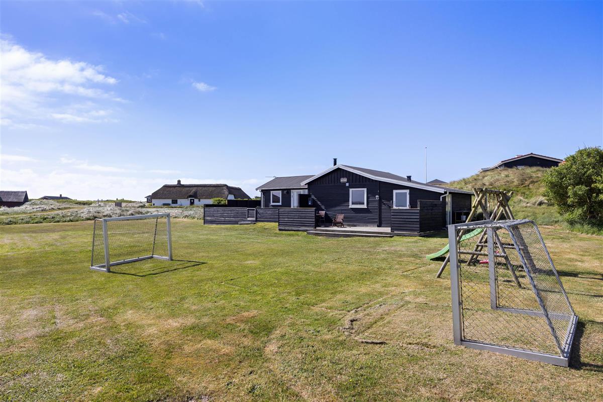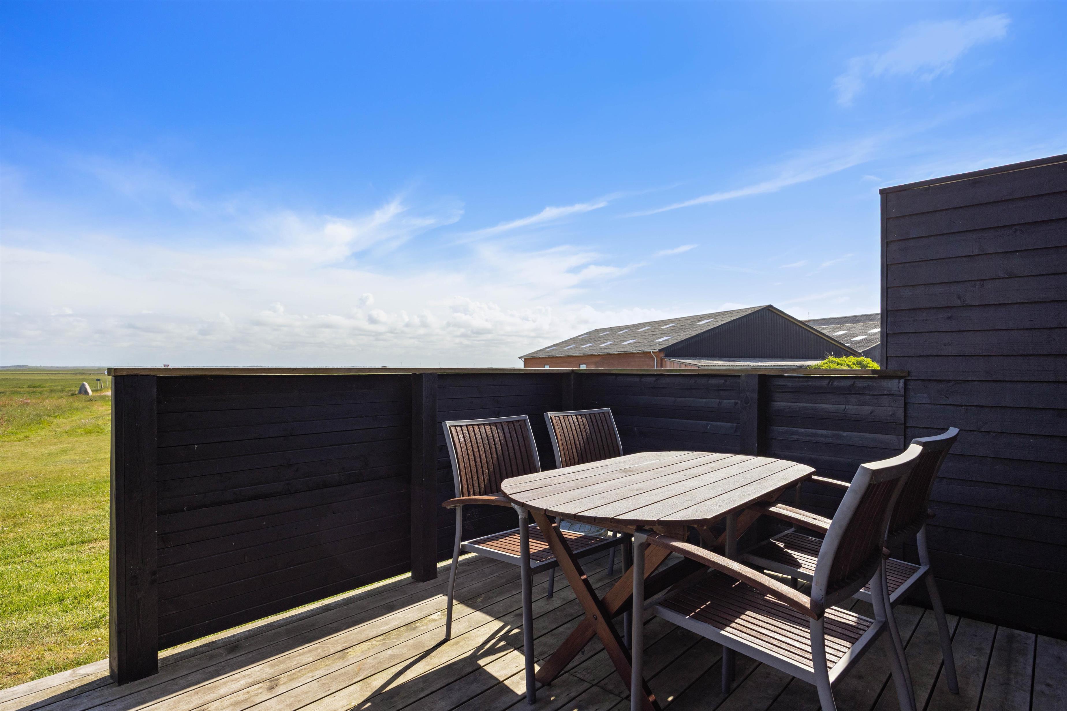 From the sheltered east-facing terrace, you can enjoy your morning coffee while watching the sunrise over the meadows of Denmark's West Coast. Protected from the wind, it's perfect for family barbecues. While dinner is cooking, children can play freely in the large natural grounds.