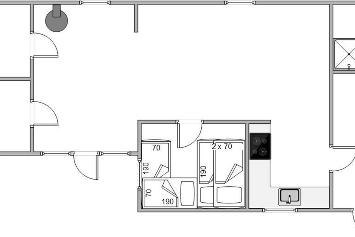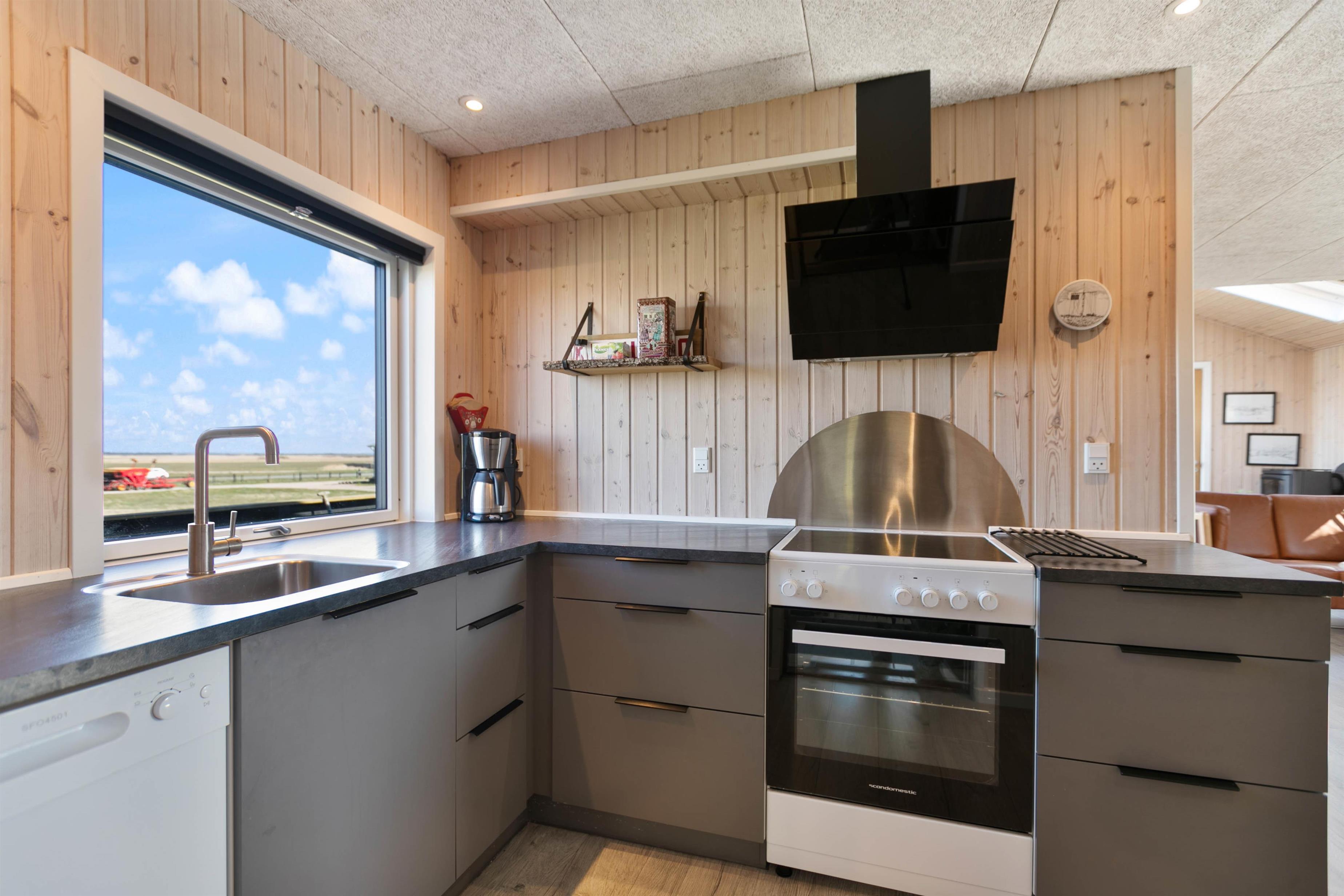 The large living room windows flood the house with natural light, and on clear nights, you can stargaze directly from the sofa. The generously sized kitchen offers views across the natural landscape bordering the holiday home. The house features a washing machine and tumble dryer, particularly convenient for families with young children. Additionally, there's fast and reliable internet connection.