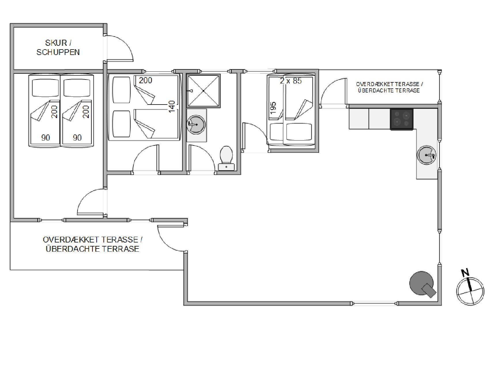 The large, fenced and partially covered south-facing terrace allows you to peacefully enjoy the fresh North Sea air. Behind the house, you'll find a cosy corner sheltered by the north-facing terrace. This gives you plenty of options to follow the sun throughout the day, while in the evening you can prepare dinner on the house's own barbecue and enjoy a cool refreshment in the setting sun.