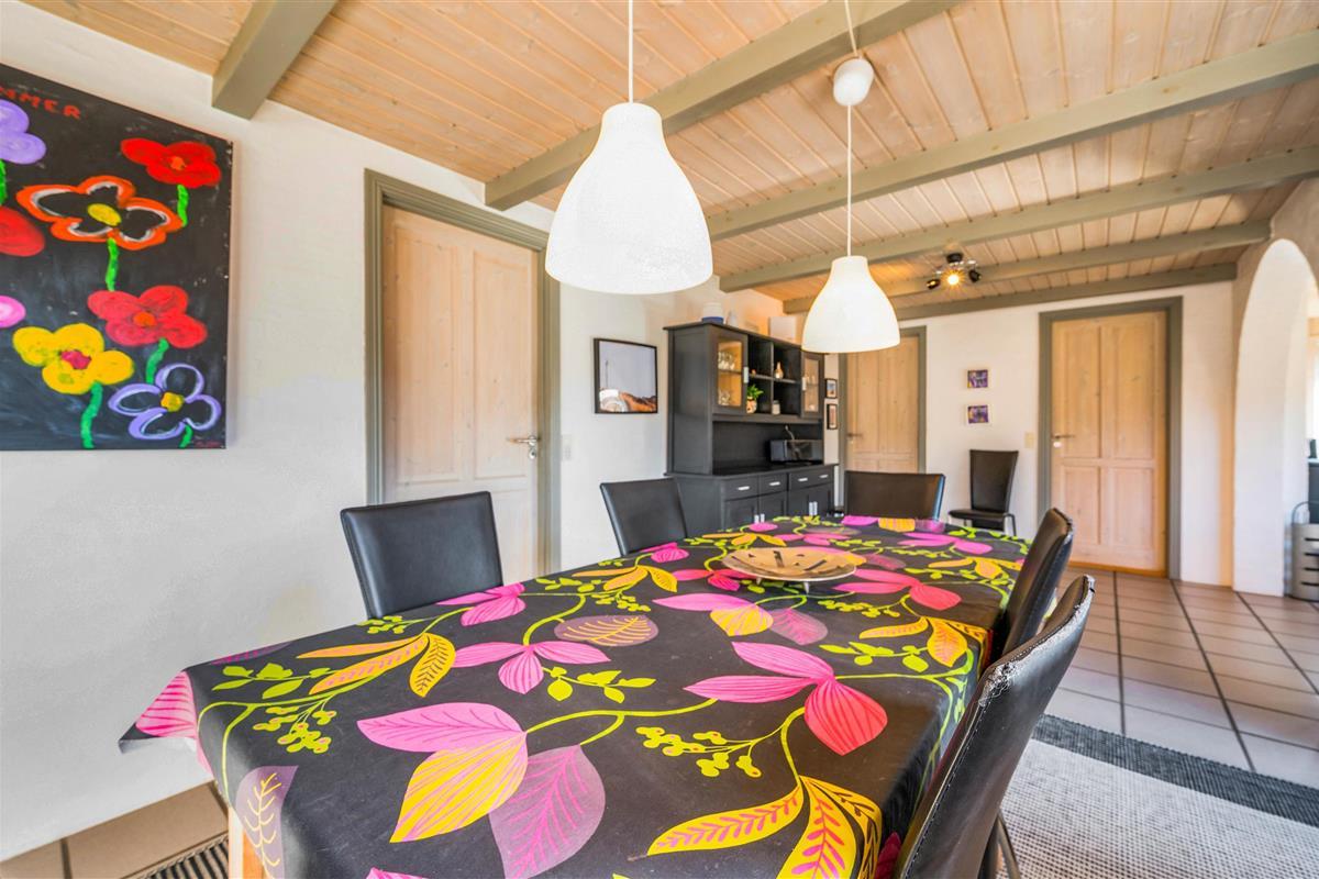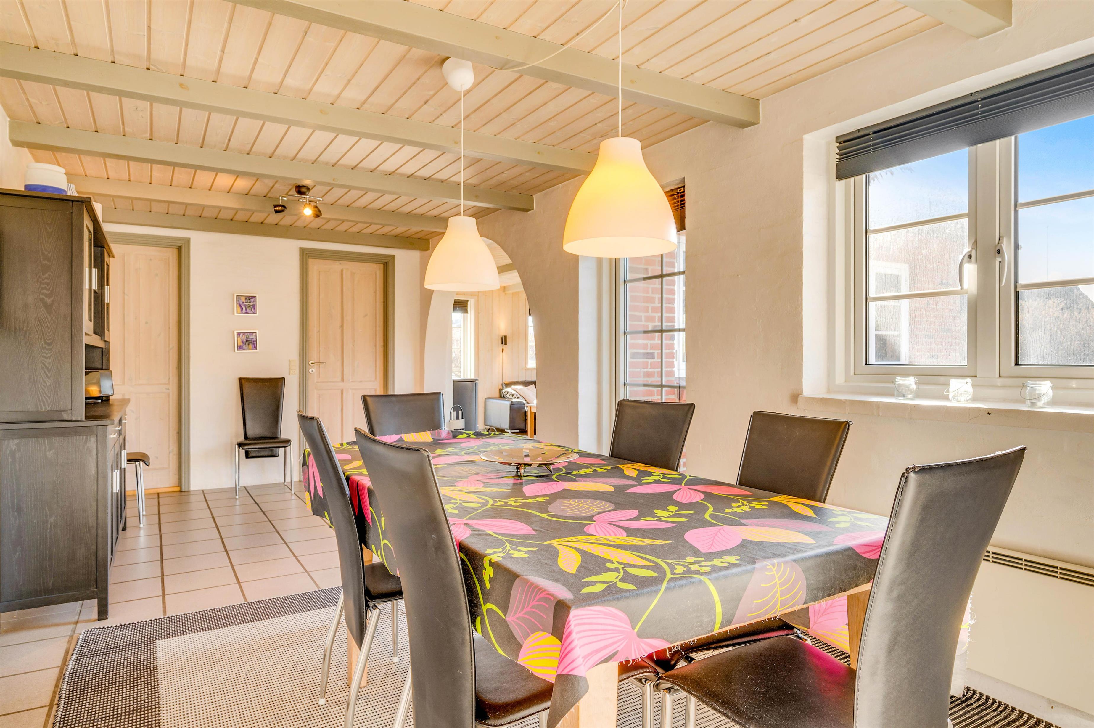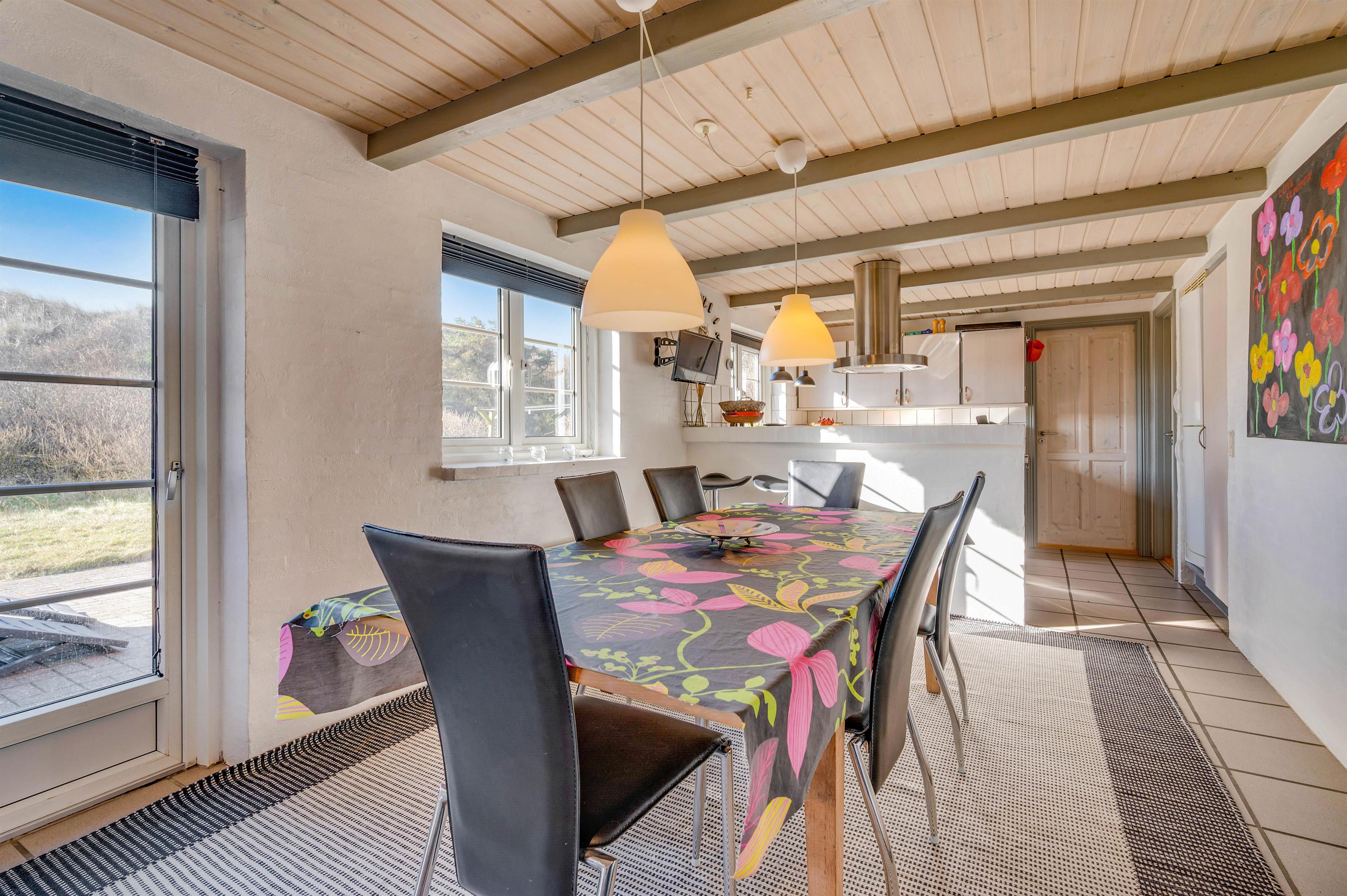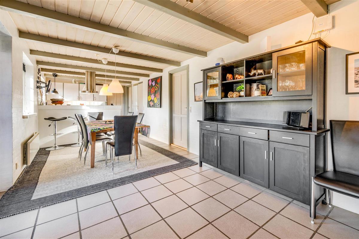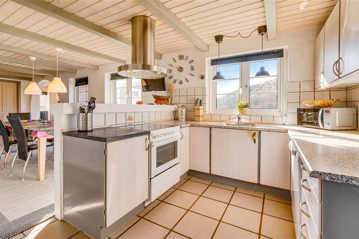 The kitchen and dining area flow directly from the living room, maintaining the attractive style throughout. The tiled flooring extends through all living areas - not only beautiful but also incredibly practical for cleaning up after sandy toes following a long day at the North Sea.