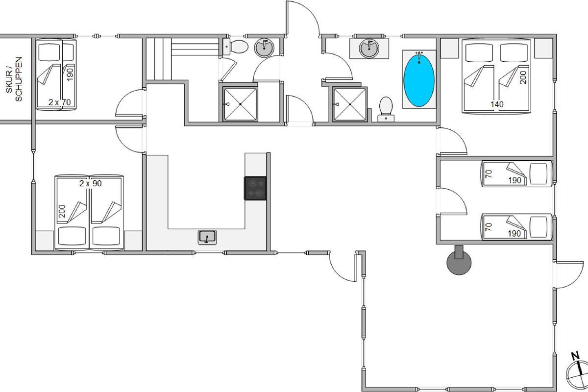 The Houvig holiday home has 4 bright and well-maintained bedrooms. Two bedrooms feature double beds, while the other two rooms have twin beds and a bunk bed sleeping two. In other words, there's plenty of space for the family, making it perfect for inviting grandparents along too.