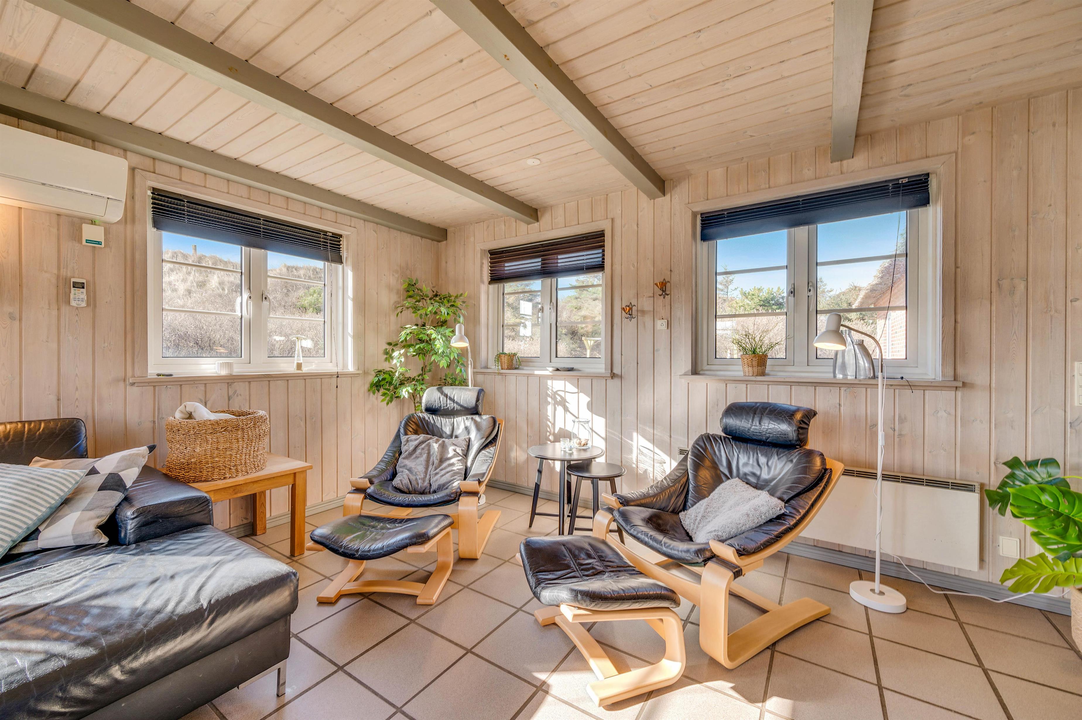 The holiday home sits on a beautiful natural plot where grasses and marram grass grow wild. The location is peaceful and very child-friendly. Best of all, it's just 350 metres to the water. Evening walks with the dog should definitely include a stop at the beach for a paddle.