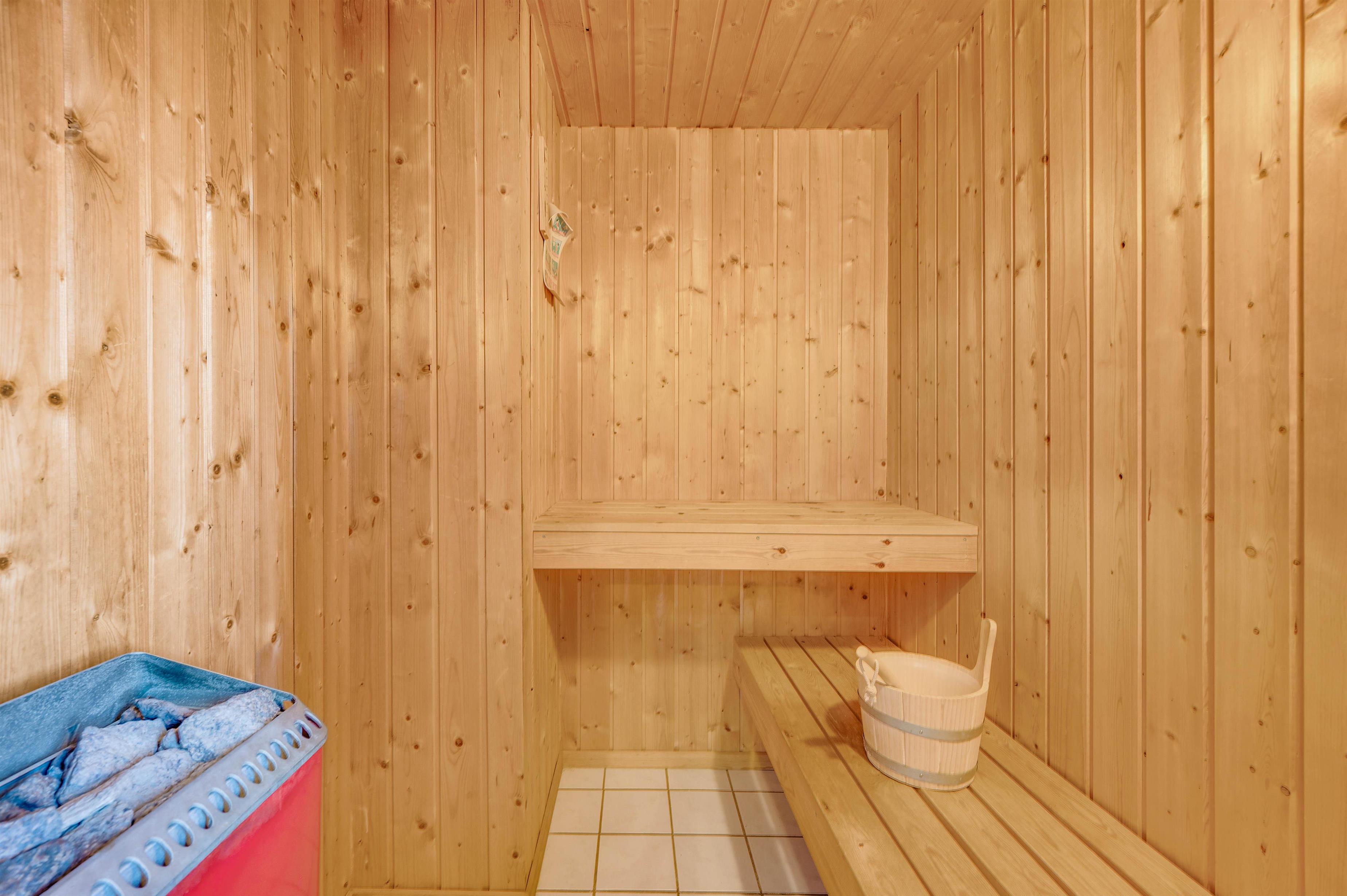 You'll also find two lovely bathrooms. One bathroom has direct access to the holiday home's sauna, while the other features a large whirlpool accommodating up to 4 people.