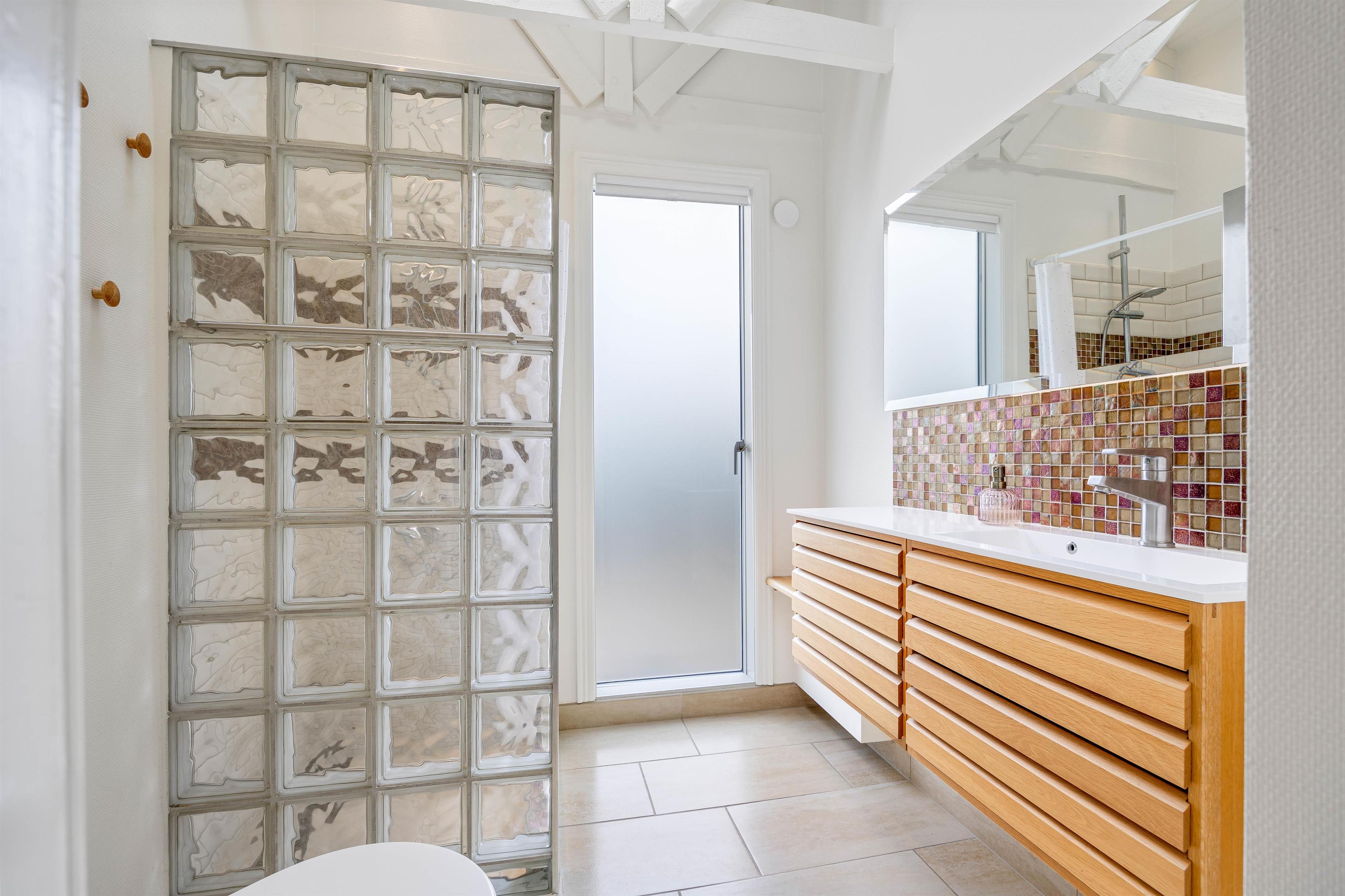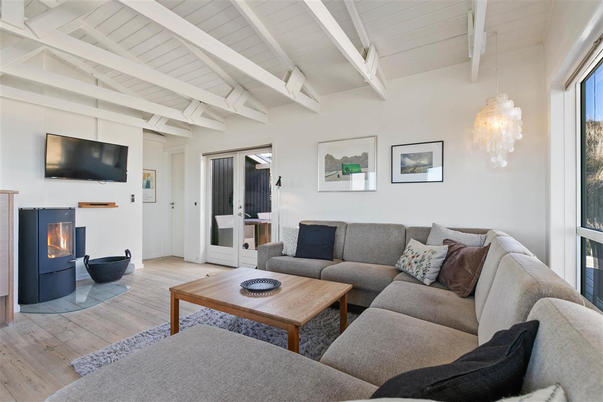 Your holiday home welcomes you with a bright atmosphere. A fully equipped kitchen with underfloor heating and dishwasher makes daily life effortless and relaxing. After a long day in the fresh North Sea air, the wood-burning stove creates that special Danish cosiness that will embrace you. The energy-efficient air-to-air heat pump ensures a pleasant and consistent indoor climate.