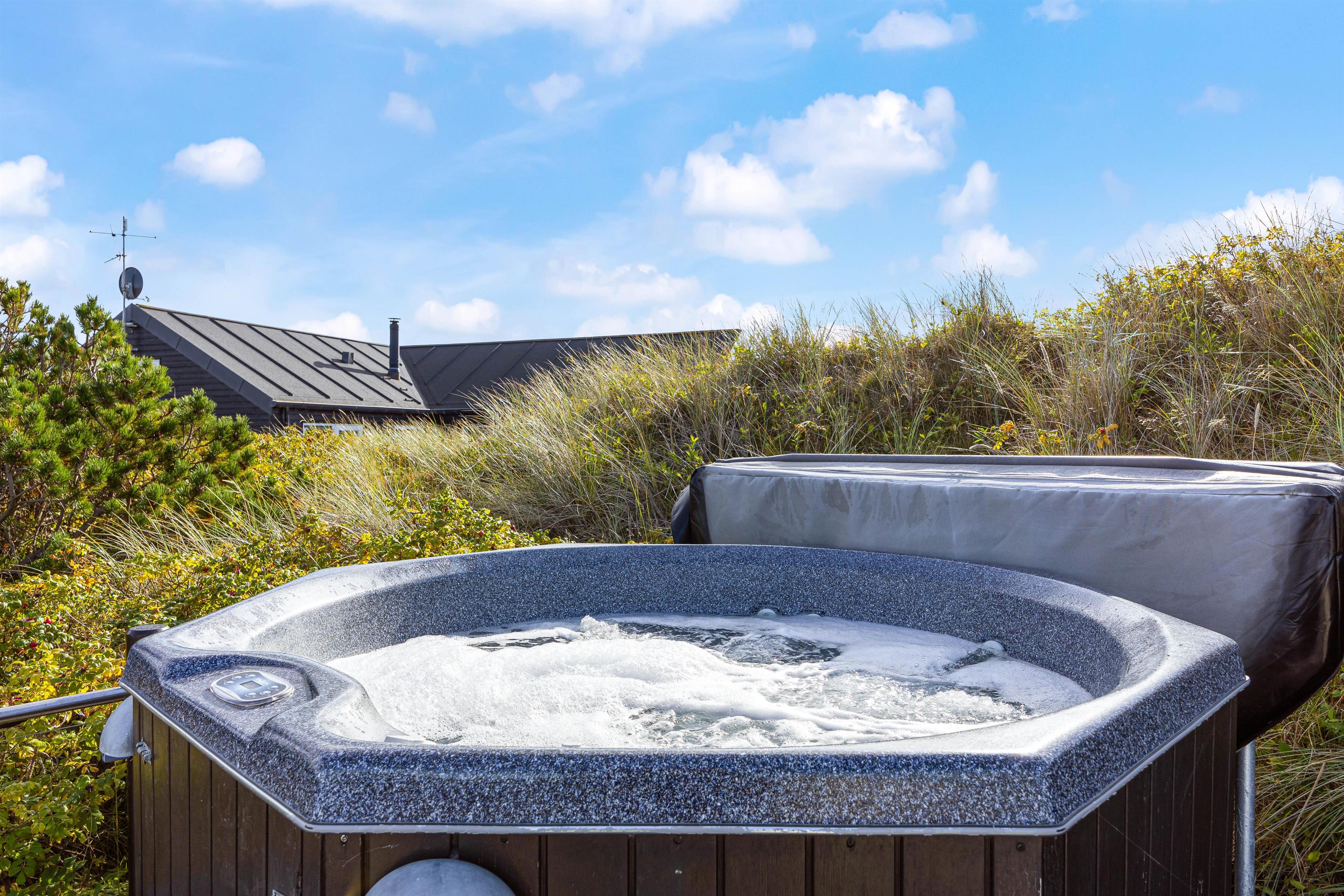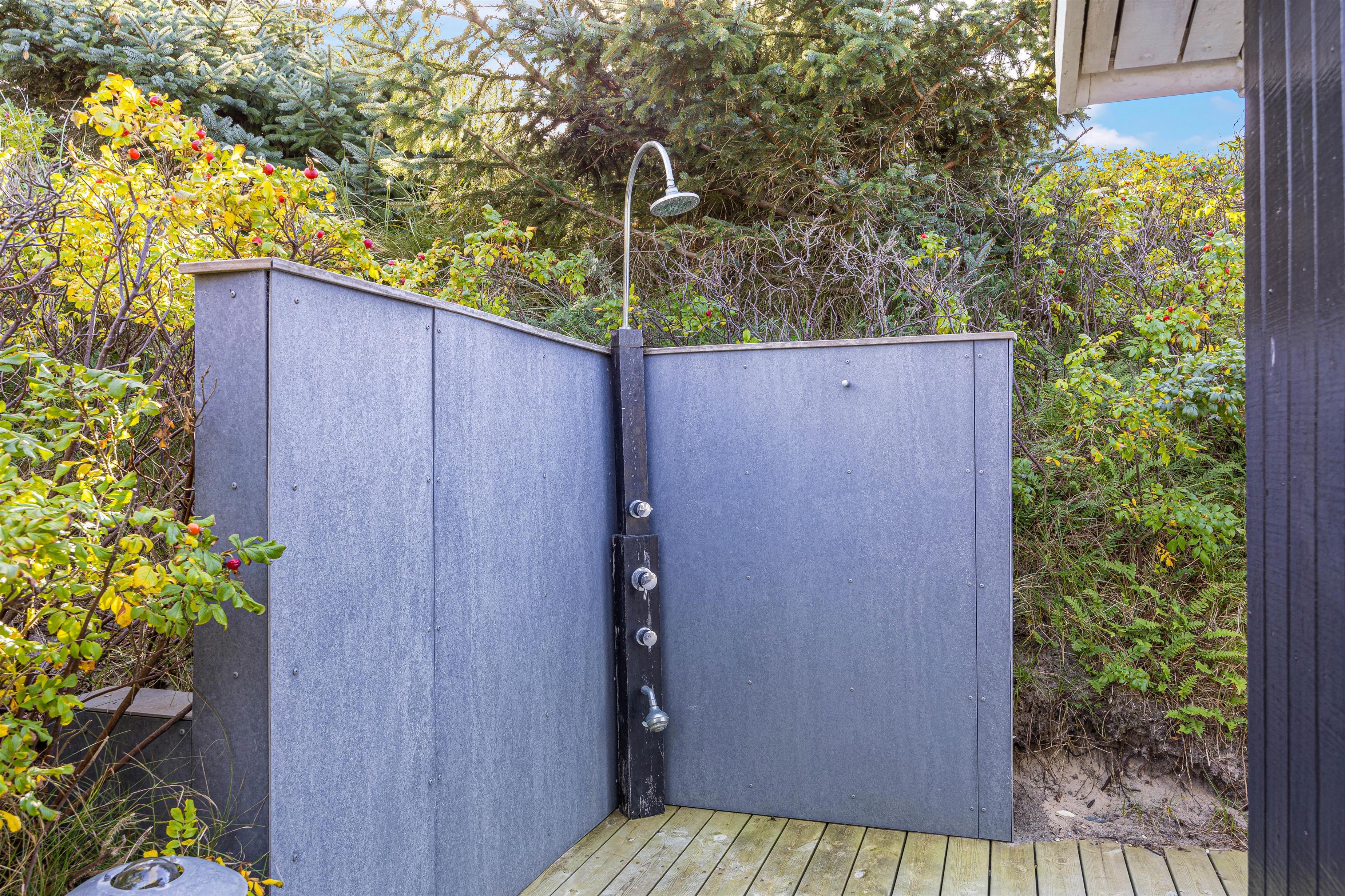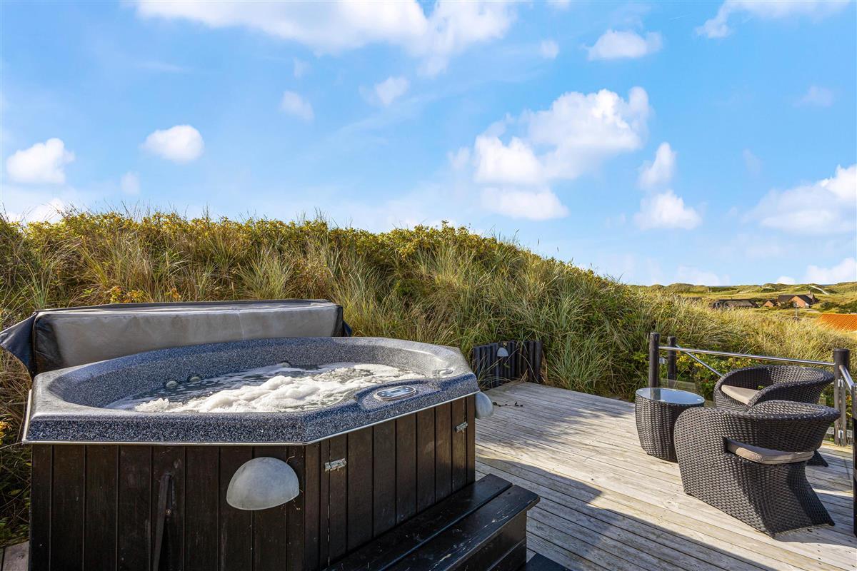 Enjoy nature right on your doorstep in the holiday home's varied outdoor space. Whether on the open, sheltered or covered terrace, you'll always find the perfect spot to unwind. The garden furniture invites long evenings outdoors, while the hot tub and outdoor sauna provide complete relaxation. After a hot sauna session, cool off in the outdoor shower, available from April through week 42..