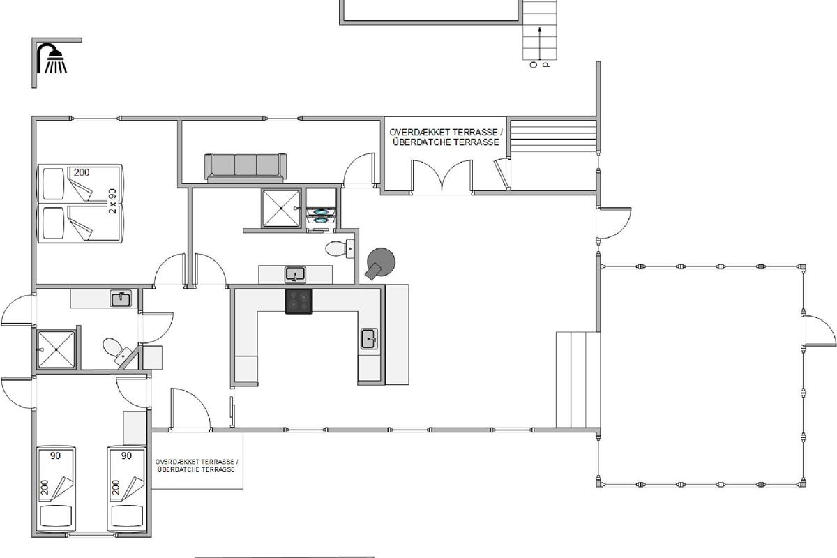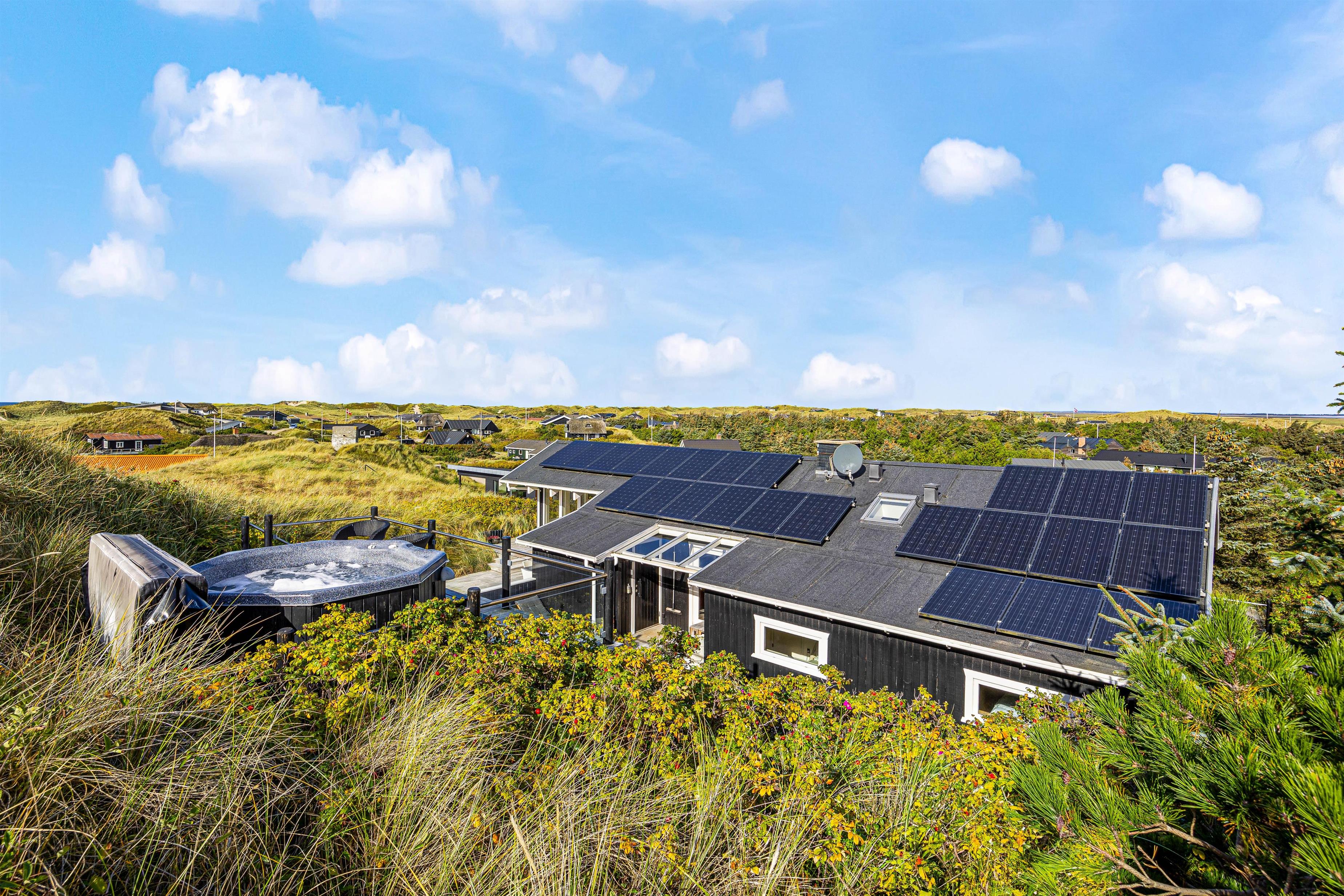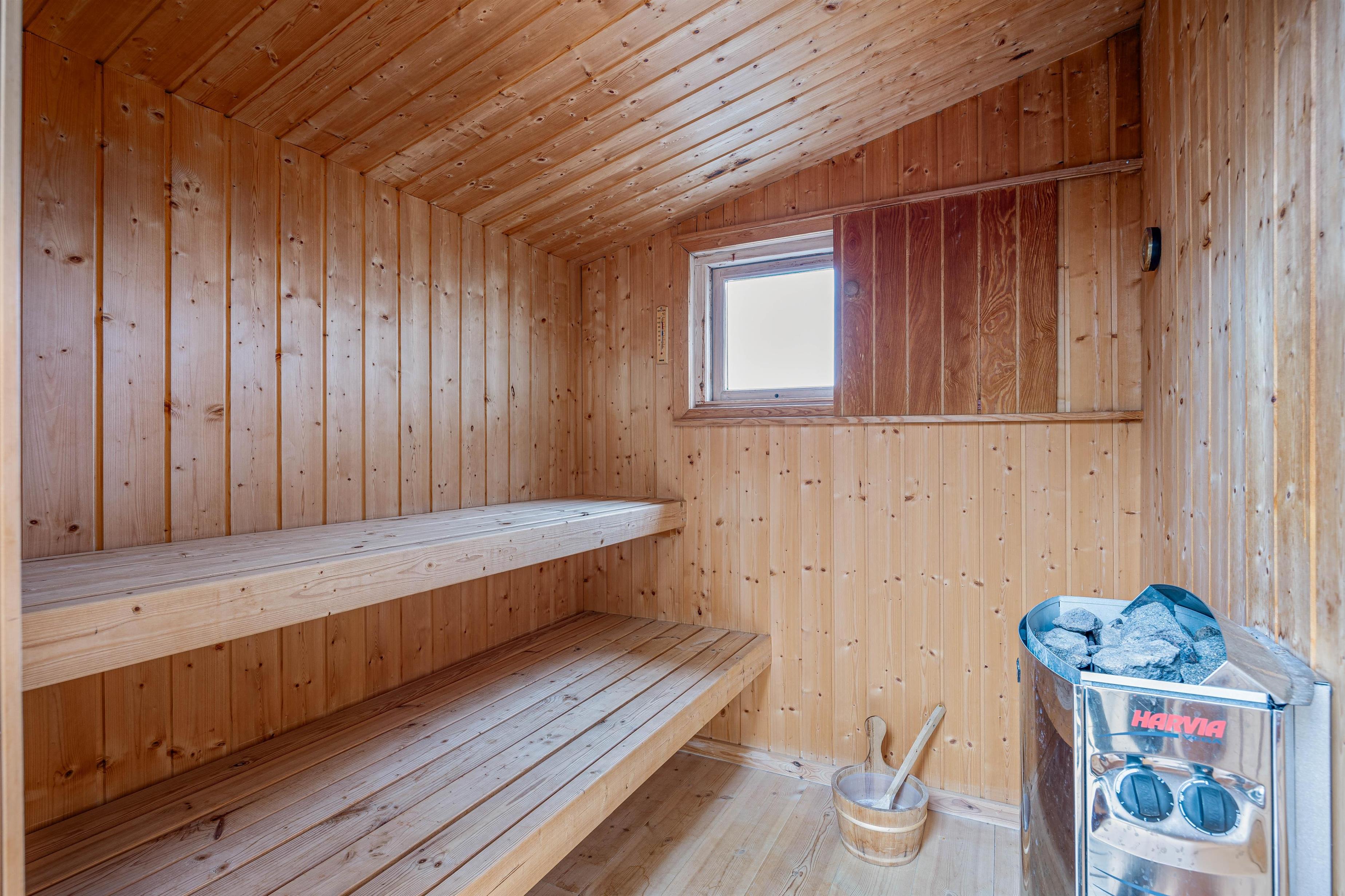 Enjoy nature right on your doorstep in the holiday home's varied outdoor space. Whether on the open, sheltered or covered terrace, you'll always find the perfect spot to unwind. The garden furniture invites long evenings outdoors, while the hot tub and outdoor sauna provide complete relaxation. After a hot sauna session, cool off in the outdoor shower, available from April through week 42..