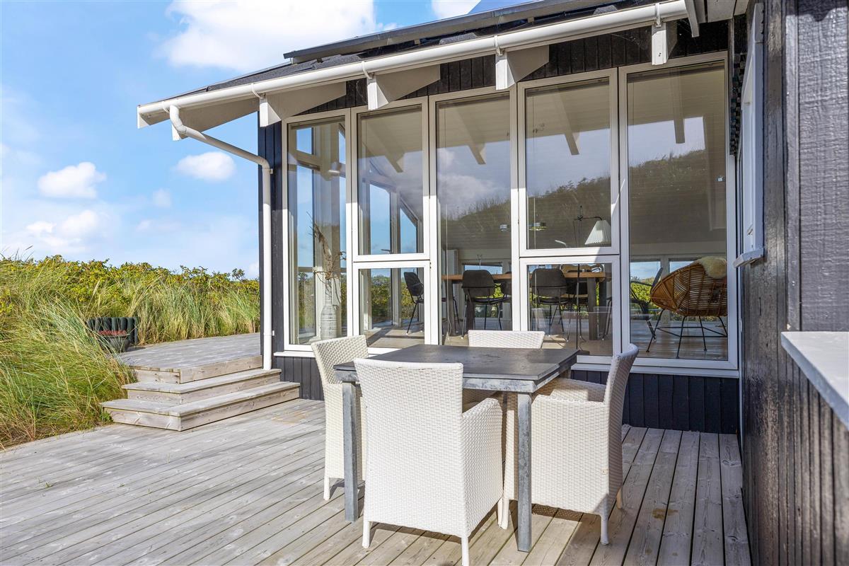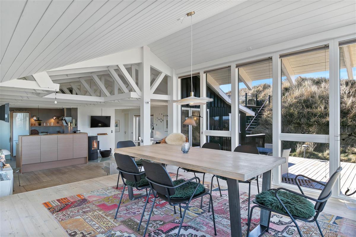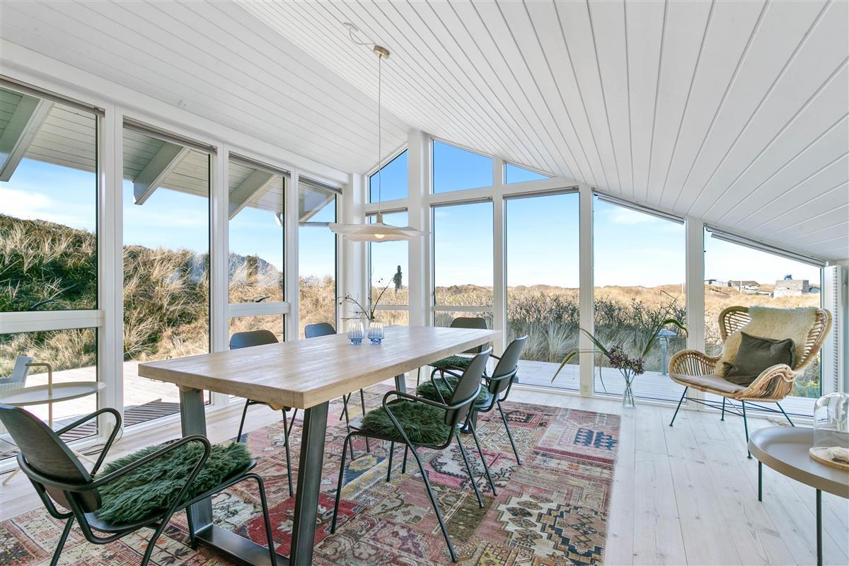When the weather turns cooler, you can sit comfortably at the dining table and enjoy the sunset. Here you'll find a unique combination of beautiful furnishings, cosy atmosphere, and stunning surroundings. Take the opportunity to spend unforgettable days at Klitdalen 33, leaving everyday life far behind. A stay full of peace and natural beauty awaits you.