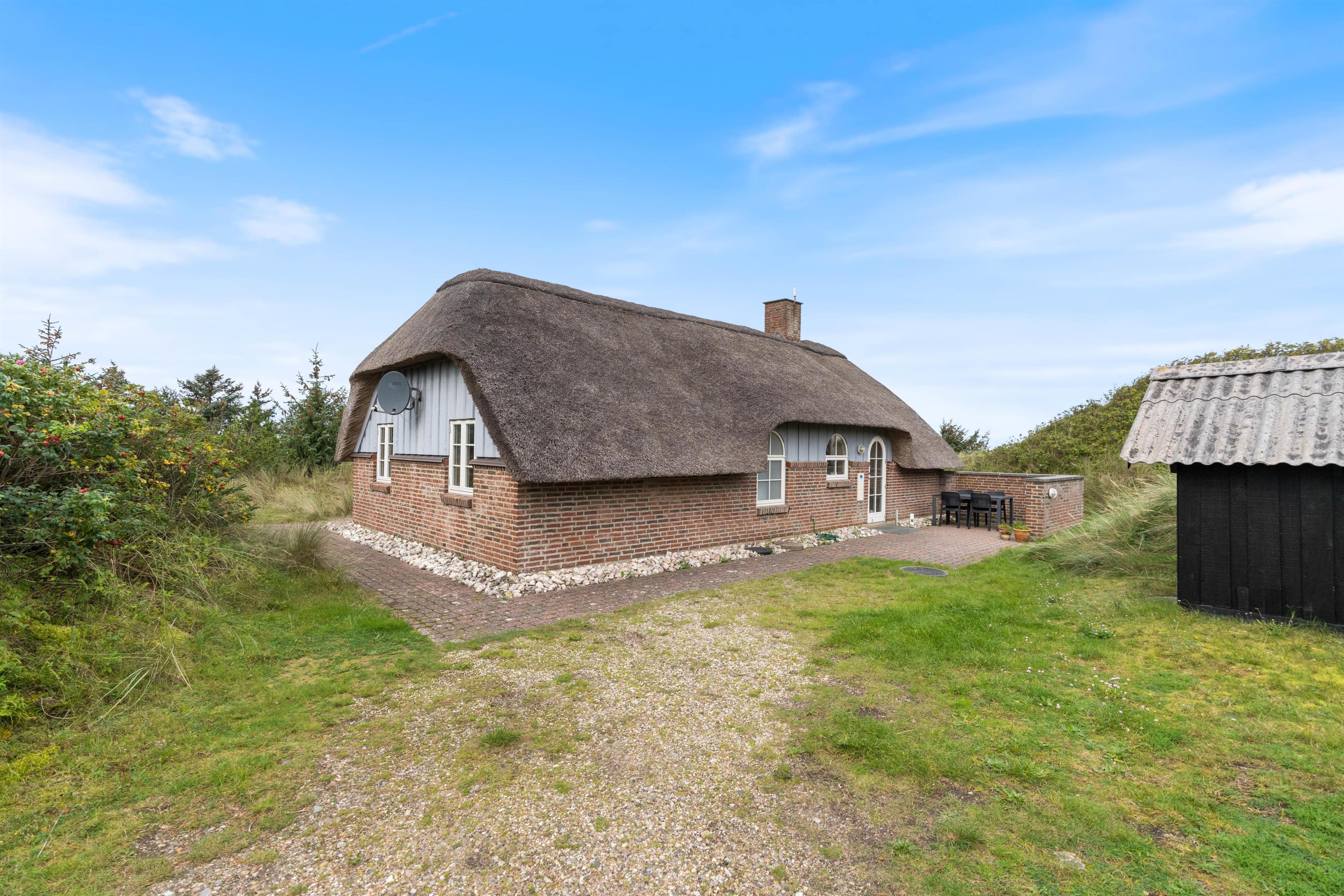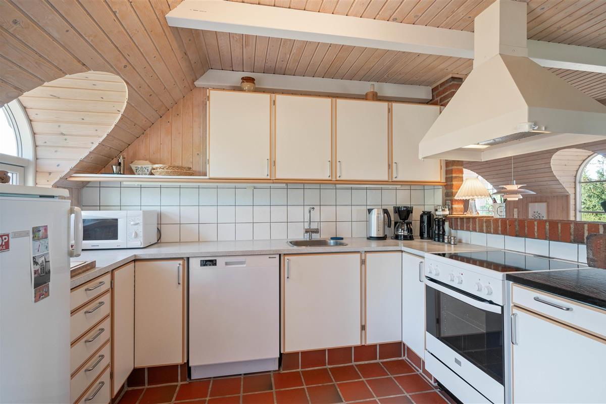This beautiful thatched holiday home in Houvig is bright and welcoming. You'll feel at home immediately in these new surroundings. The combination of the thatched roof, exposed brick walls, visible ceiling beams and the wood-burning stove all contribute to the cosy holiday atmosphere. It's the perfect spot for a family holiday.