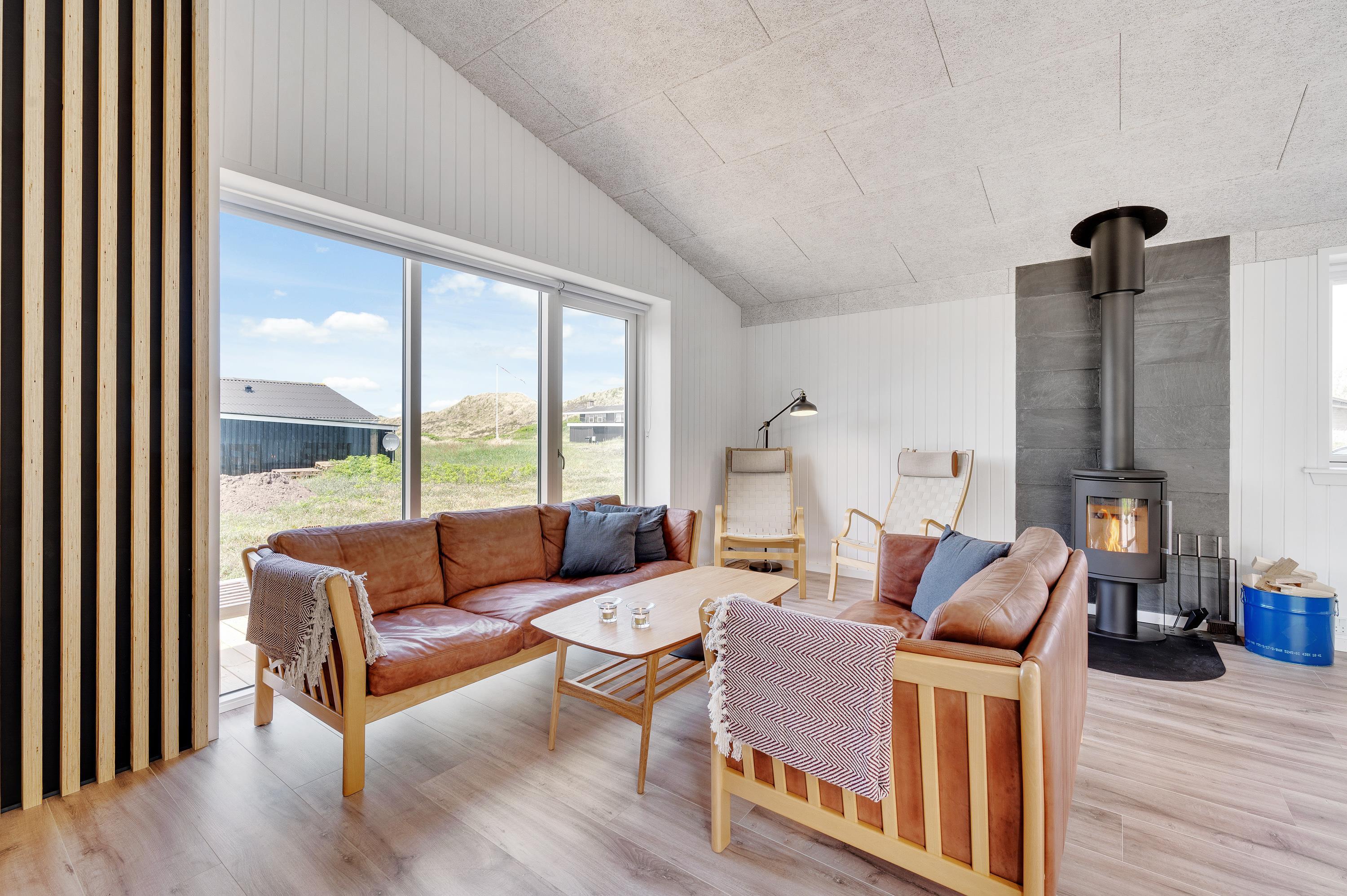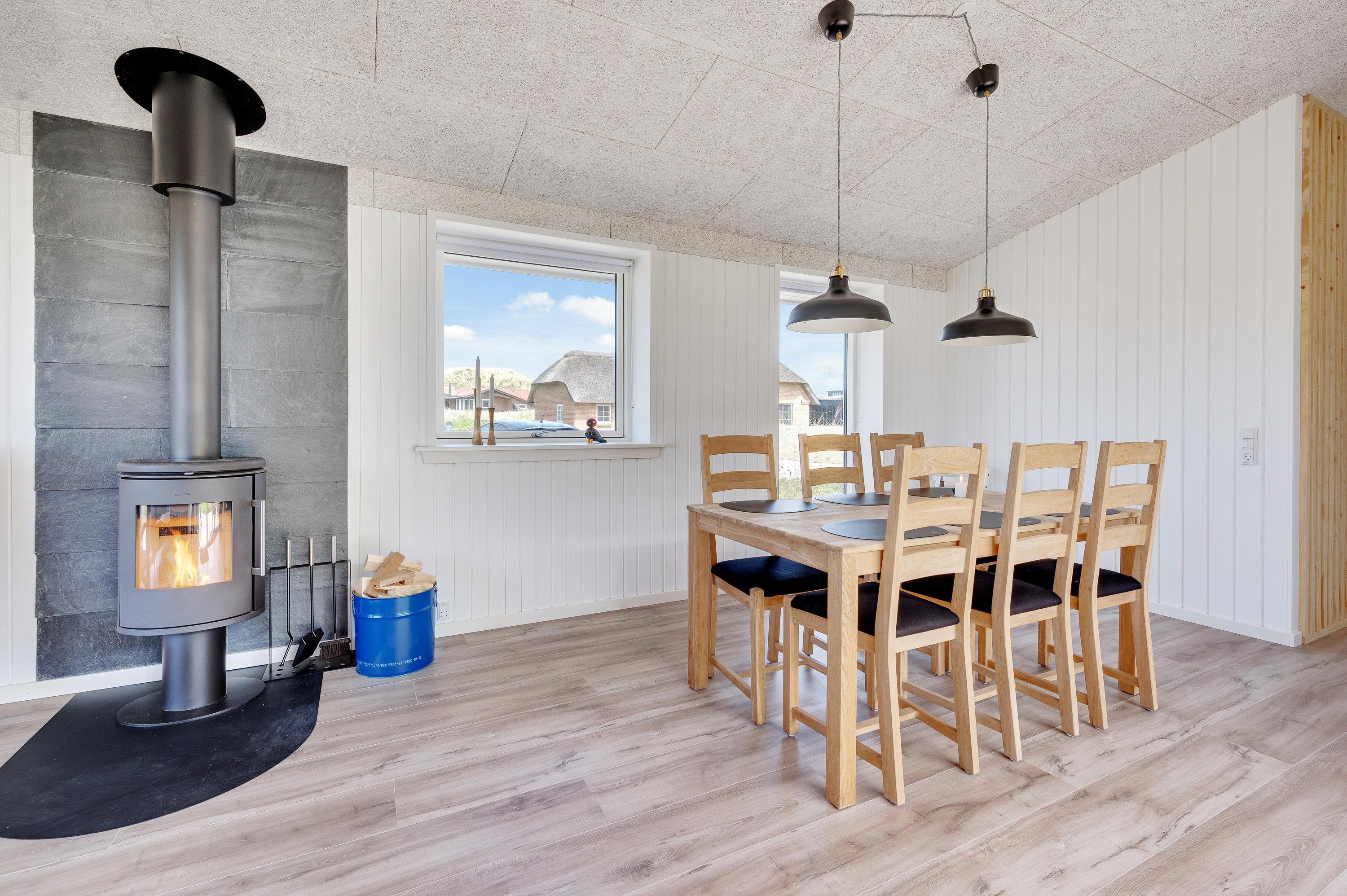 The heart of the holiday home is the bright living area, where you can relax, plan your holiday activities, or enjoy games evenings. The wood-burning stove creates a cosy atmosphere and that quintessential holiday feeling. The holiday home is equipped with all modern conveniences, including a dishwasher to take care of the washing up, eliminating any evening disputes over washing-up duties.