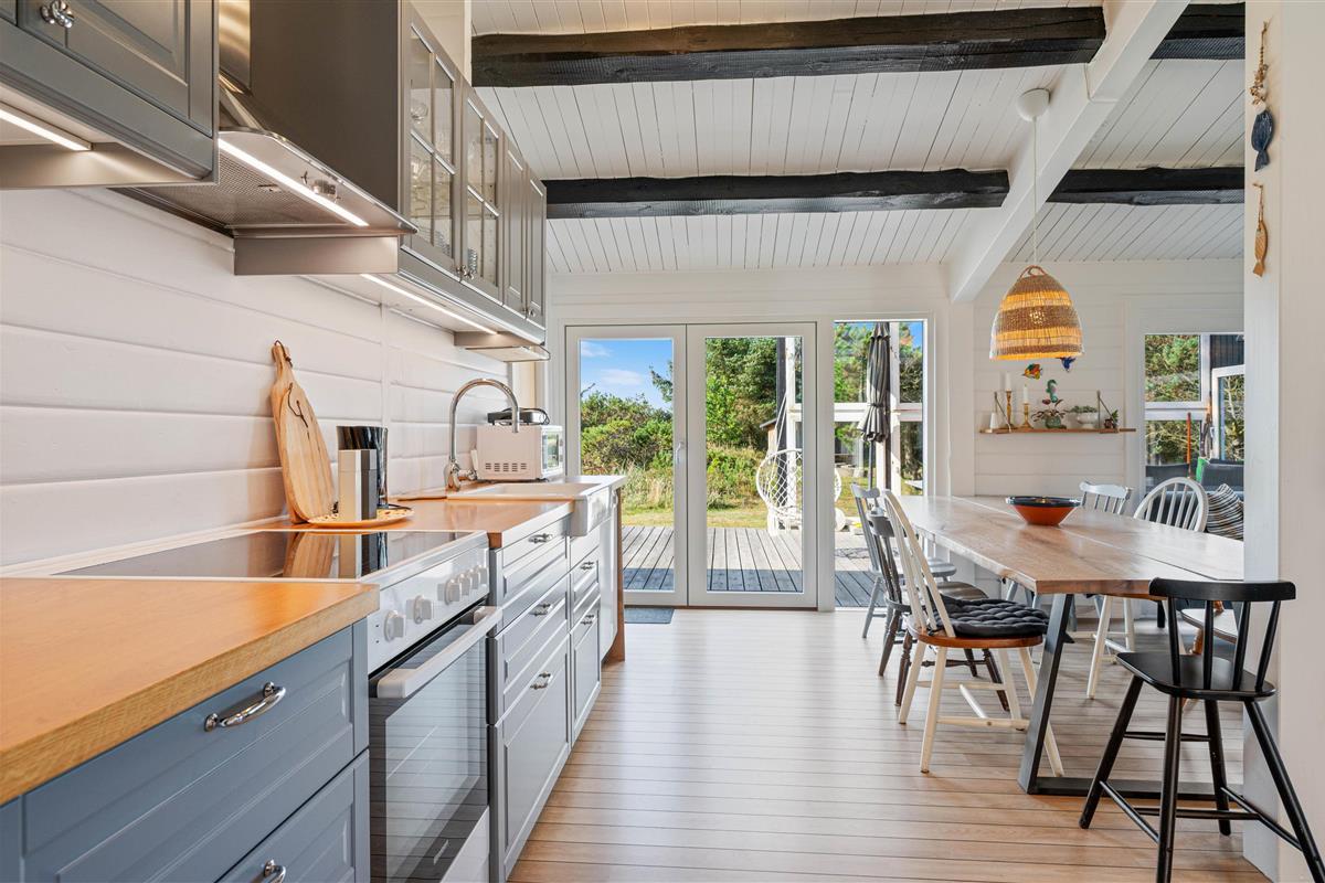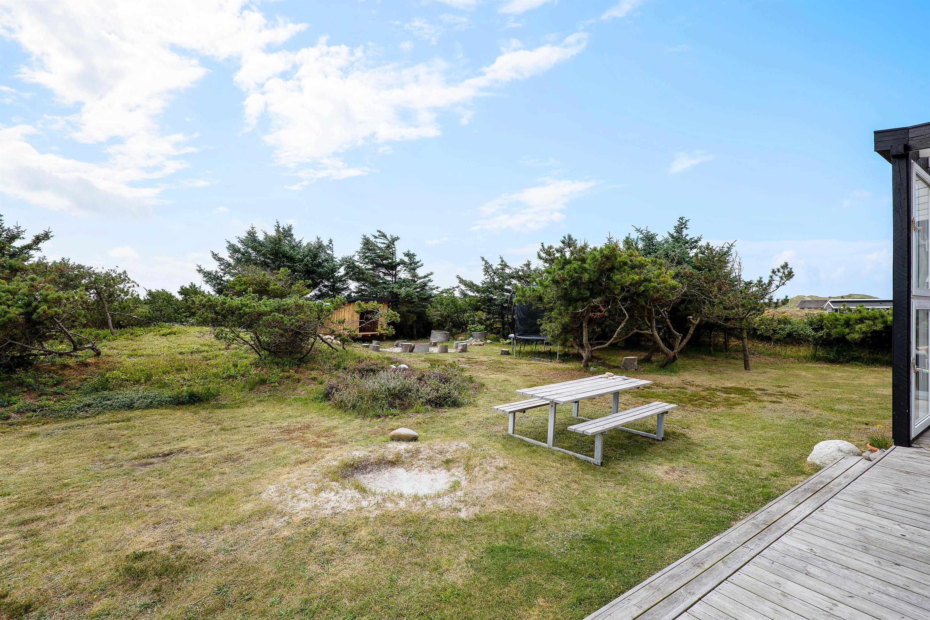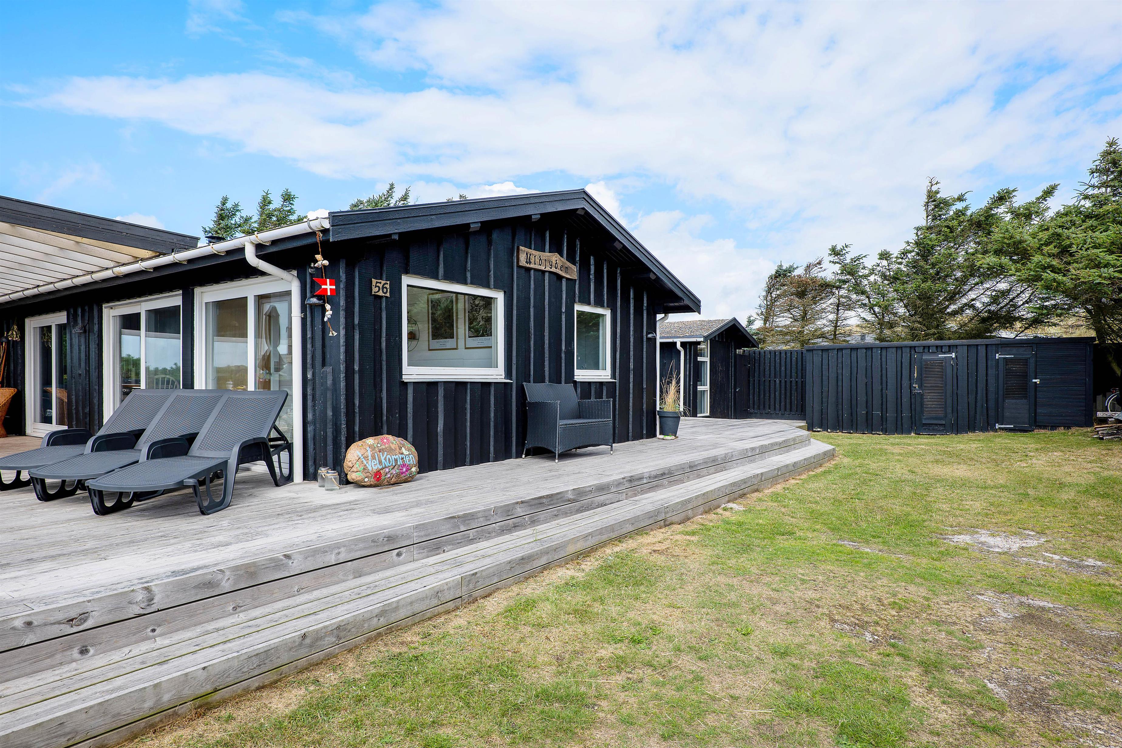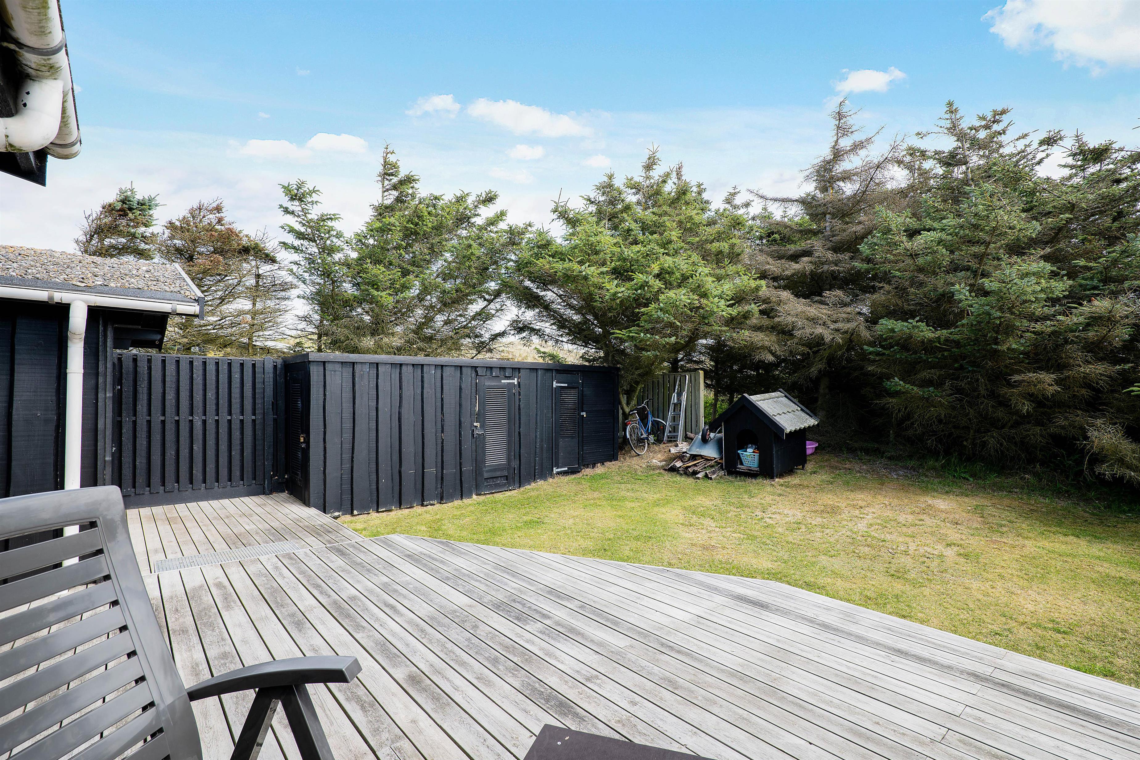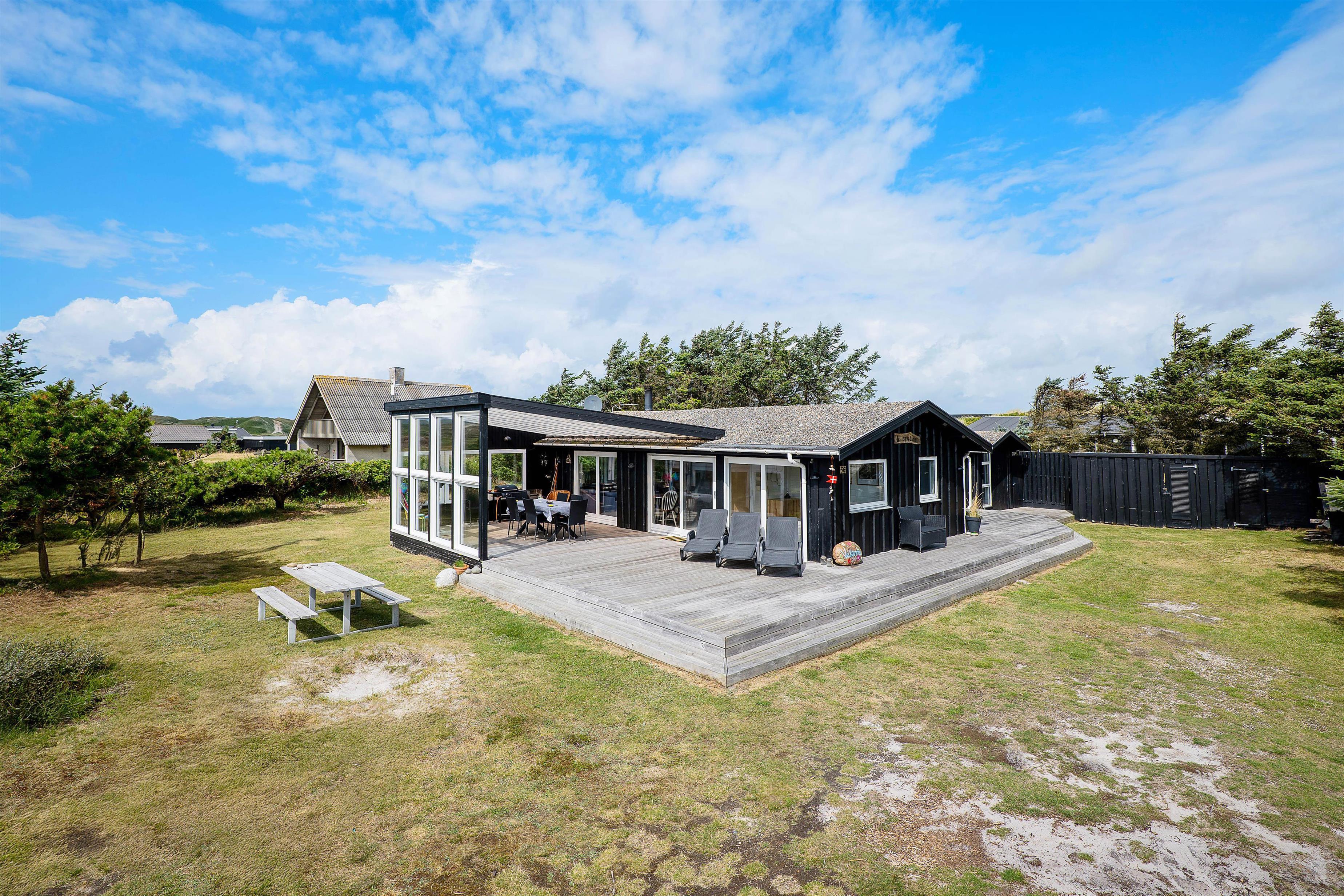 You can also enjoy your holiday on the large terrace that wraps around the entire house. Depending on the Danish weather, you can settle in various corners and angles of the terrace. On rainy days, you can enjoy listening to the rain drumming on the roof of the covered section of the terrace, located right outside the living room.