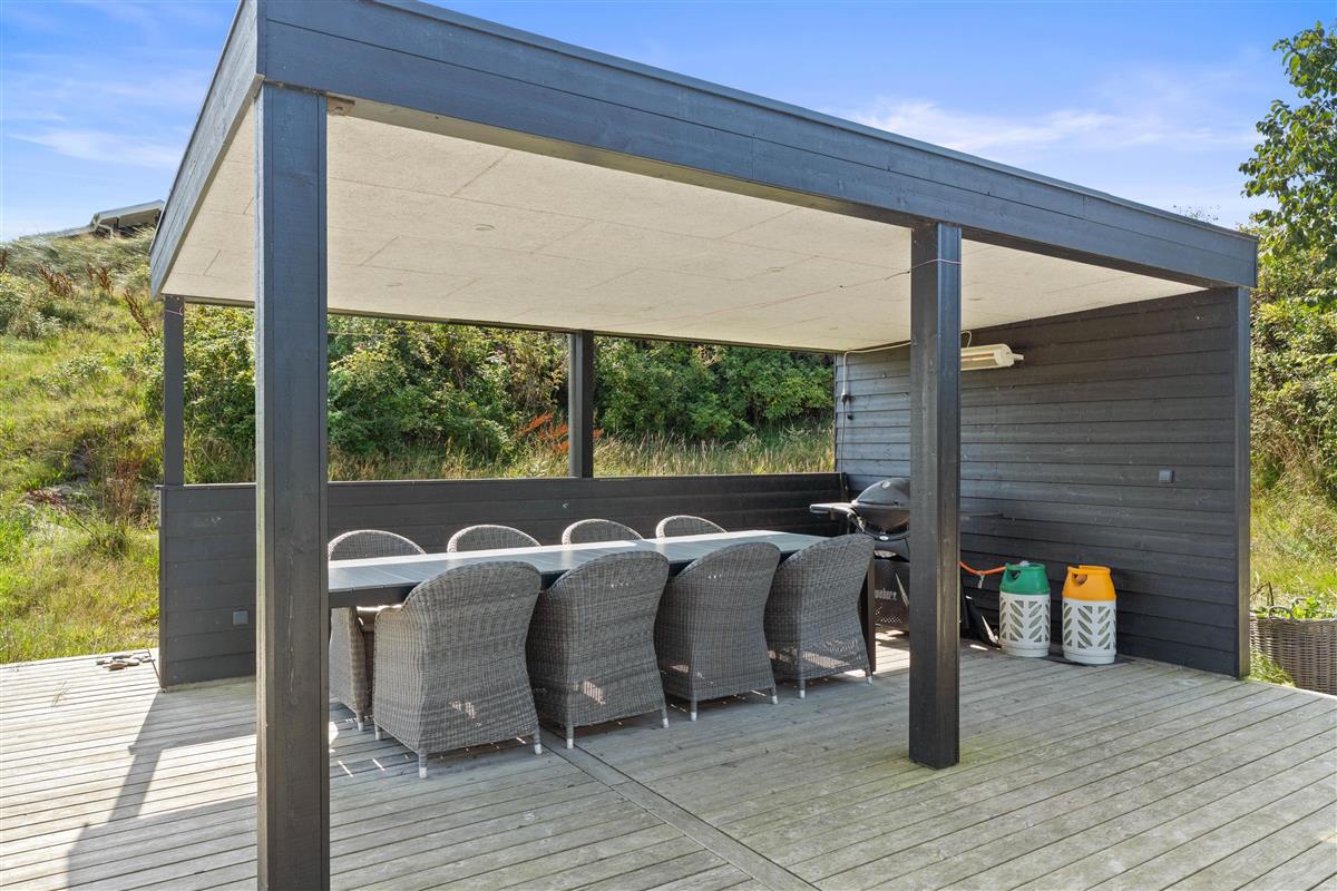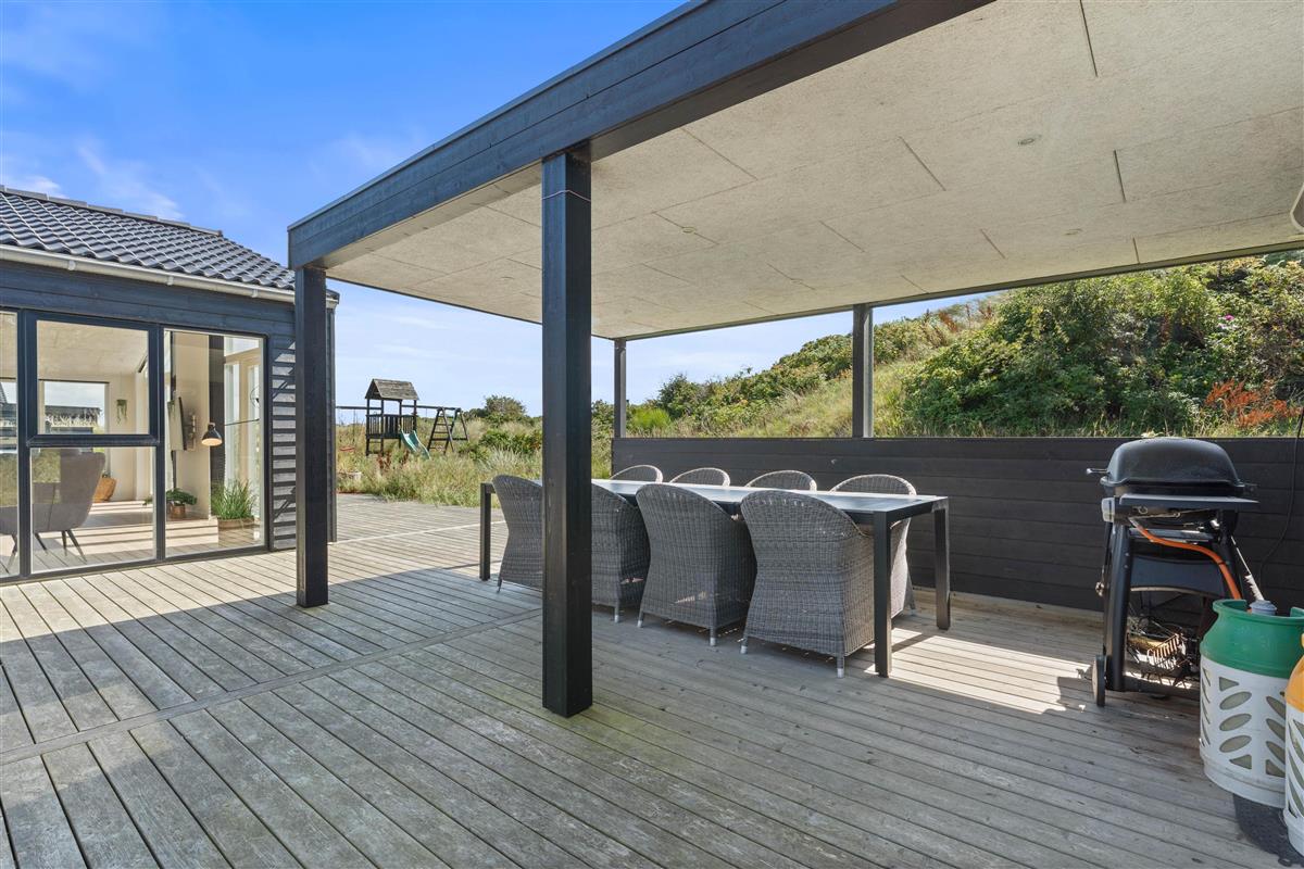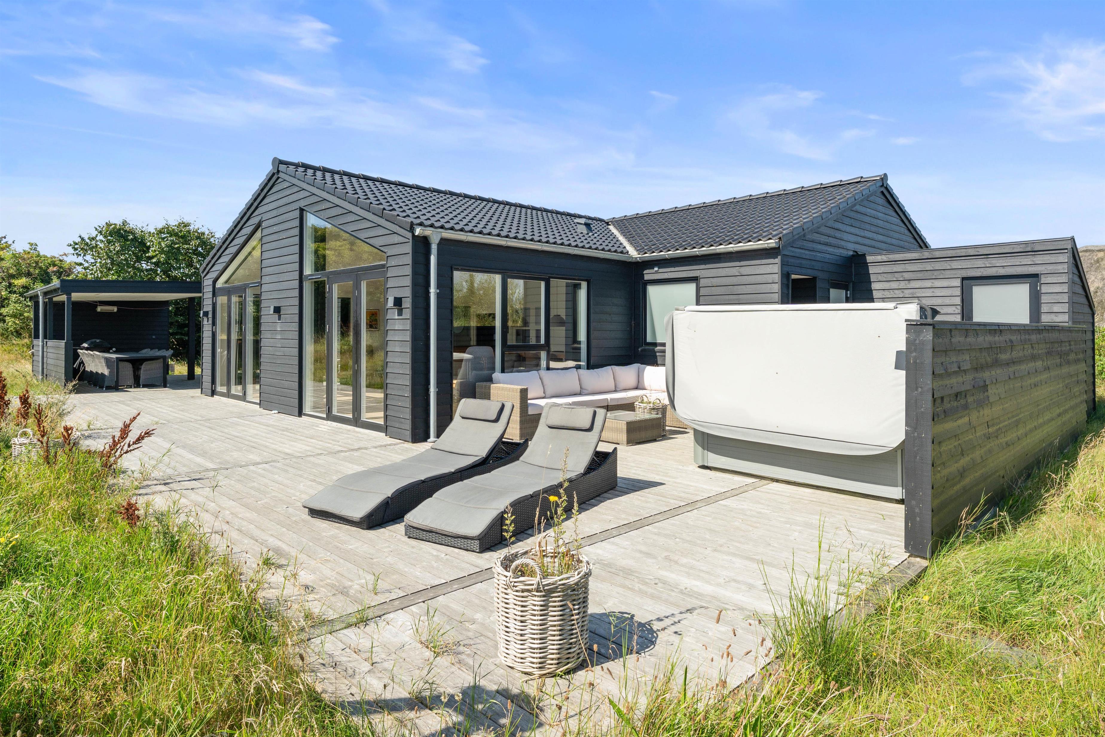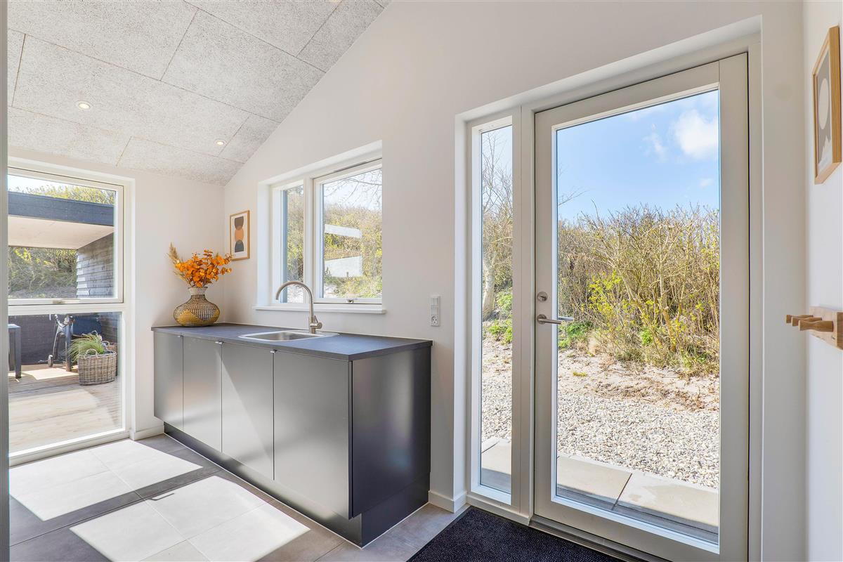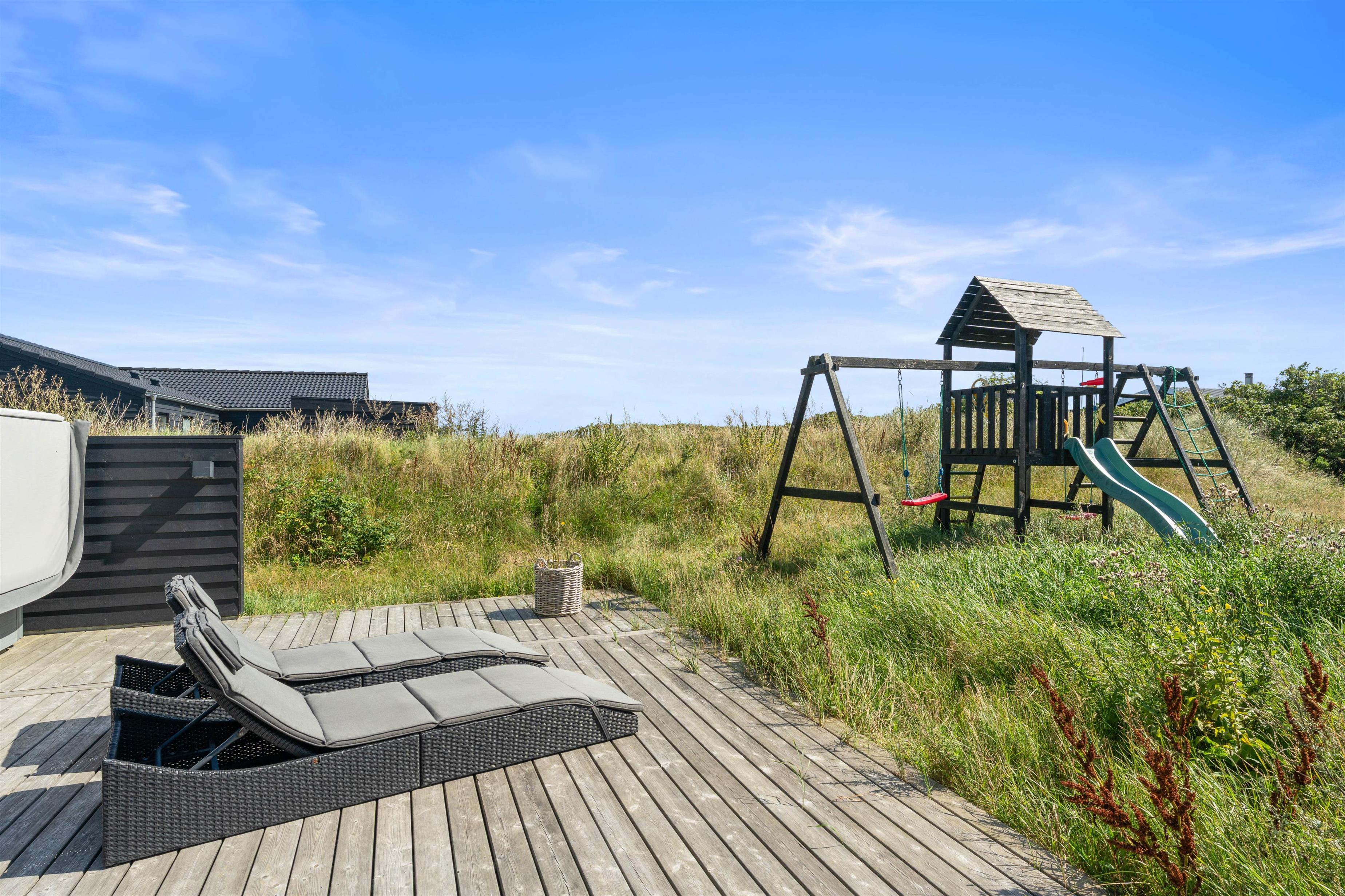 When staying at Klitdalen 15B, a rejuvenating holiday is guaranteed, ensuring you'll return home refreshed. The terrace features a wonderful outdoor hot tub where you can lean back and relax in the bubbling water under the open sky. The terrace also includes an outdoor shower where you can rinse off before using the hot tub or wash sandy feet after a beach walk. This facility is available from April to November.