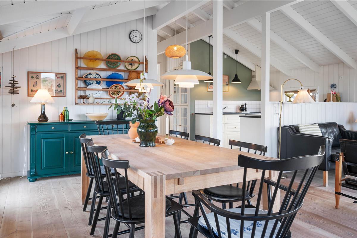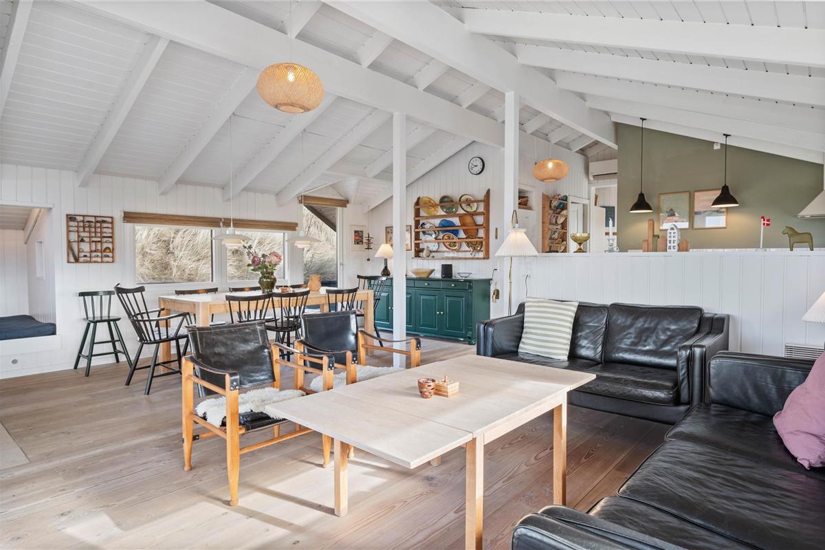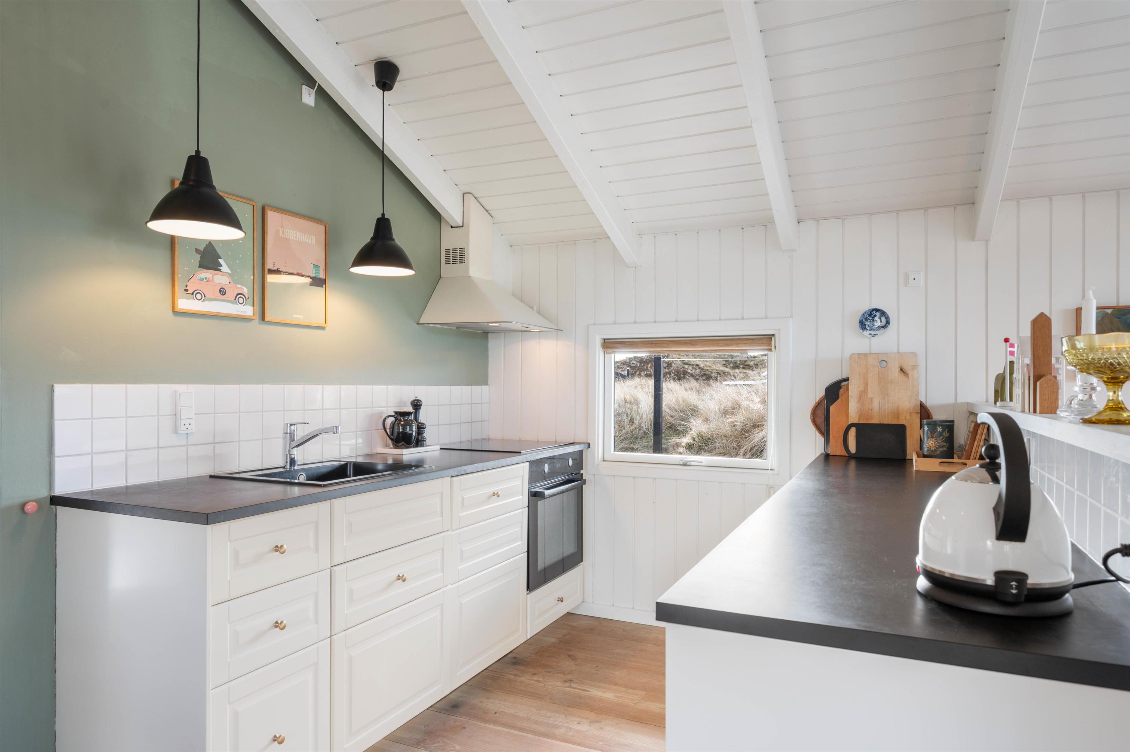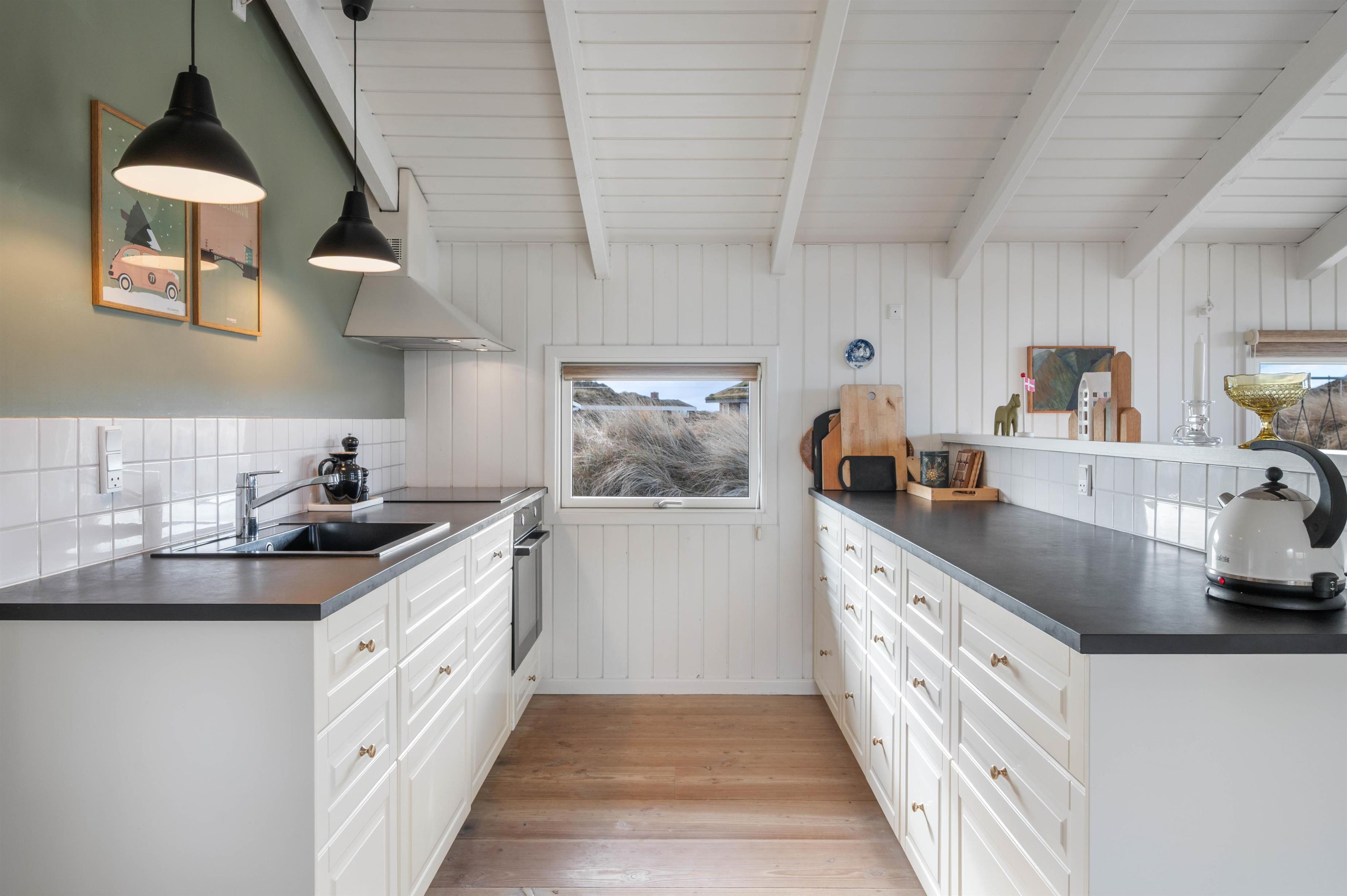This holiday home has everything you need for a relaxing holiday with family or friends. The kitchen features an open-plan design connecting to the living and dining area, allowing you to remain part of family life while cooking.