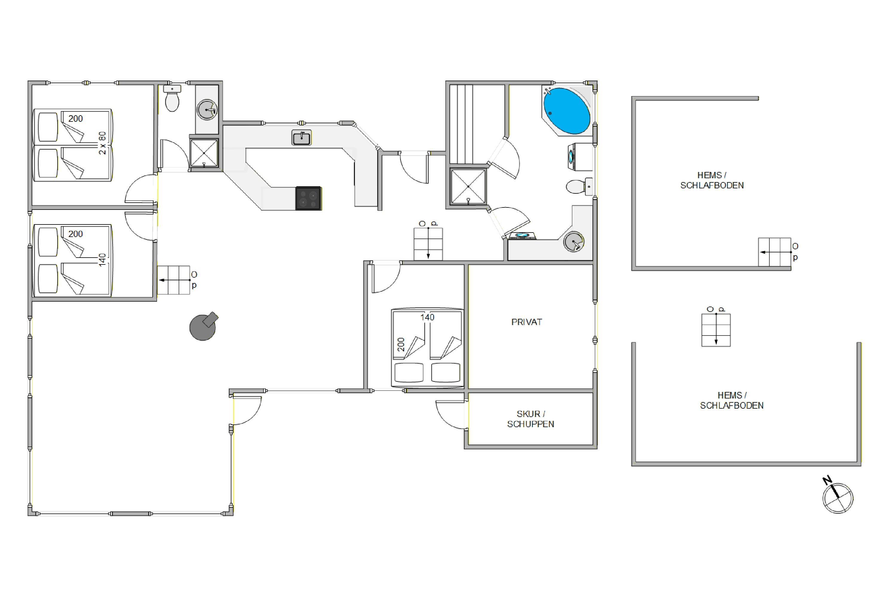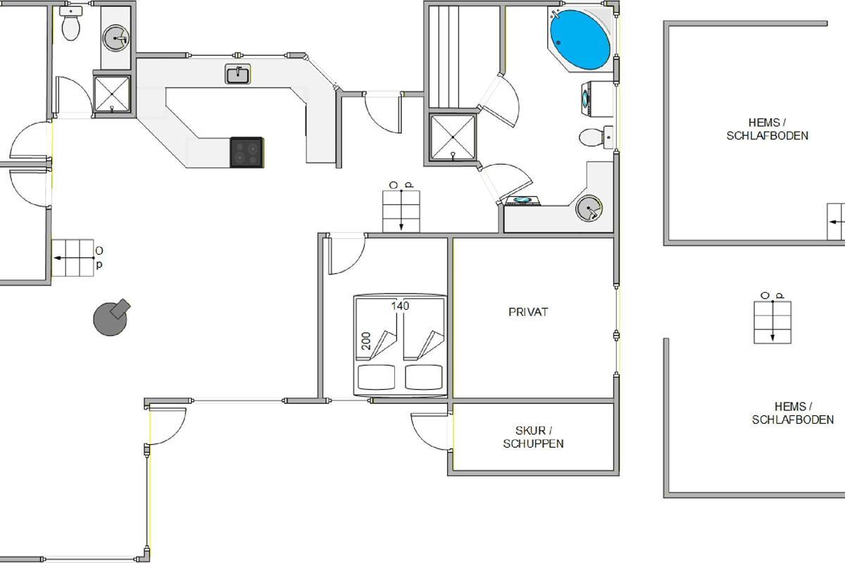 Zwei Badezimmer im Ferienhaus sind sehr praktisch, damit der Morgen ohne Warteschlangen beginnen kann. Beide Badezimmer sind mit einer Fußbodenheizung ausgestattet, ideal für kühle Morgenstunden. Für besondere Entspannung bietet eines der Badezimmer eine Sauna und einen Whirlpool, der es euch erlaubt, den Alltag vollkommen hinter sich zu lassen. Eine Waschmaschine und ein Trockner stehen bereit, sodass ihr nur eure Lieblingskleidung einpacken braucht.