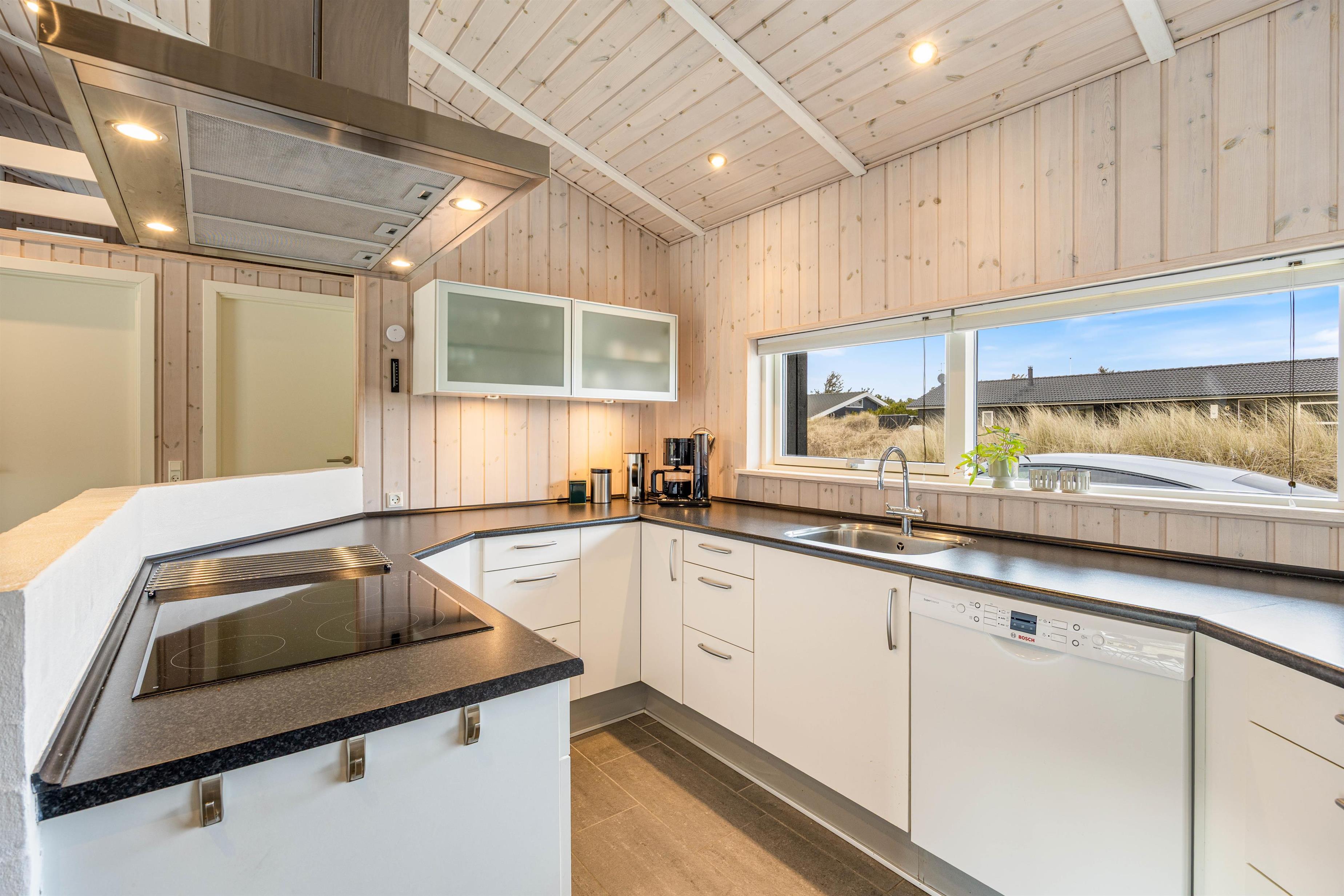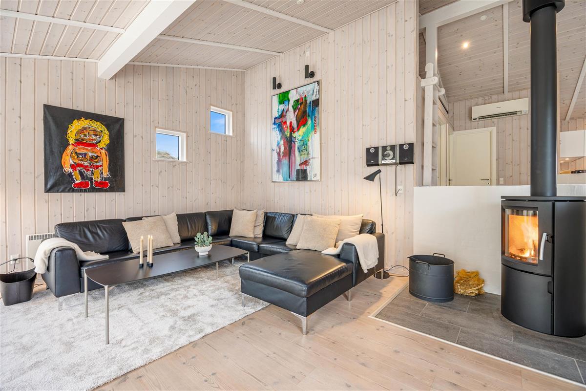 Der großzügige Wohnbereich dieses Hauses lädt dazu ein, gemütliche Abende mit der Familie oder Freunden zu verbringen. Der offene Grundriss verbindet nahtlos den Wohn- und Essbereich, sodass ihr in der gut ausgestatteten Küche gemeinsam kochen könnt, um danach der Spülmaschine den lästigen Abwasch zu überlassen. Für mehr Ferienhausatmosphäre sorgt an kühleren Abenden das knisternde Feuer im Holzofen. Die Wärmepumpe schont euren Geldbeutel und sorgt für eine stets angenehme und konstante Raumtemperatur im Wohnbereich.