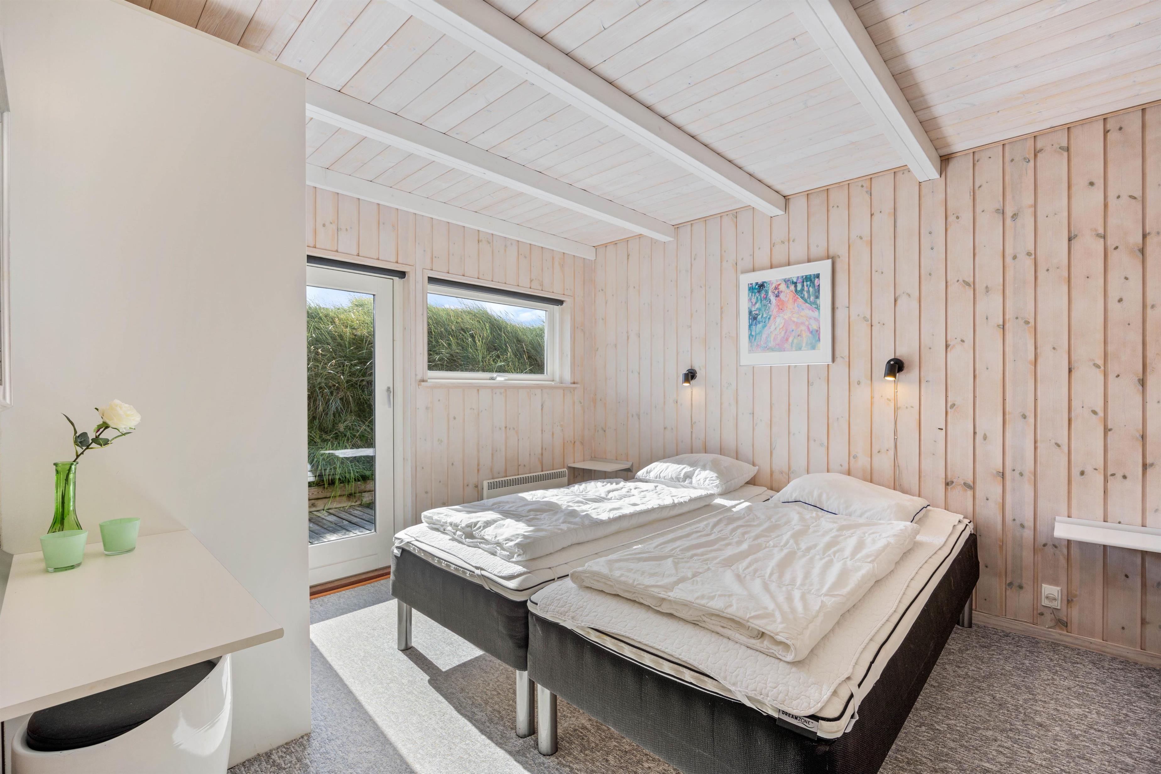 The holiday home enjoys a prime location at Mågedalen 42 in Houvig, just 350 metres from the beach where you can explore the fascinating wartime bunkers.
