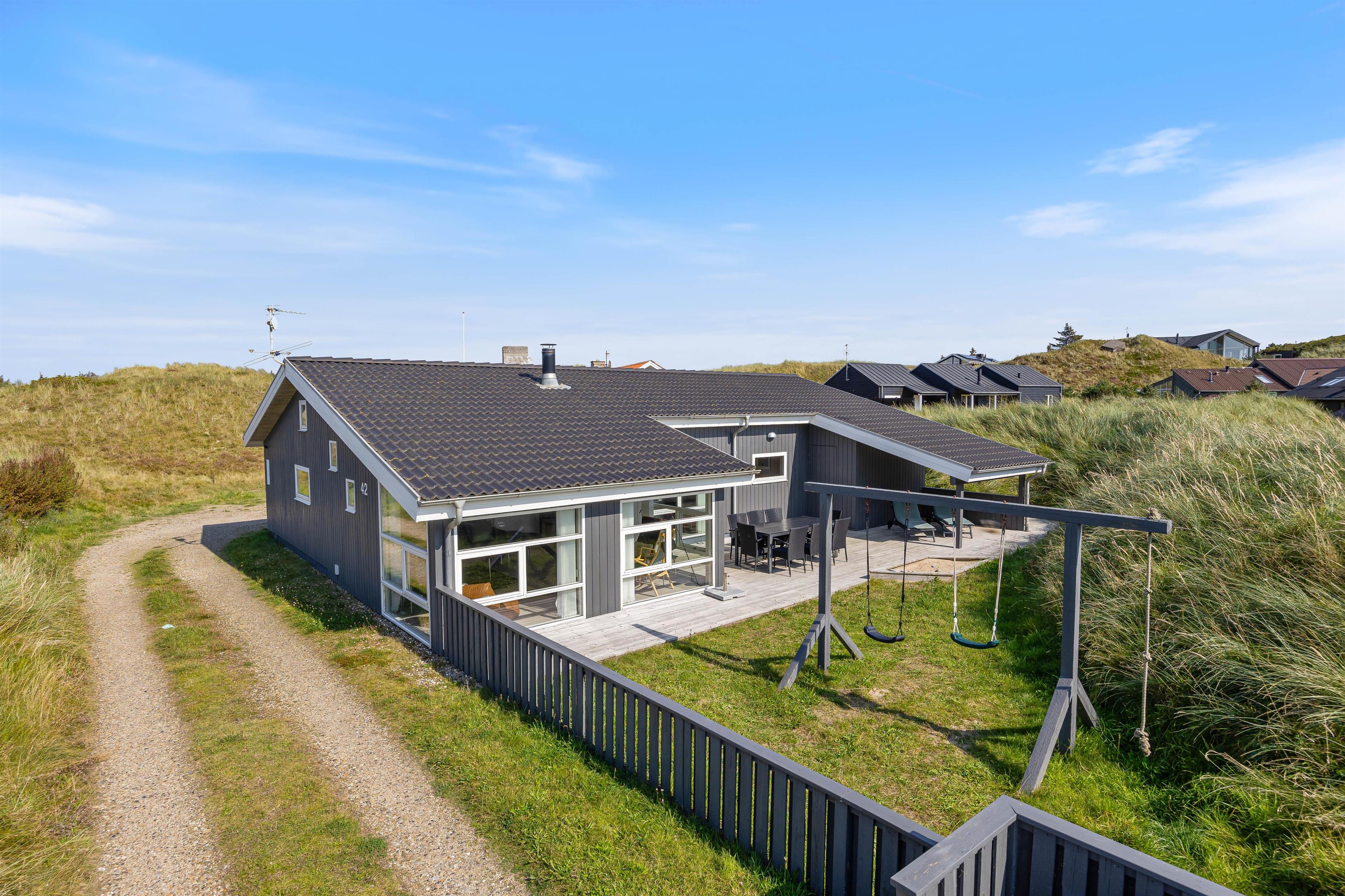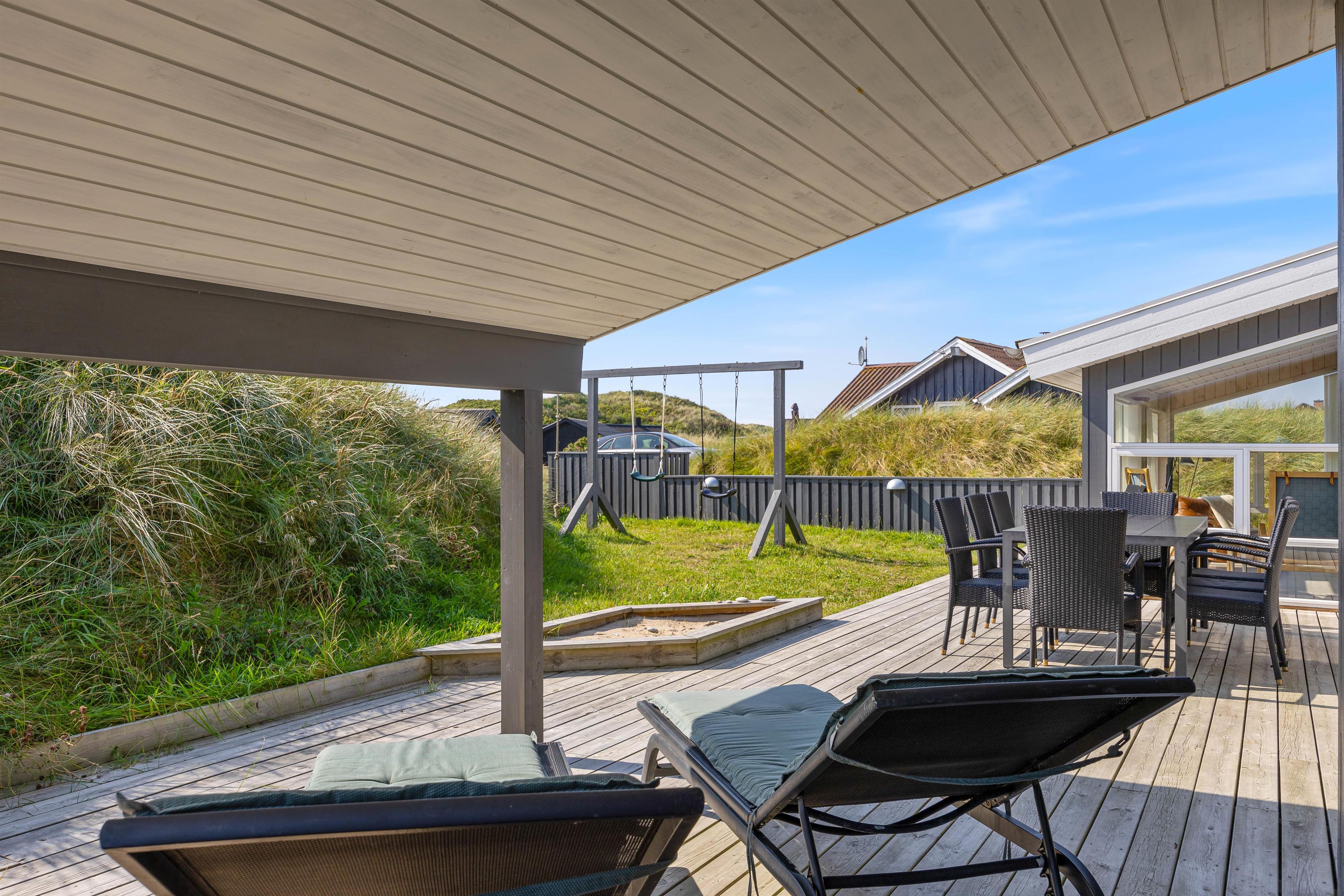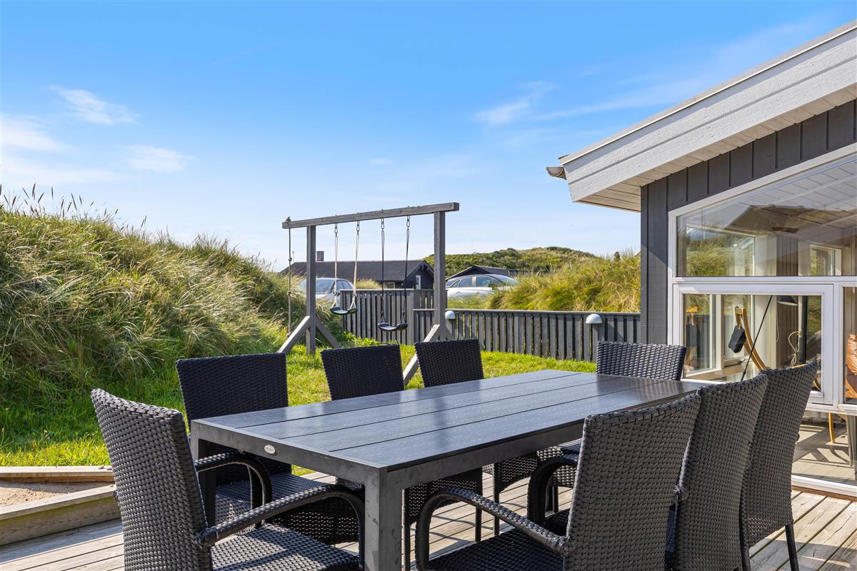 The holiday home is surrounded by a spacious east-facing terrace. Enjoy the morning sun over breakfast on the terrace while planning your day.