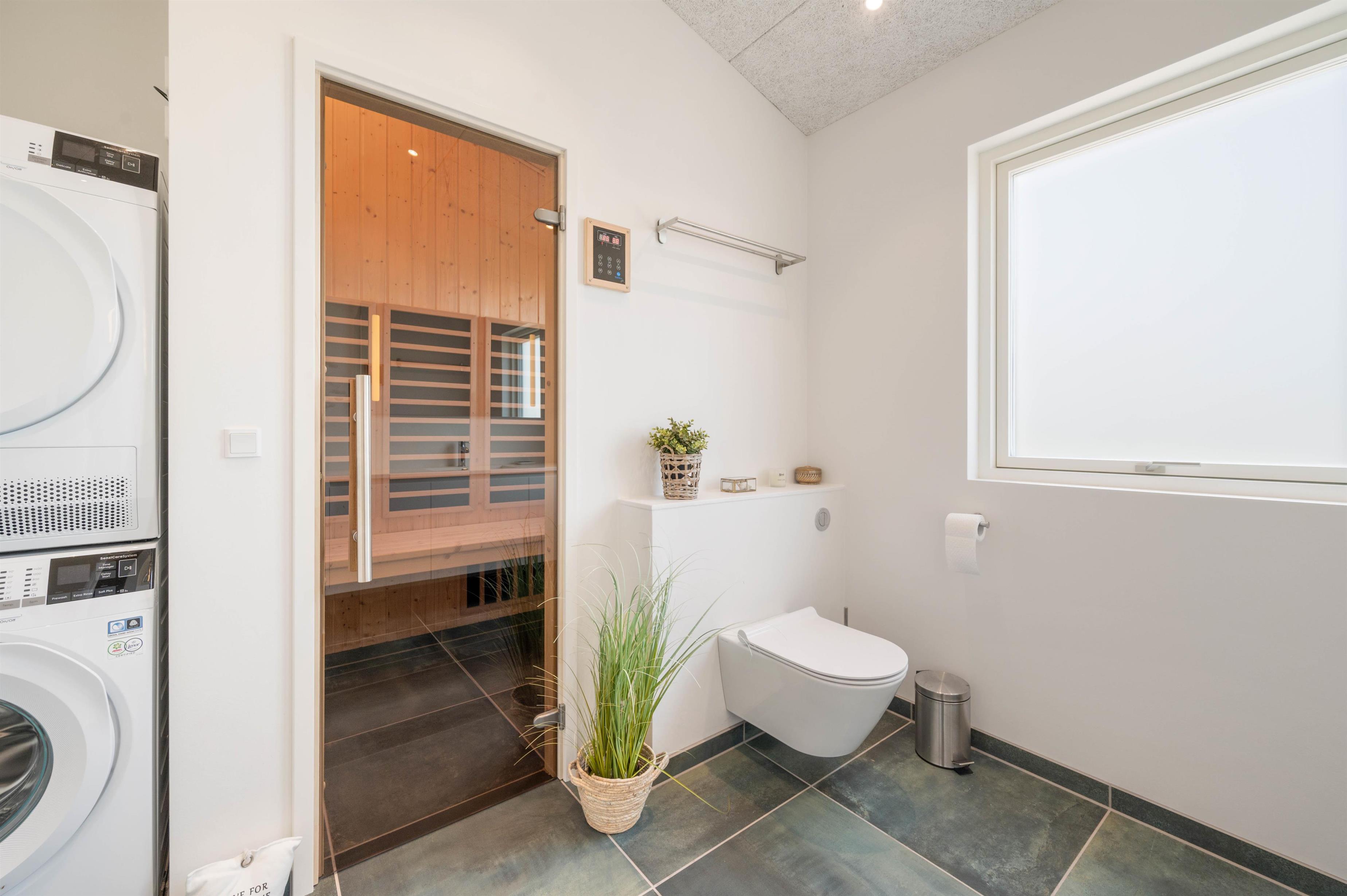 Spread across three bedrooms, each with a double bed, the holiday home comfortably accommodates up to 6 people, while the two bathrooms ensure no morning queues. One bathroom features an infrared sauna where you can warm up after a long day in the fresh air.