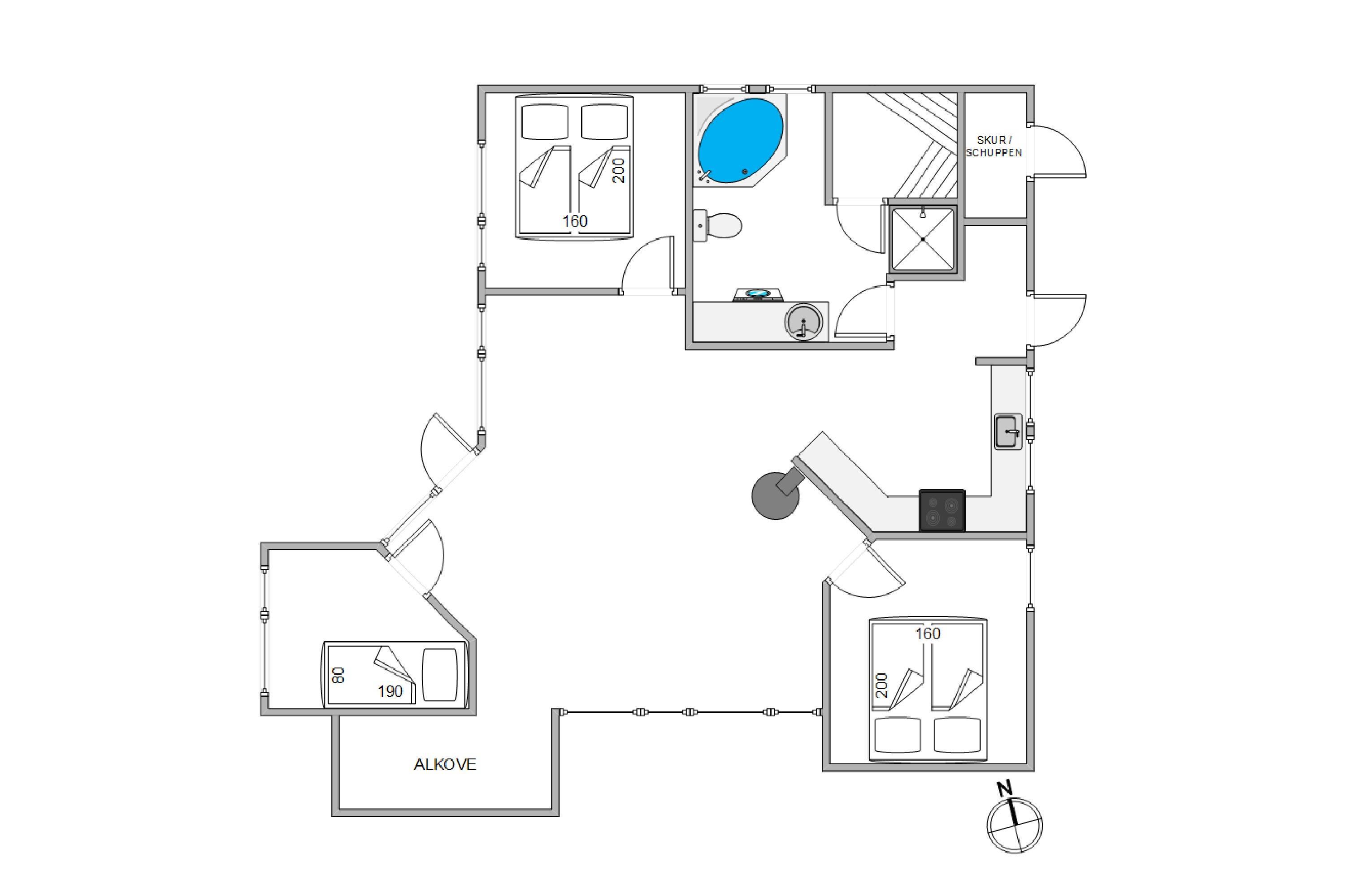 In the Houvig holiday region, peace and birdsong set the pace of holiday life. It's the perfect place to recharge, offering both cosiness and relaxation. The North Sea is just a short distance from the house, promising plenty of beach walks during your stay at Klægdalen 20. The impressive towns of Søndervig and Hvide Sande, along with the historic trading town of Ringkøbing, are just a short drive away. Here, numerous specialist shops invite you to browse and shop.
